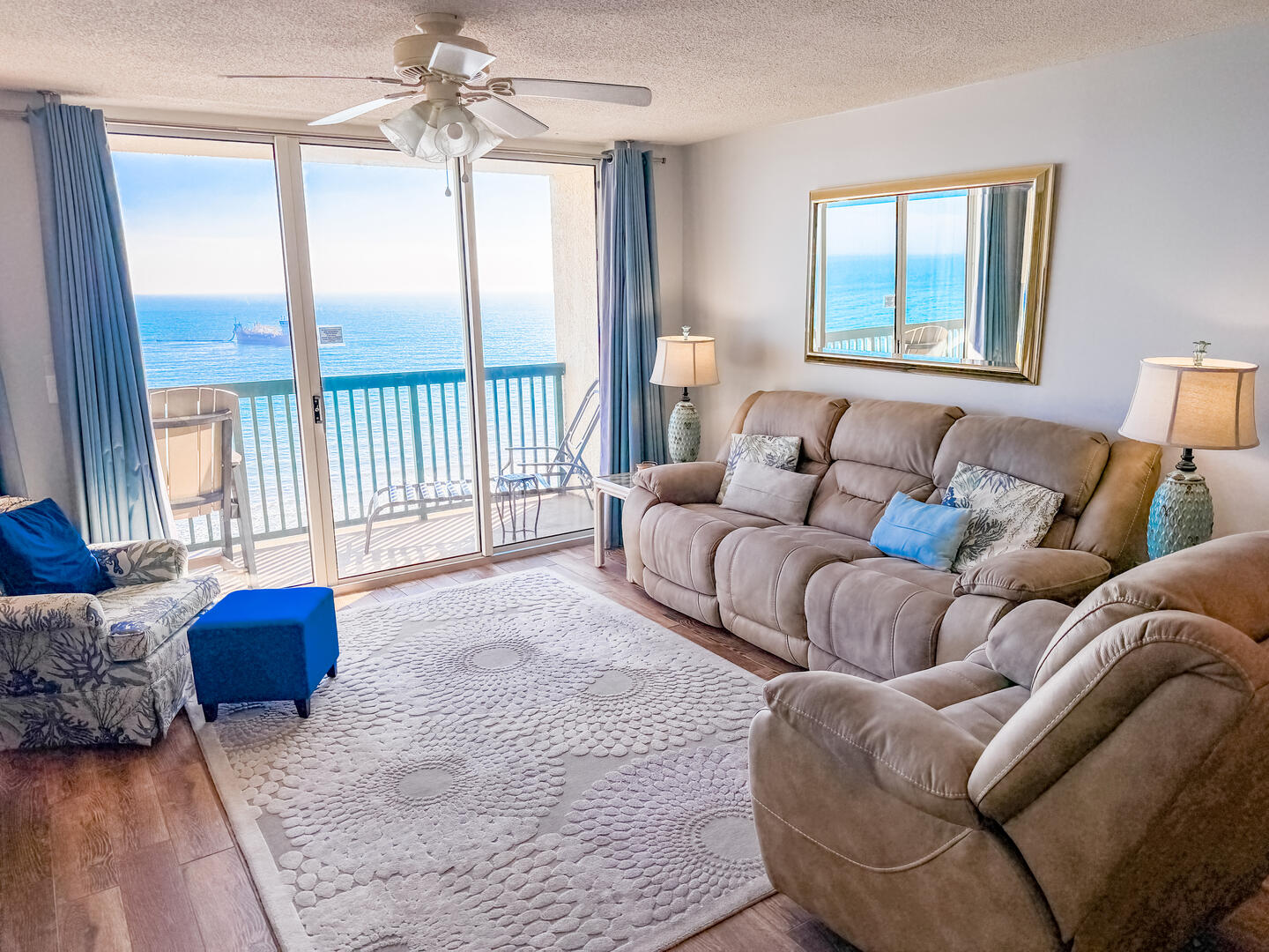 Experience coastal luxury at Ashworth 1406: 2 bedrooms, stunning oceanfront scenery, a 25’ balcony, and close proximity to everything on Main Street.