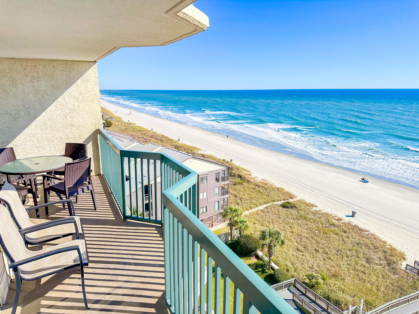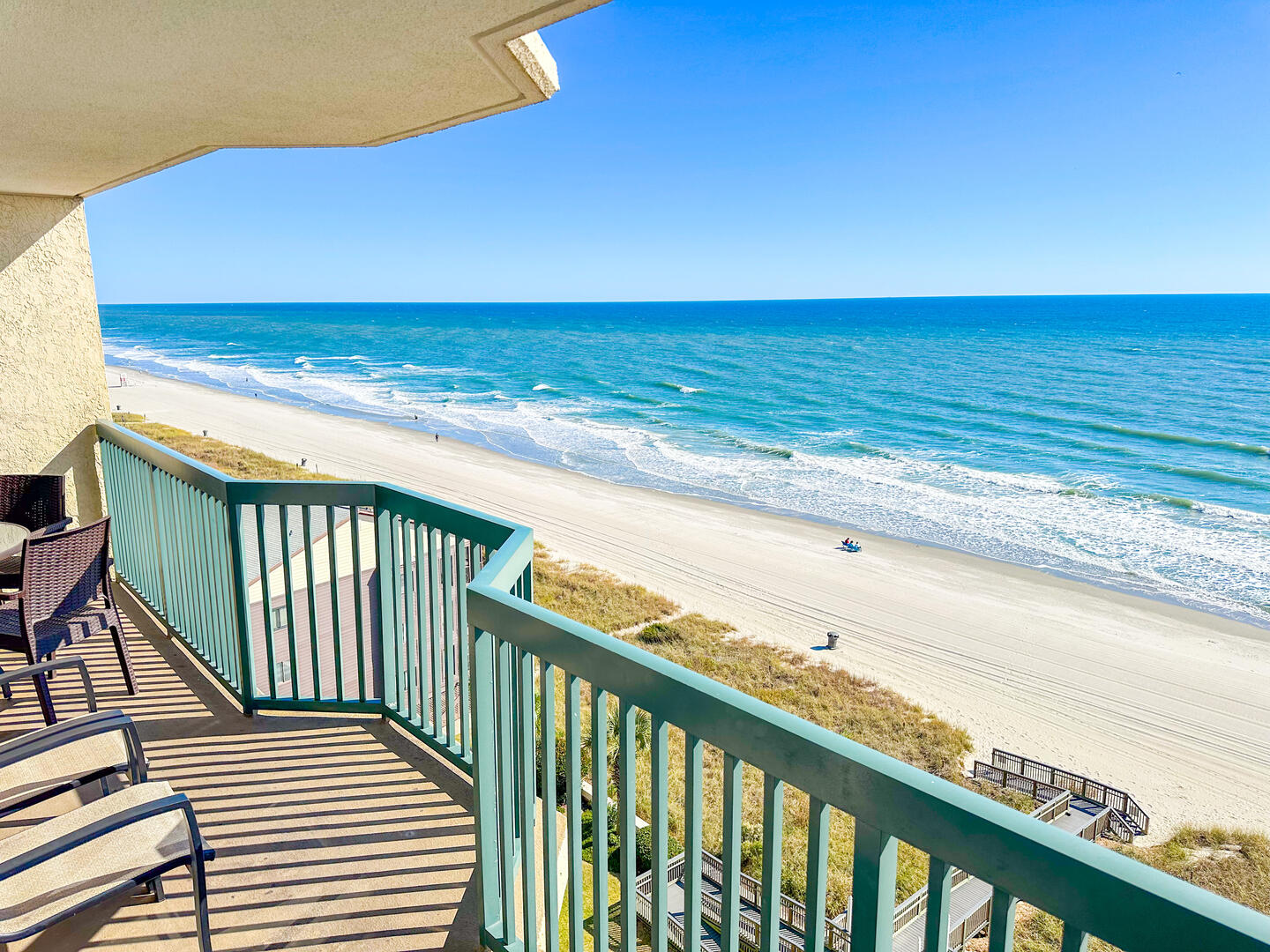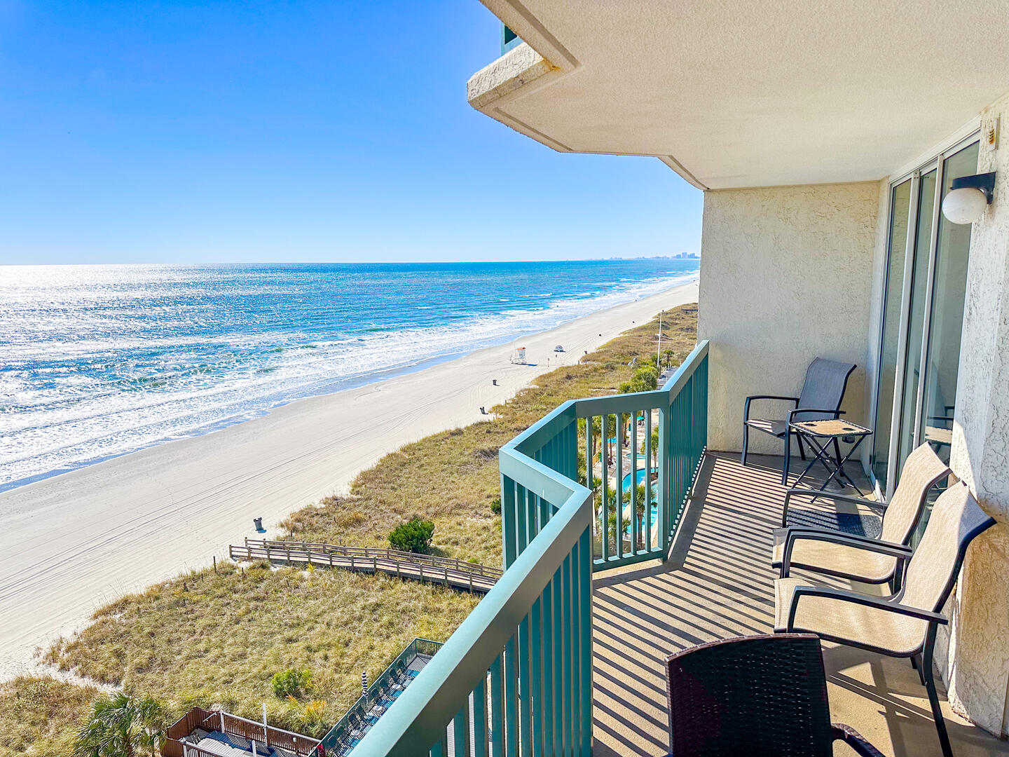 Oceanfront 4BR/3BA condo at The Ashworth with a 25-ft balcony, stunning views, full kitchen, lazy river, pools, and top amenities. Steps from Main Street. Sleeps 10.