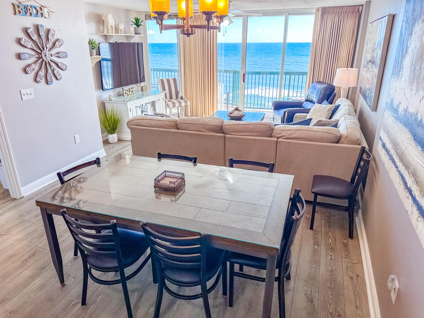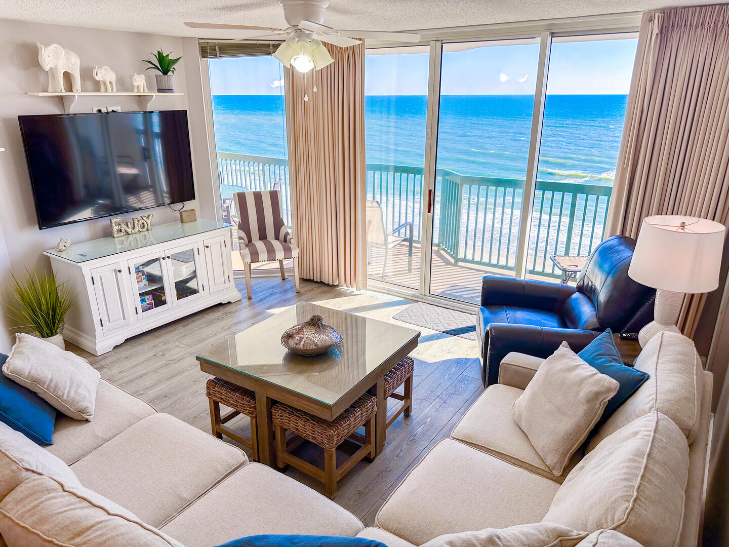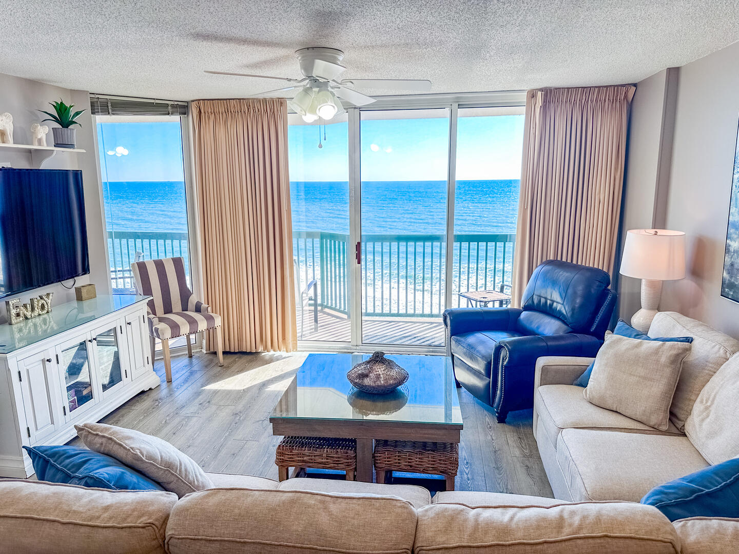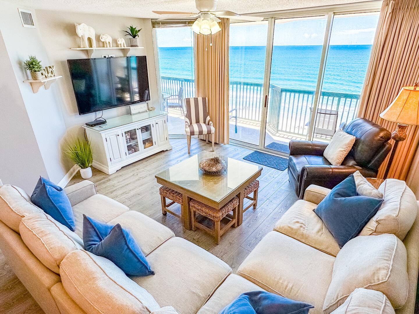 Oceanfront 4BR/3BA condo at The Ashworth with a 25-ft balcony, stunning views, full kitchen, lazy river, pools, and top amenities. Steps from Main Street. Sleeps 10.