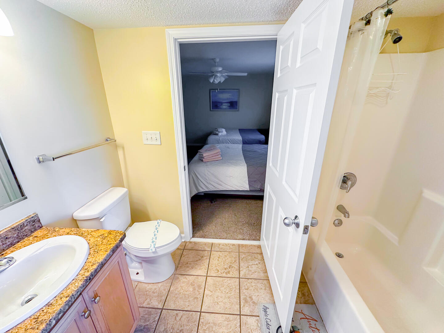 • Third Bedroom: Two queen beds + shared bathroom access