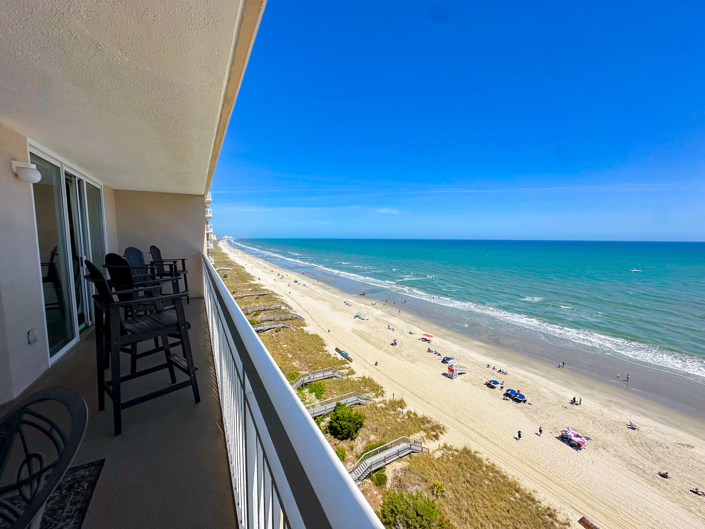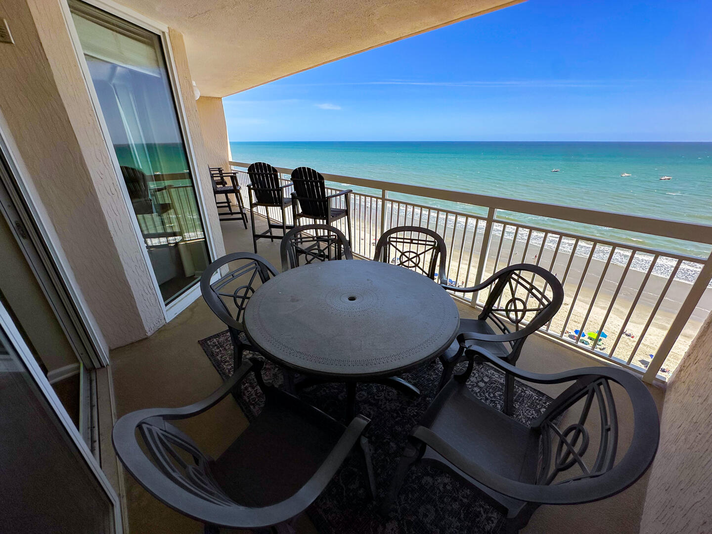 Experience oceanfront luxury at Crescent Shores 1210 spacious 4BR/4BA condo with a 26-ft balcony, modern comforts, pools, lazy rivers, and prime Crescent Beach location.