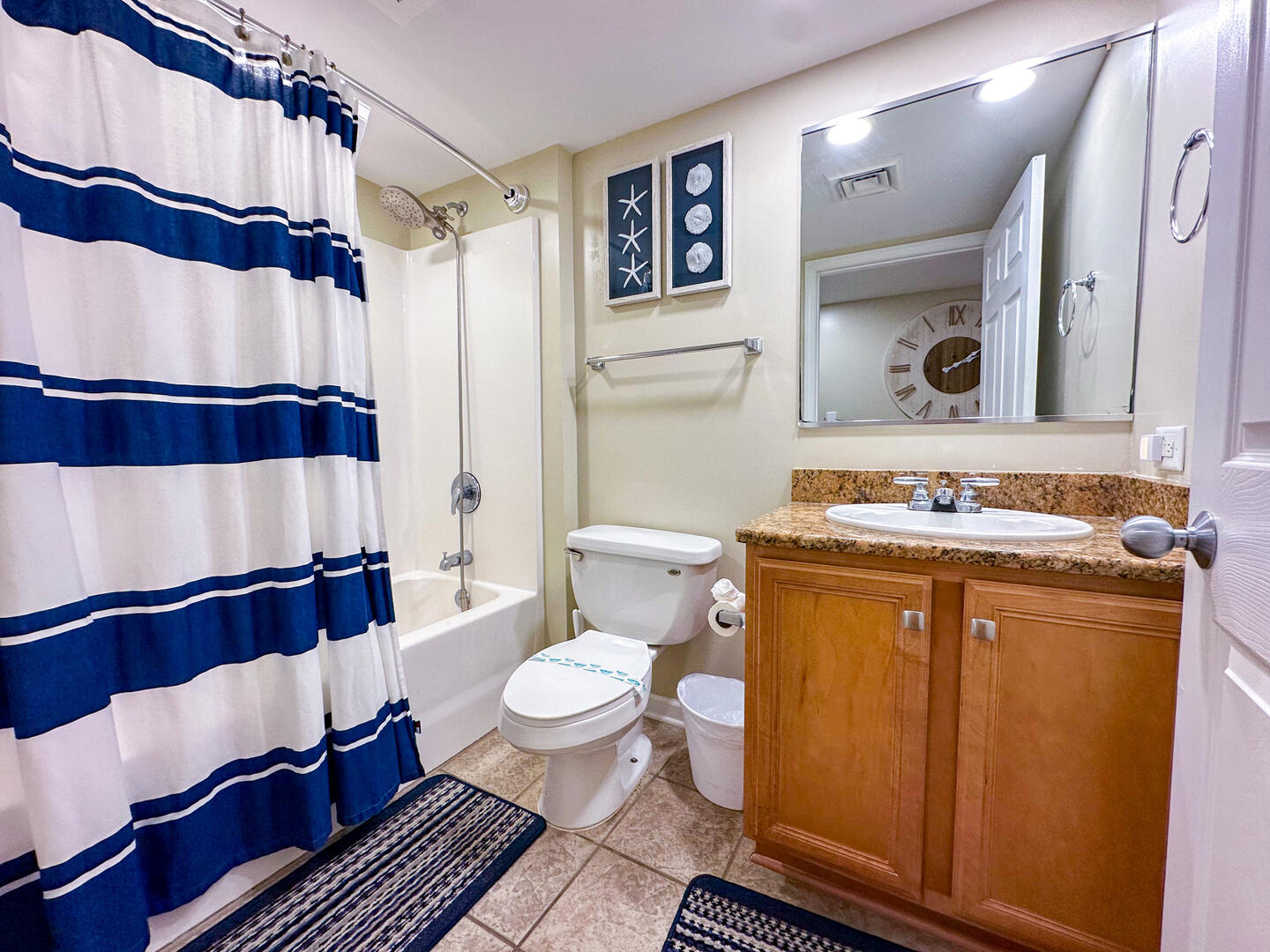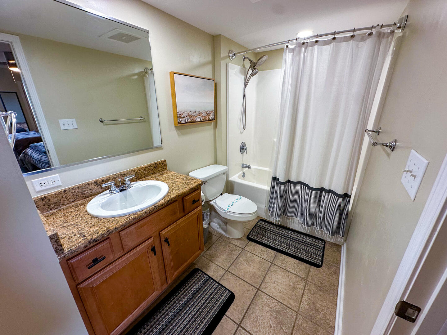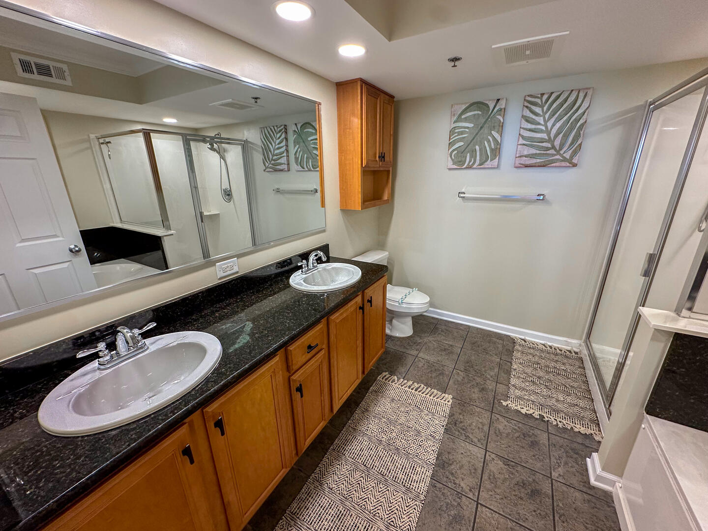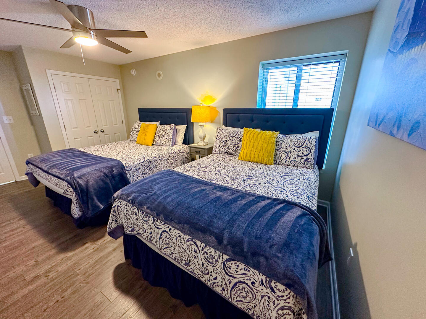 • Second Bedroom: Two queen beds + flat-screen TV + ceiling fan + private bathroom • Third Bedroom: Two queen beds + flat-screen TV + shared bathroom