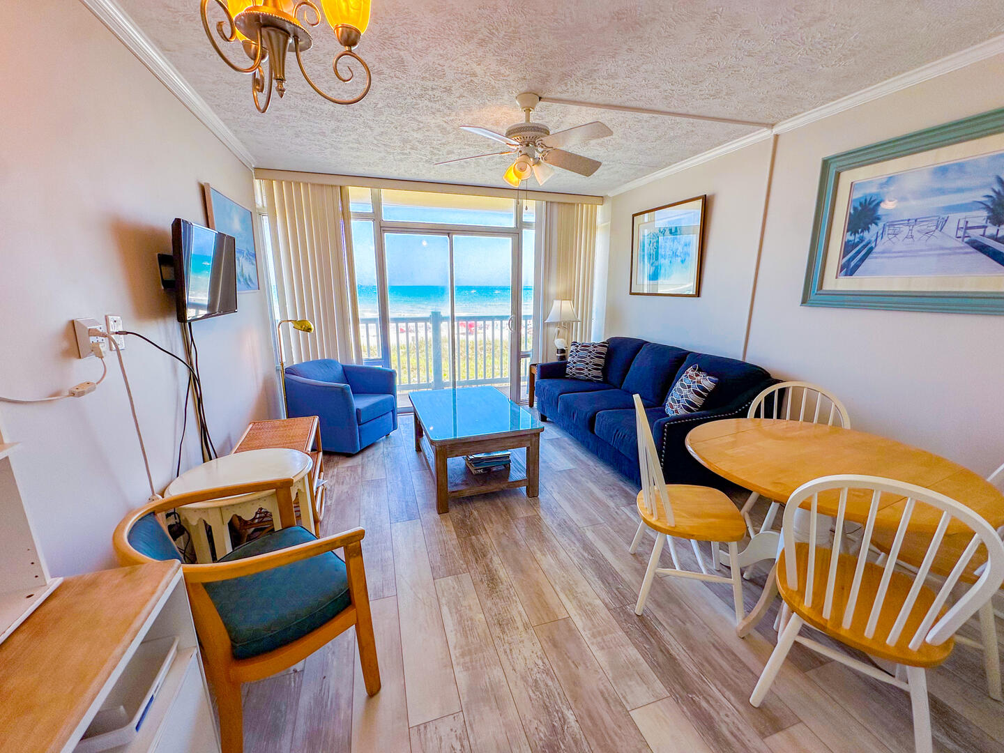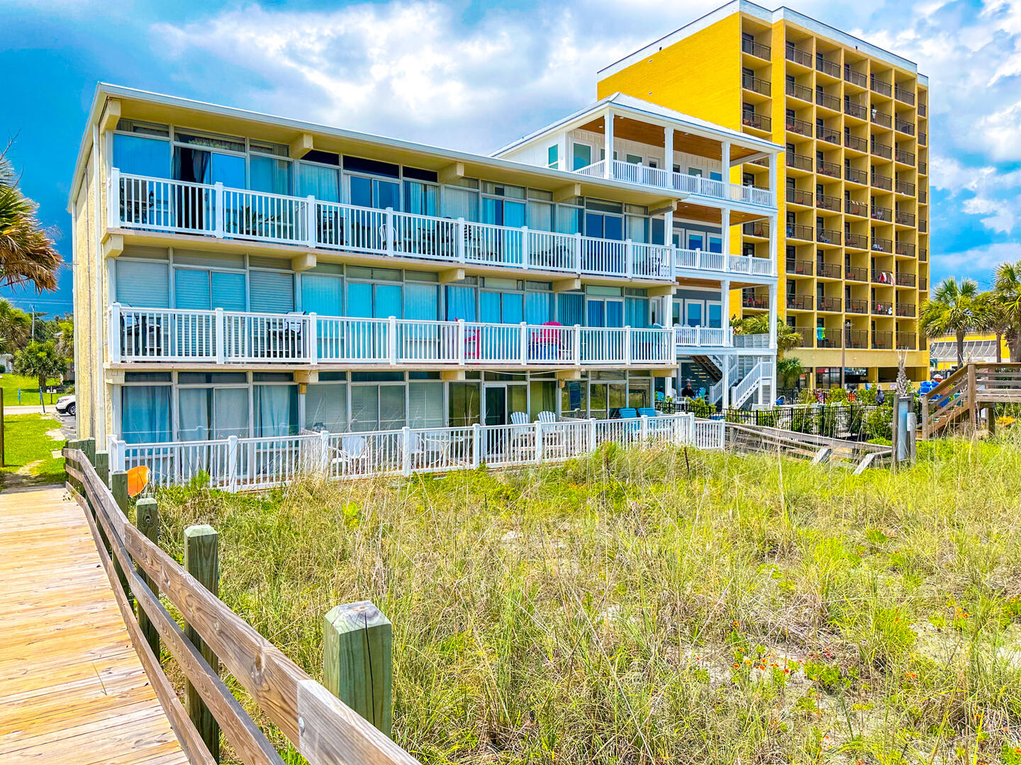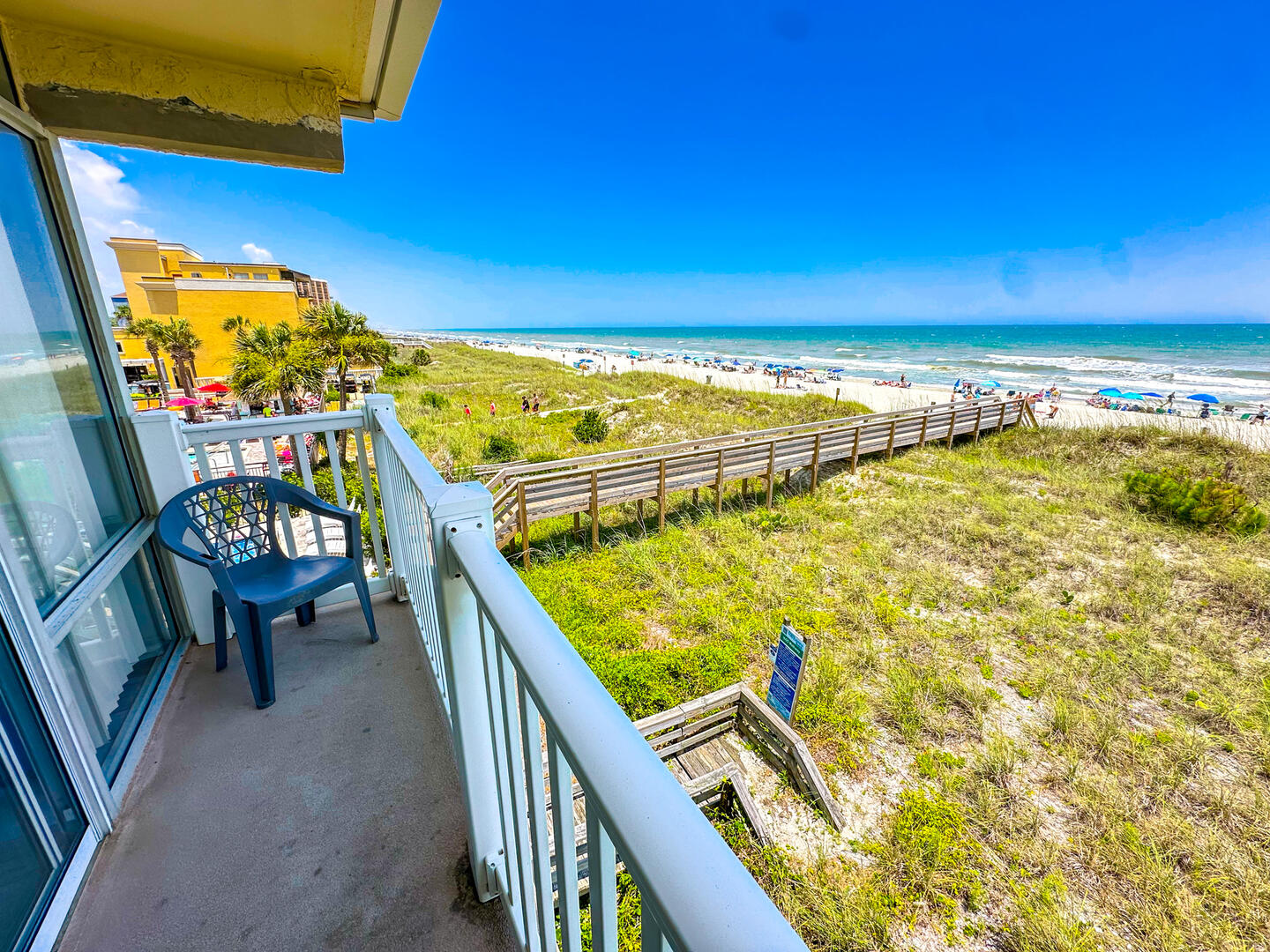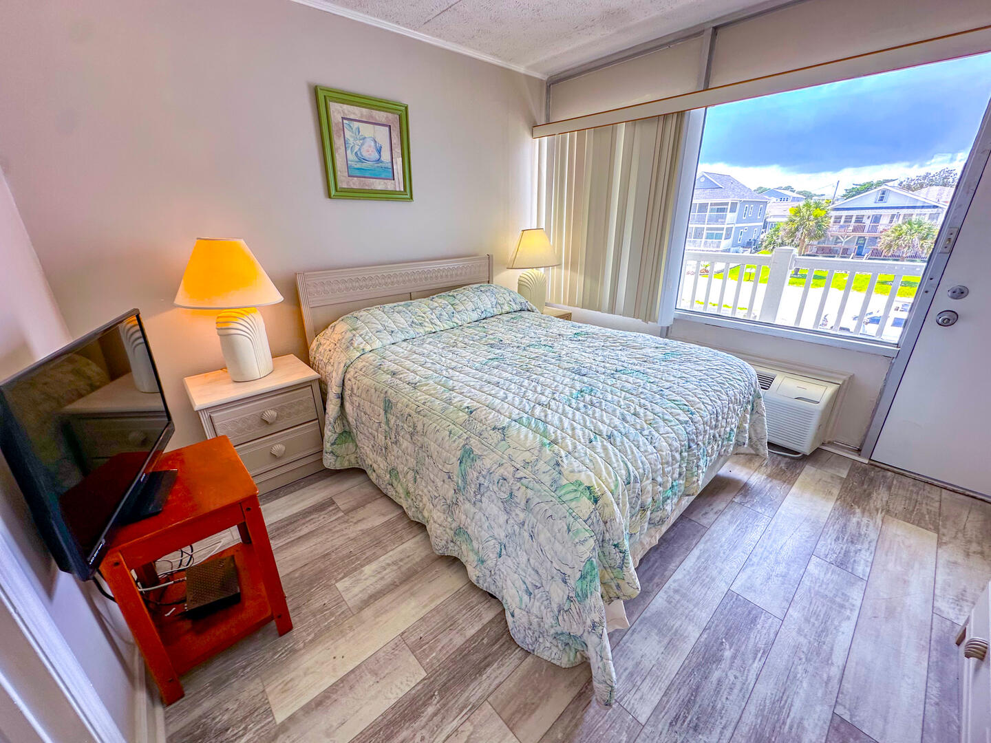 Charming 1BR oceanfront condo with private balcony, full kitchen, sleeper sofa, and stunning views, an affordable Crescent Beach escape perfect for couples.