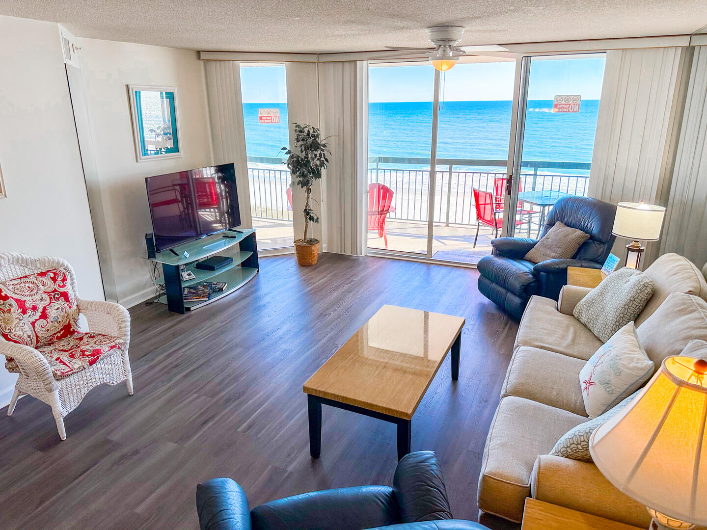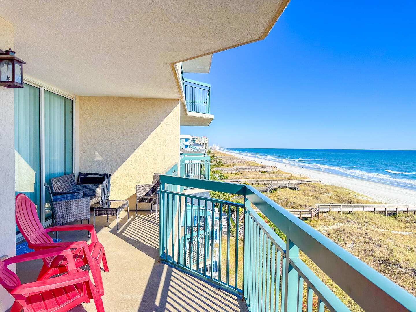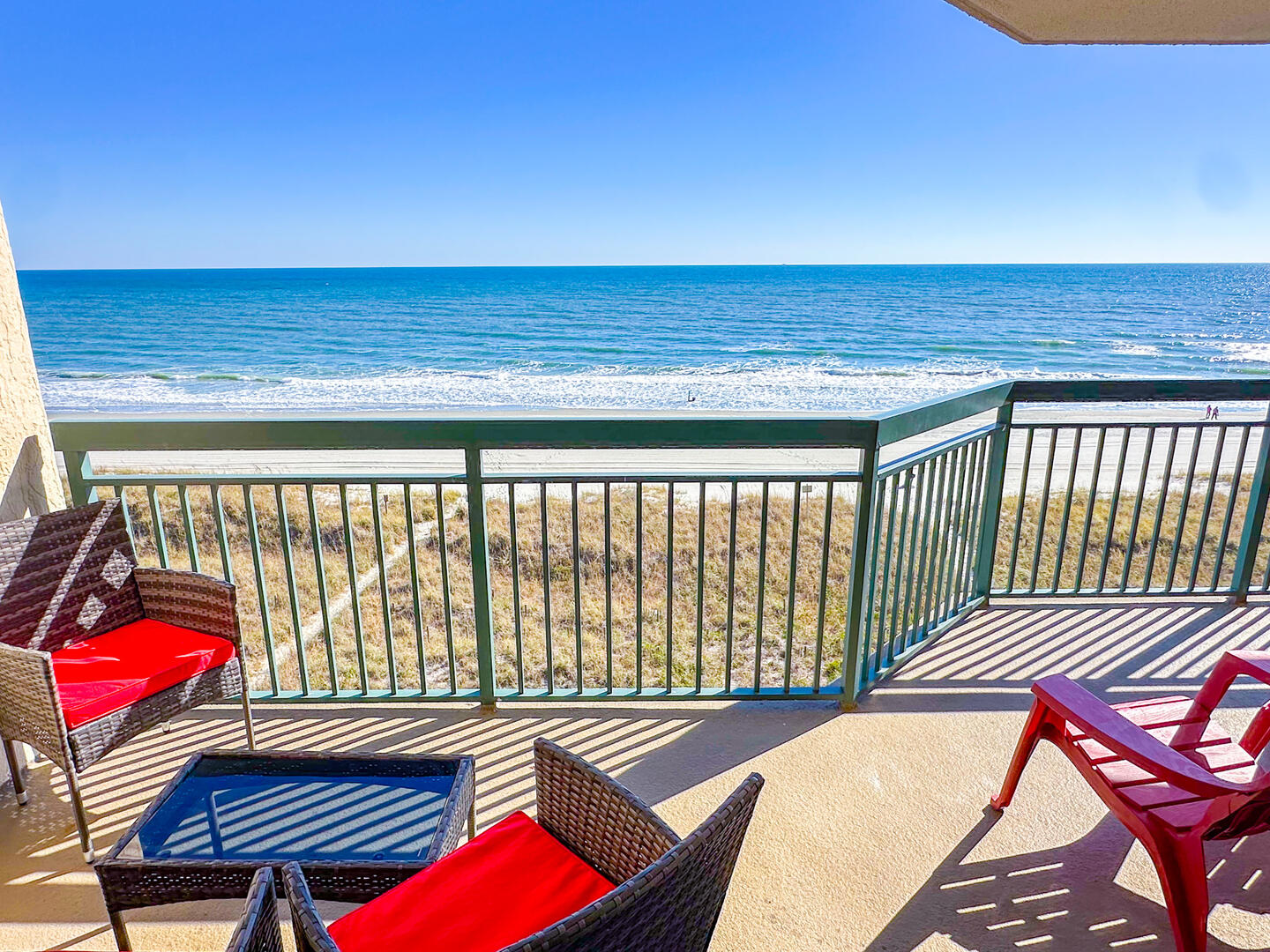 Stay at North Shore Villas 502: updated 3BR oceanfront condo with panoramic views, resort pool, lazy river, hot tub, and beach access.