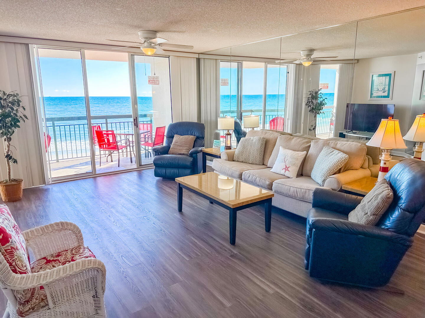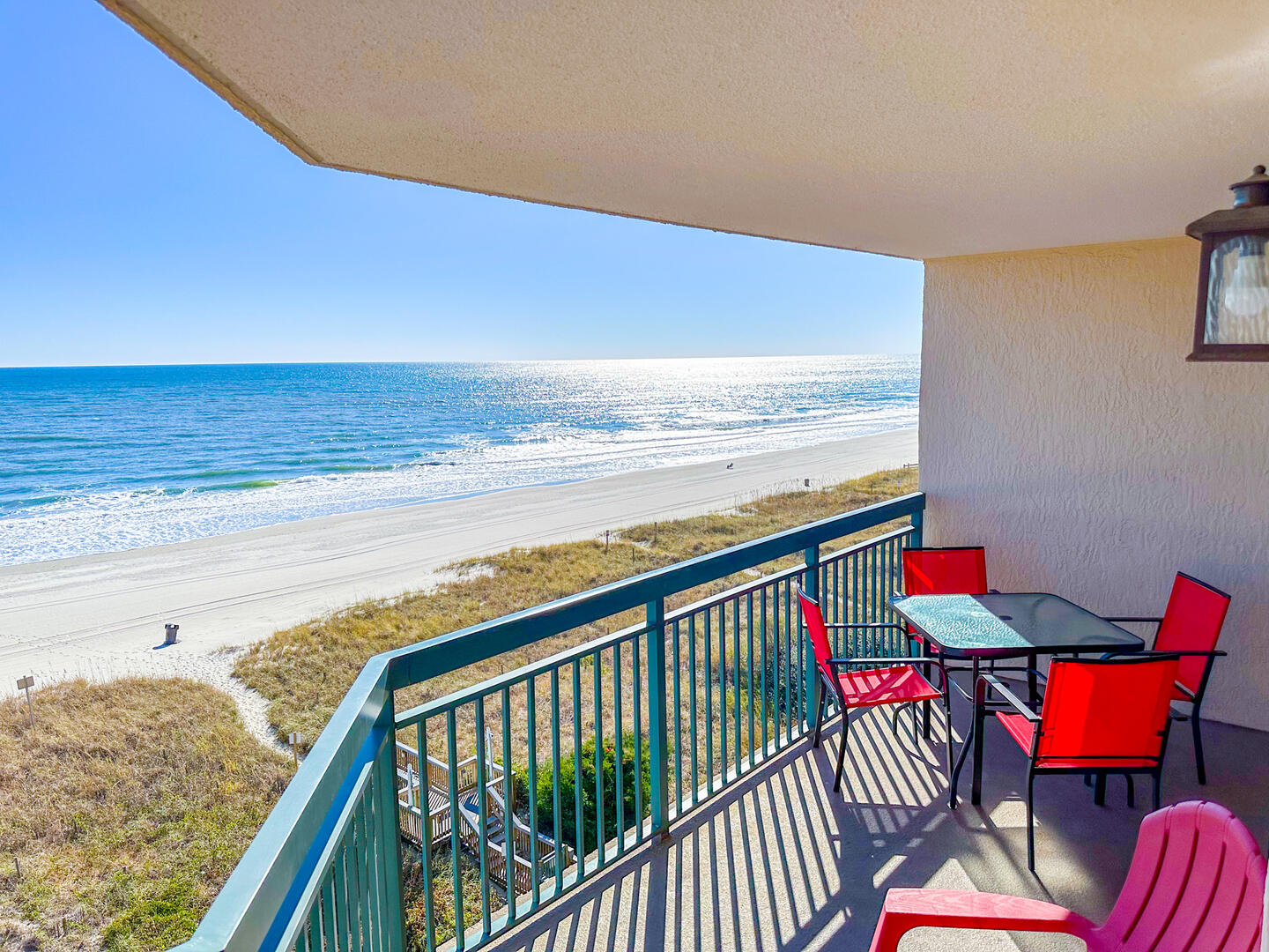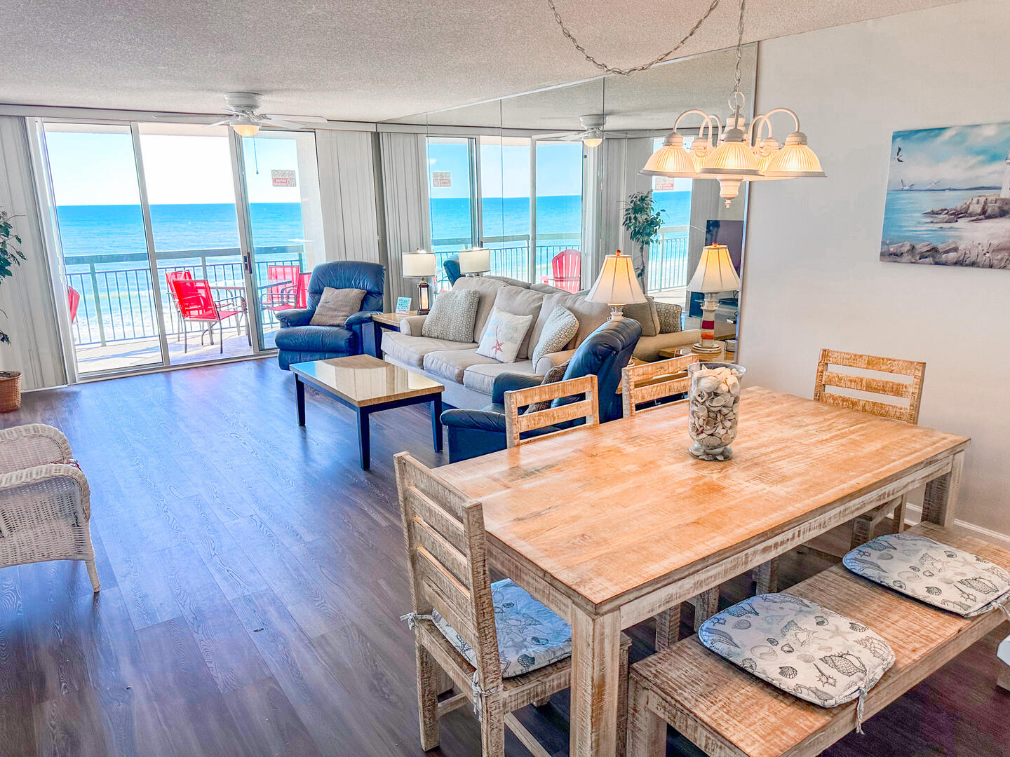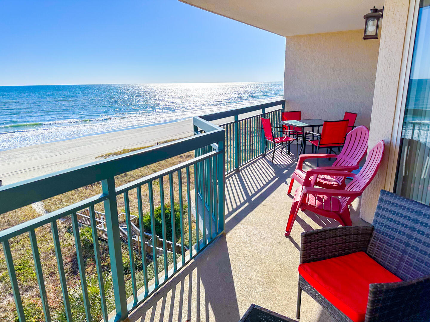 Stay at North Shore Villas 502: updated 3BR oceanfront condo with panoramic views, resort pool, lazy river, hot tub, and beach access.