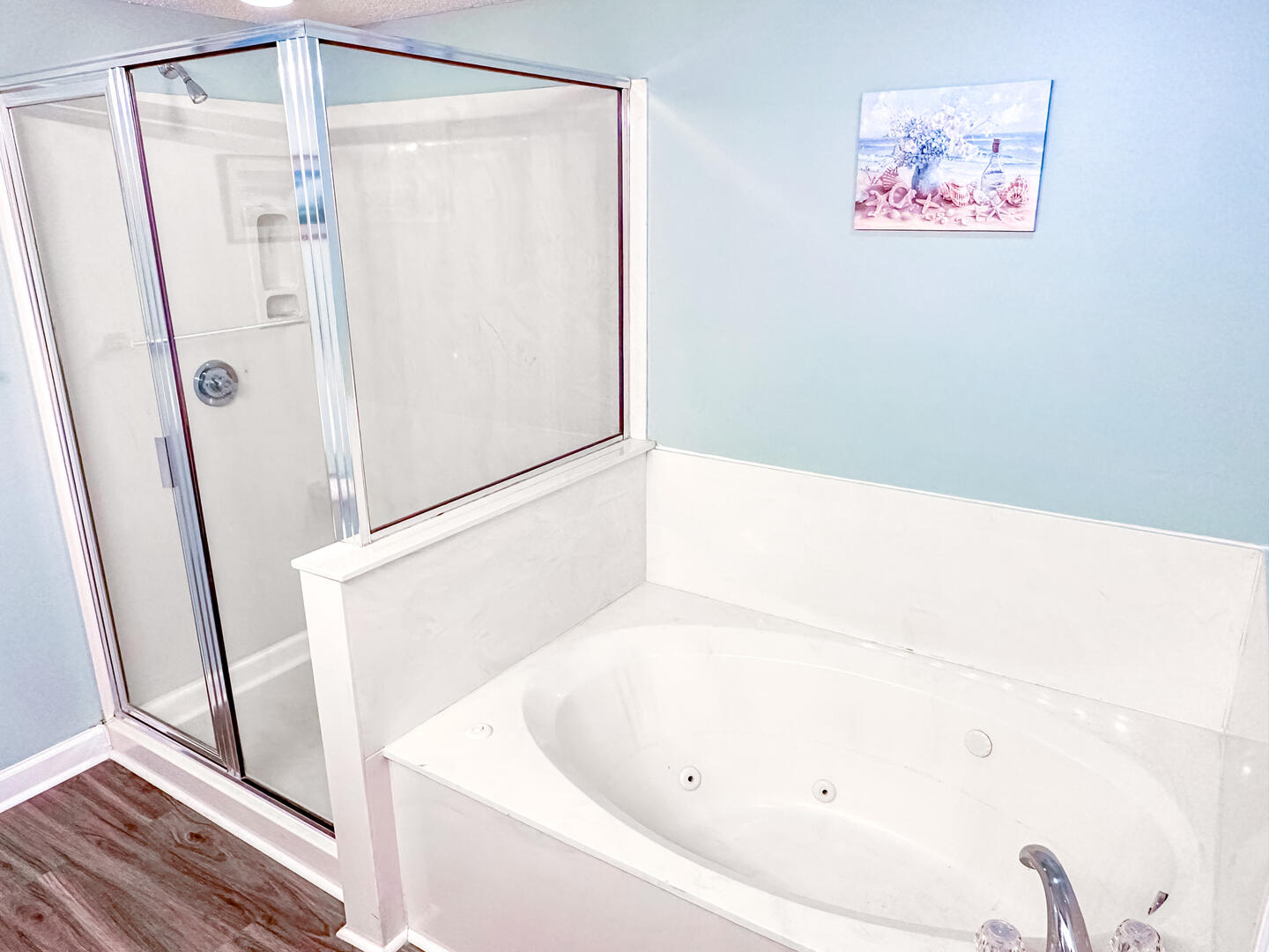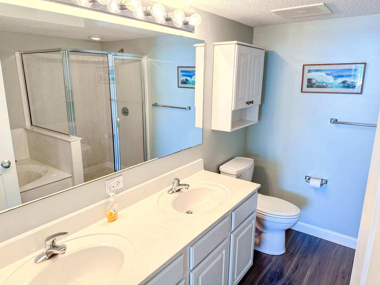 • Bedroom 1: King bed + private oceanfront balcony access + double vanity + garden tub + glass shower
