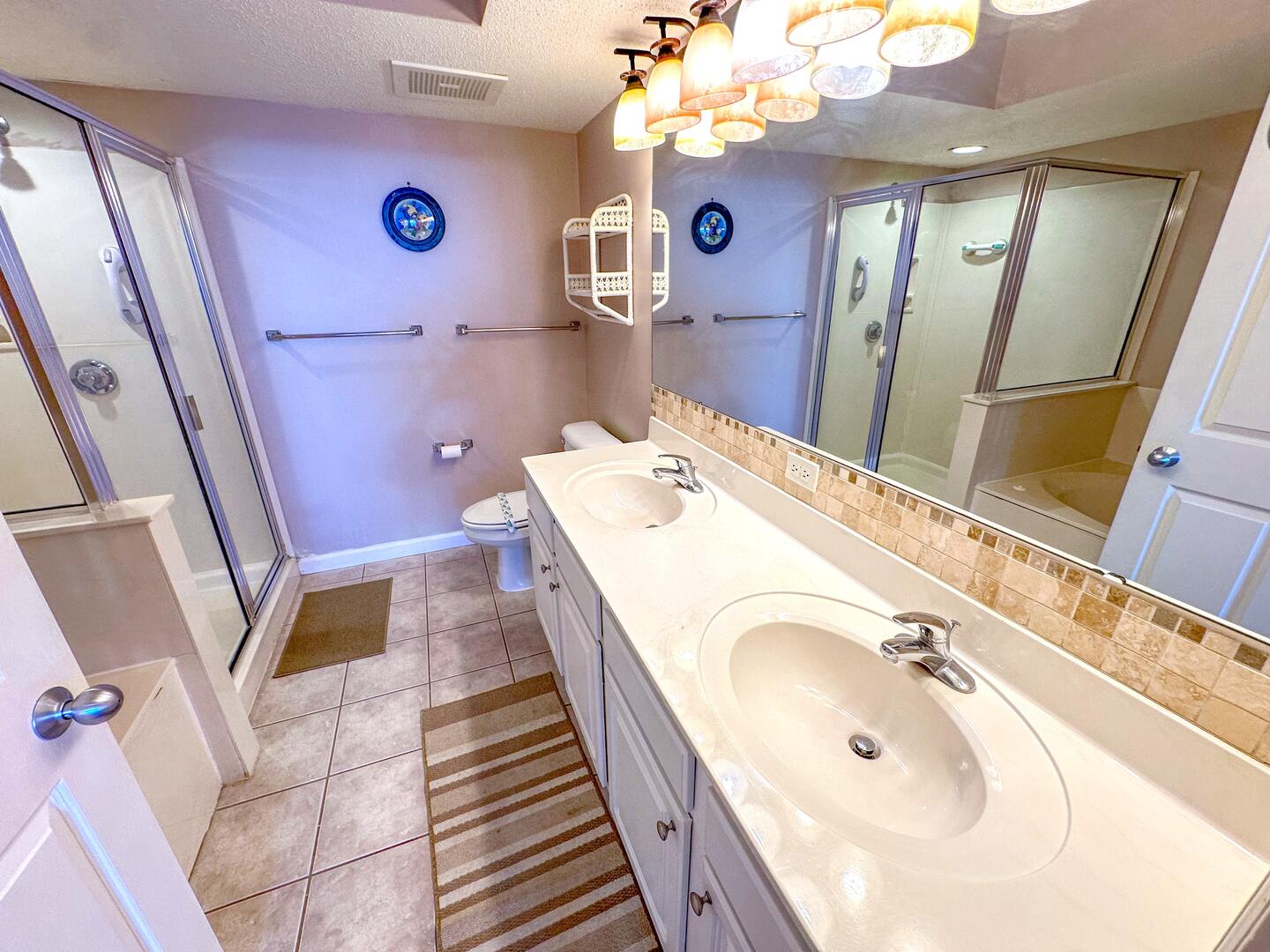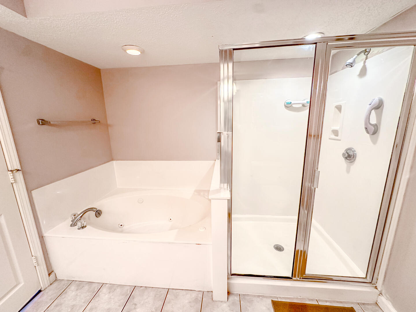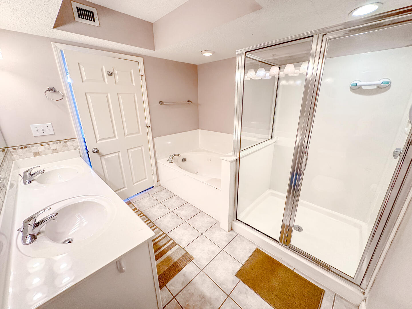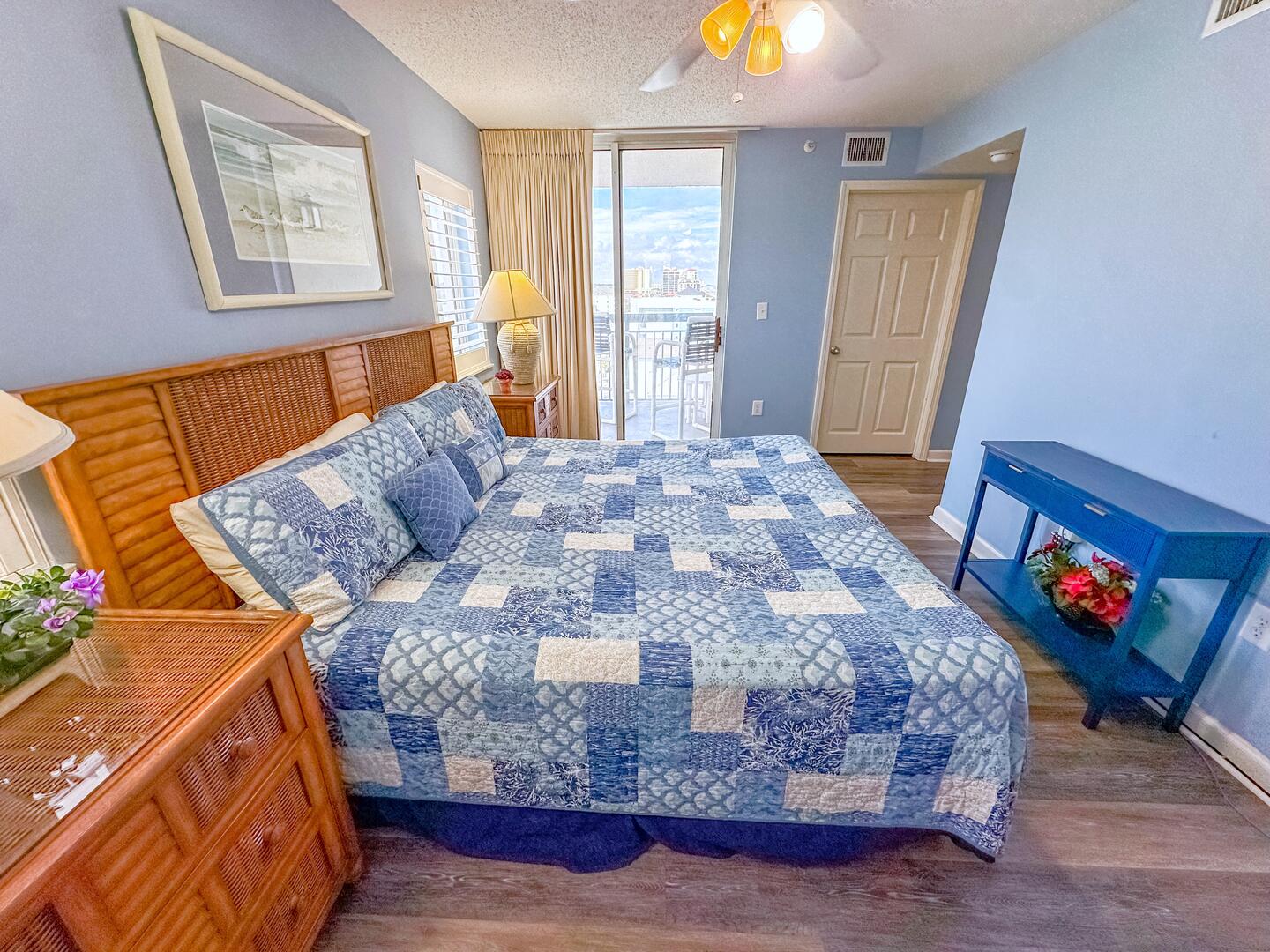 • Master Suite: King bed + flat-screen TV + ceiling fan + oceanfront balcony access + private bath with double vanities, garden tub & glass-enclosed shower