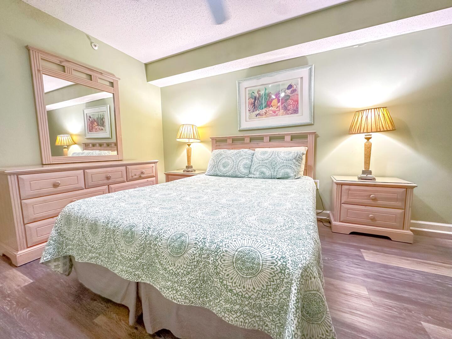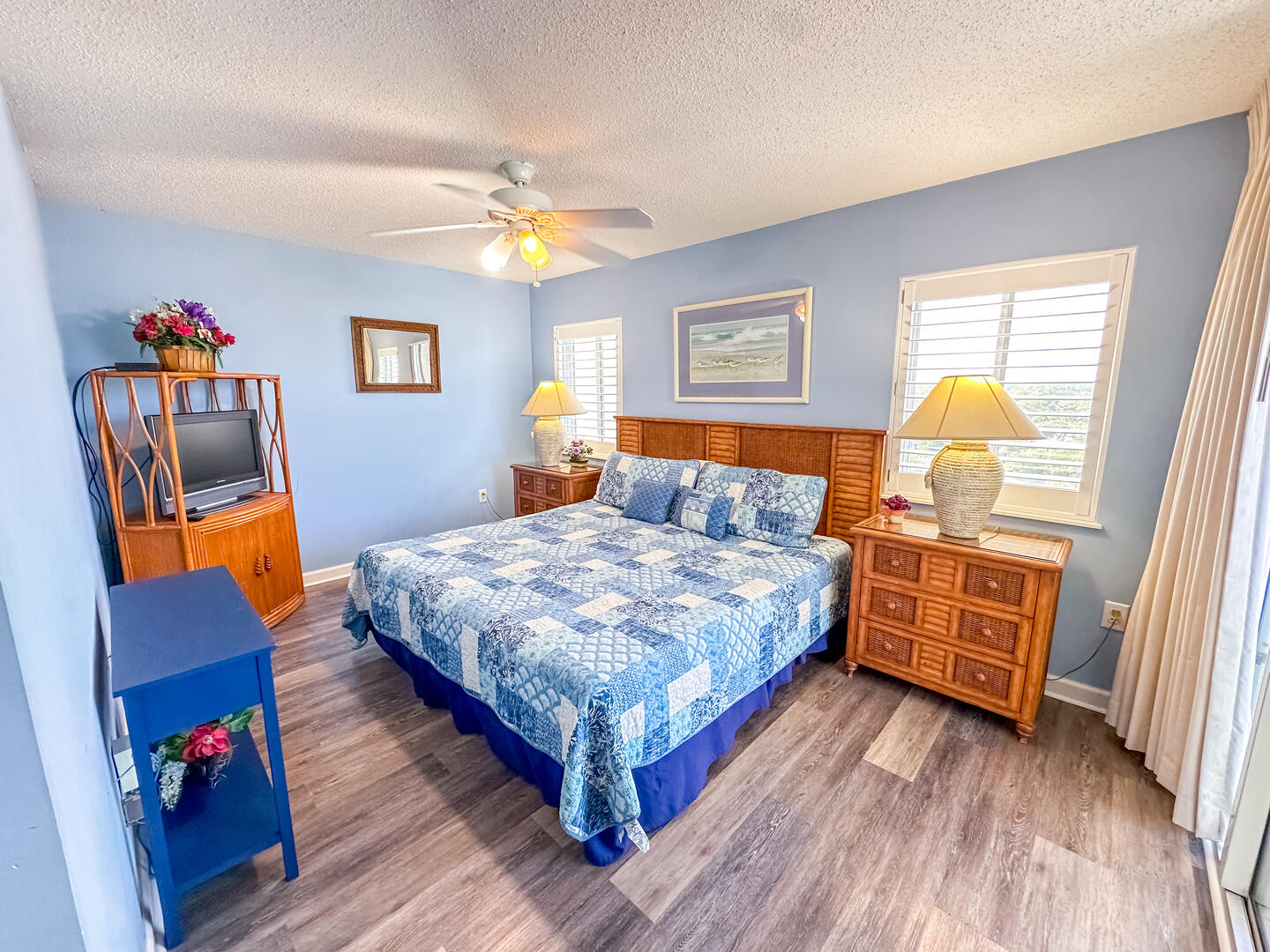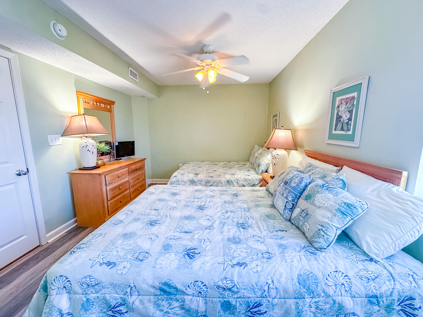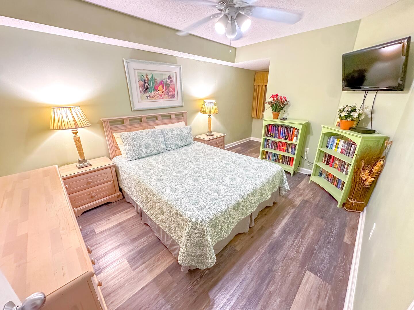 • Second Bedroom: King bed + flat-screen TV + ceiling fan + en-suite bath