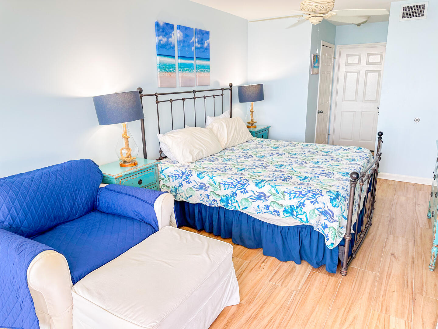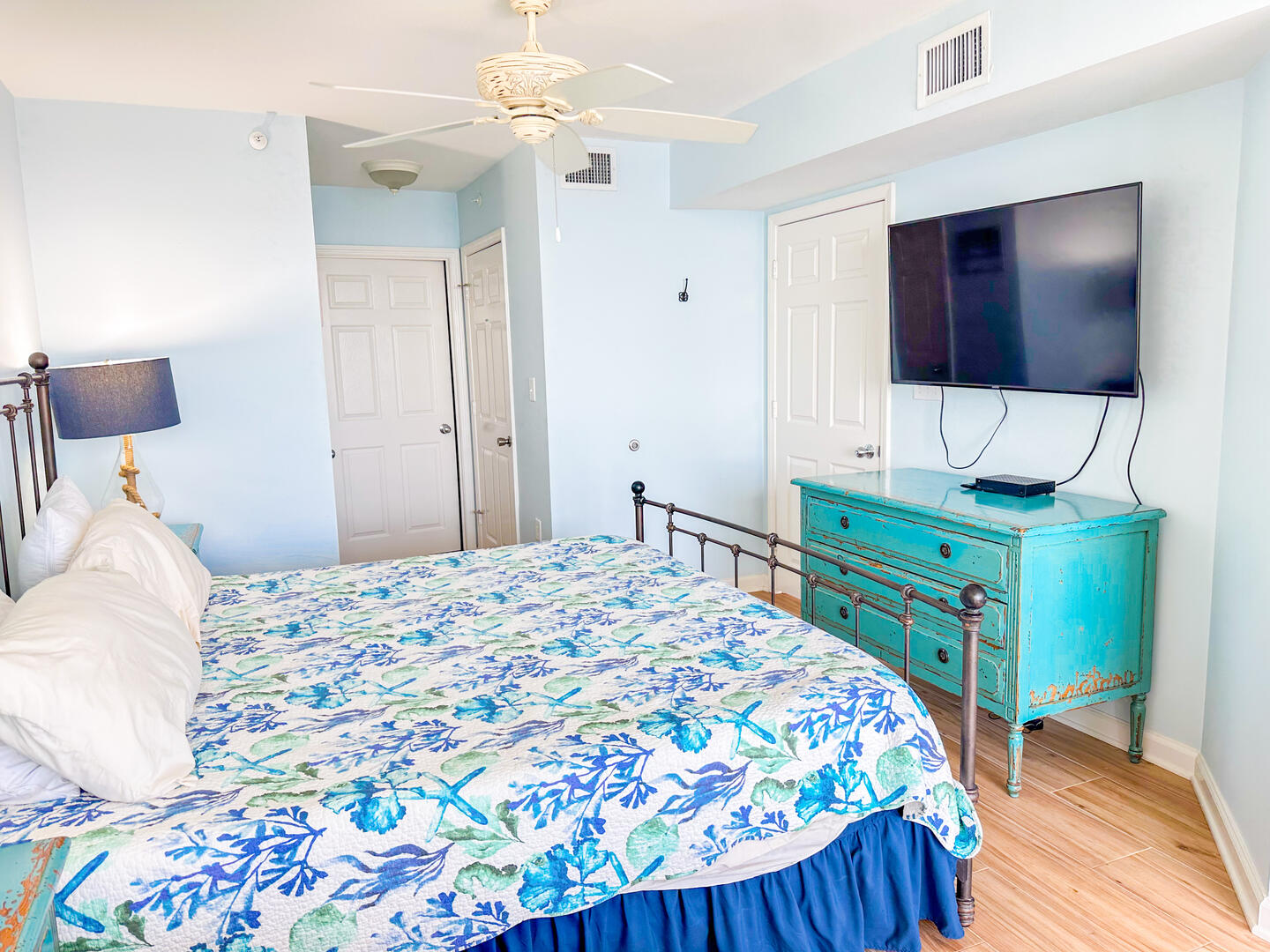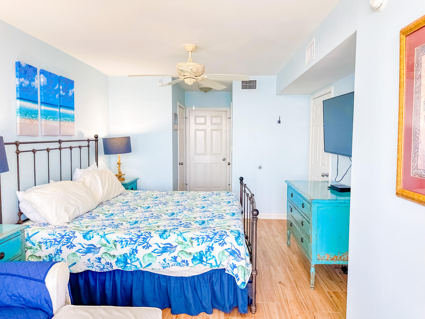 • Third Bedroom: King bed + flat-screen TV + ceiling fan