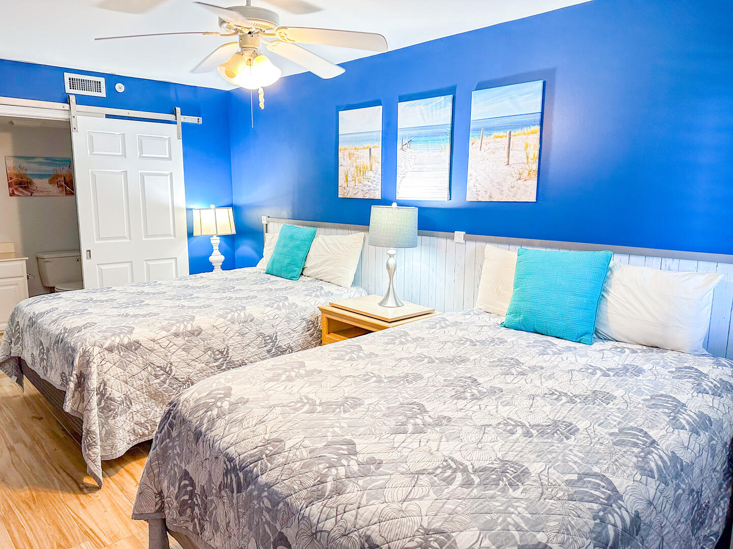 • Second Bedroom: Two Queen beds + flat-screen TV + ceiling fan