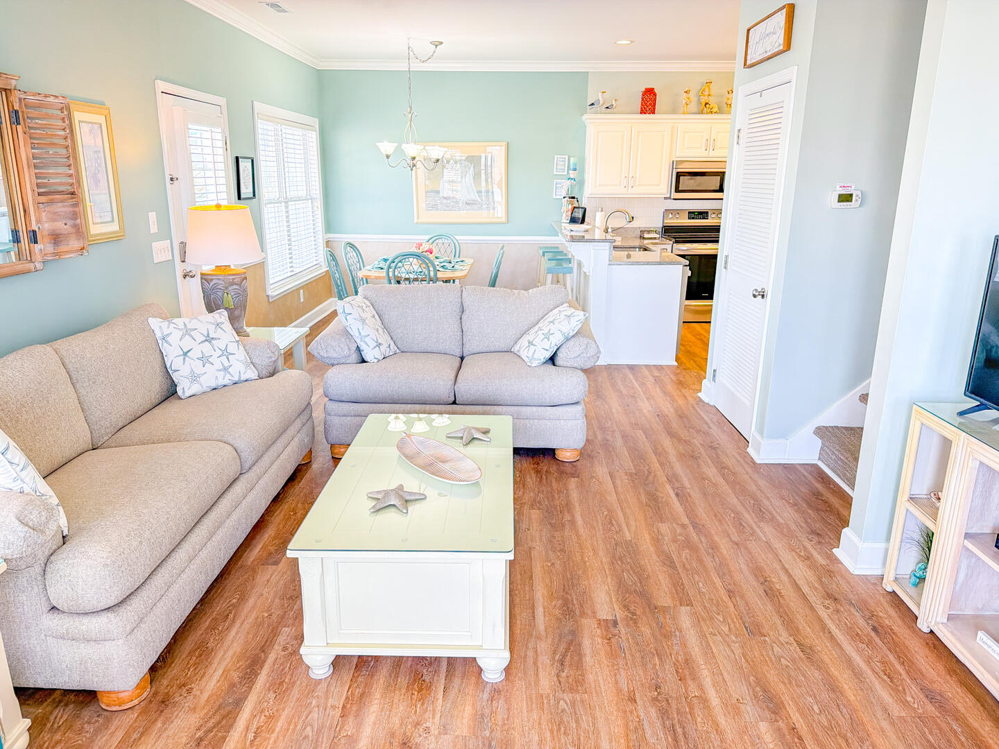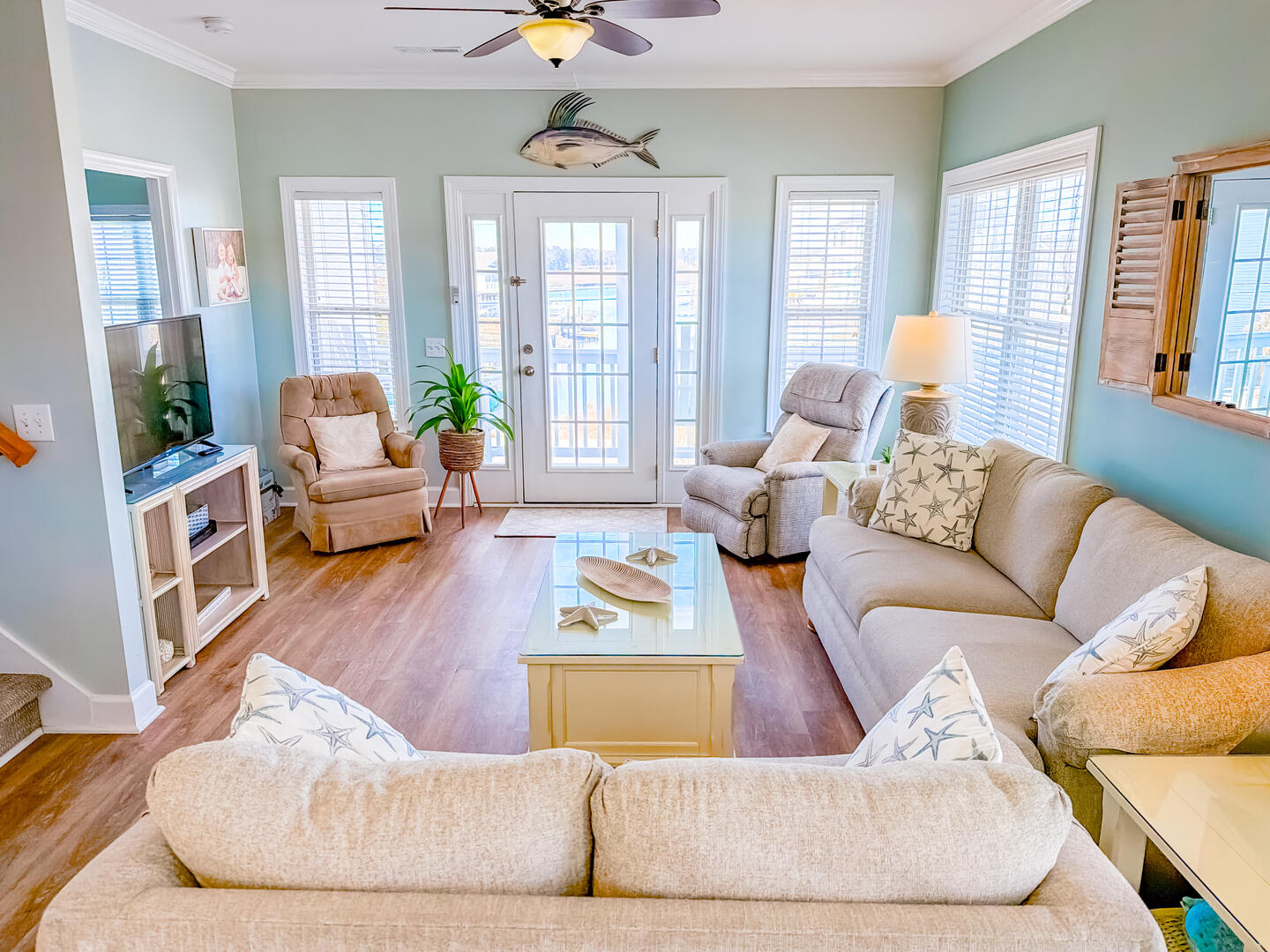 Experience the perfect North Myrtle Beach getaway at Pelican Manor Unit D a spacious second-row beachside home in the Cherry Grove section. This modern 4-bedroom, 4.5-bath retreat comfortably sleeps 12 guests and features updated appliances, contemporary décor, and thoughtfully designed living spaces. Relax in the spacious living room and dining area, cook up a meal in the fully equipped kitchen, or step outside to the wrap-around balconies to enjoy marsh views and coastal breezes. The beach is just a one-minute walk away, and the home offers a picnic table right outside and ample parking for your convenience. Perfect for families or groups seeking comfort, style, and location.Bedrooms & Baths: