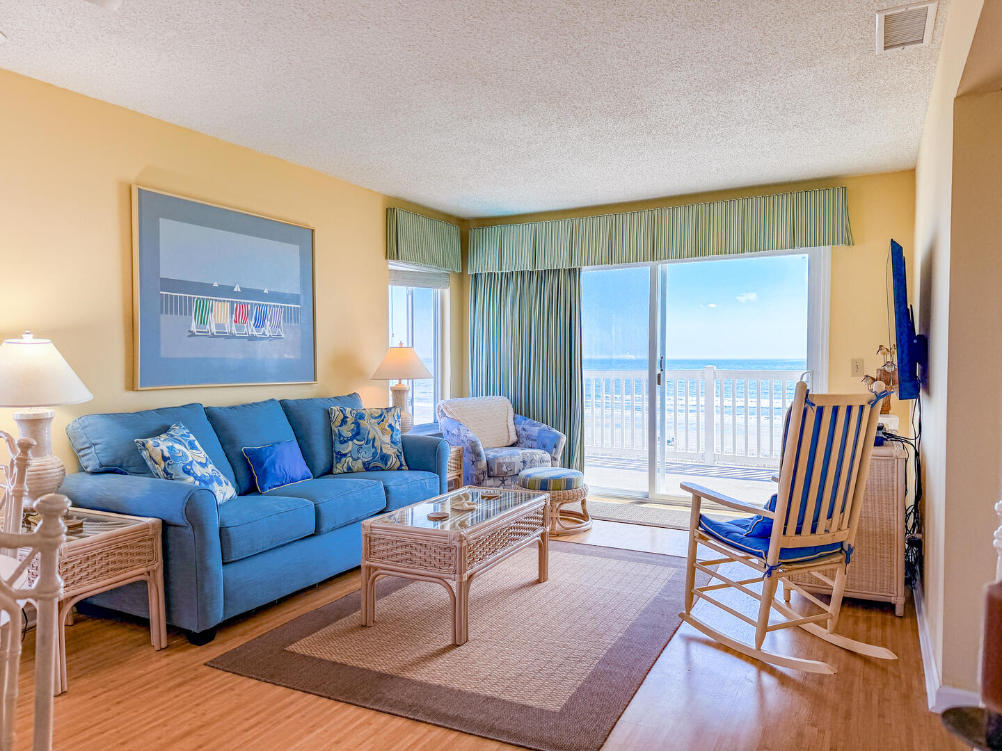 • Living Room: Queen sleeper sofa (linens not included unless requested) panoramic oceanfront balcony