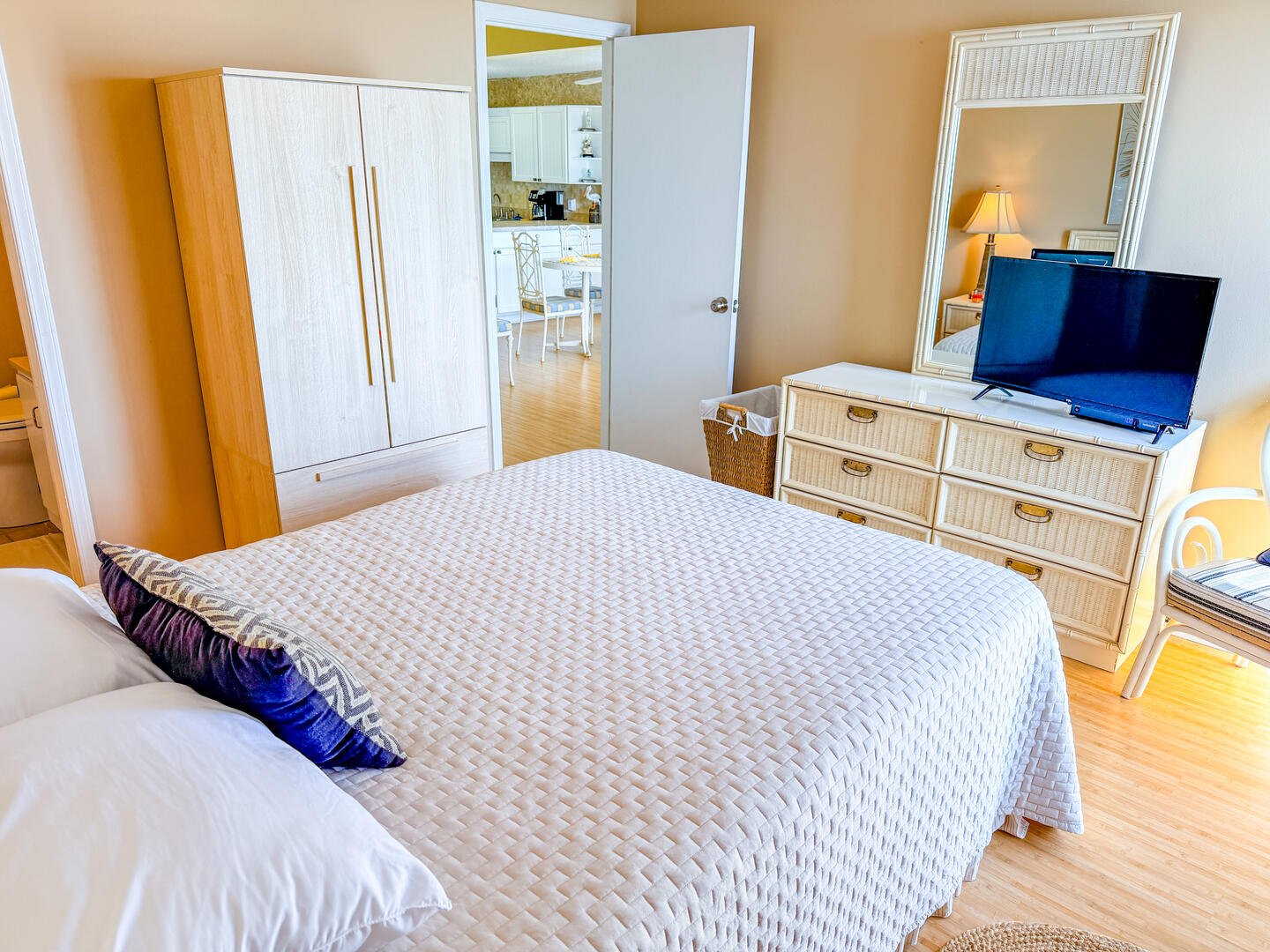 • Bedroom 1: Queen sized bed flat-screen TV balcony access en-suite bathroom