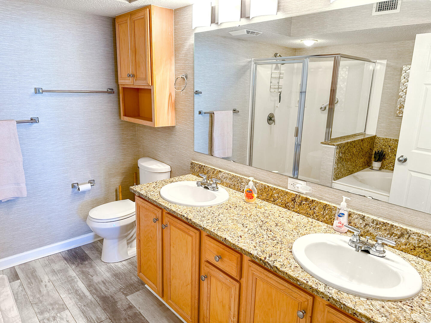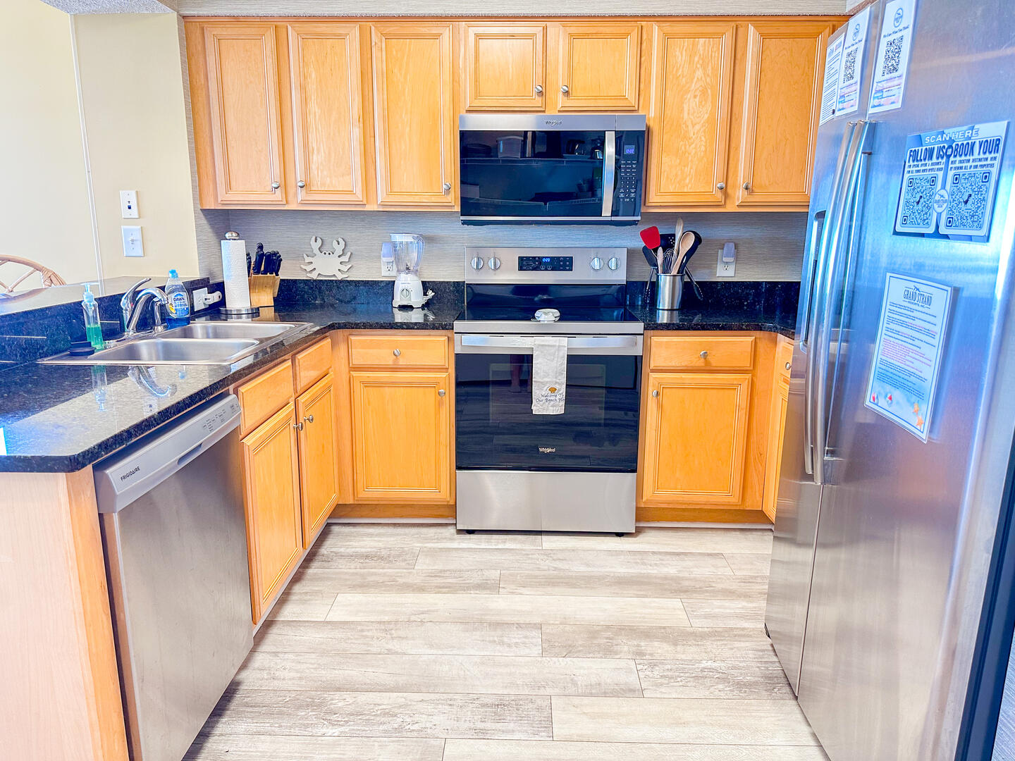 The fully equipped gourmet kitchen features granite countertops, stainless steel appliances, a breakfast bar, and a full-size washer and dryer making it easy to enjoy extended stays.Bedrooms & Baths:
