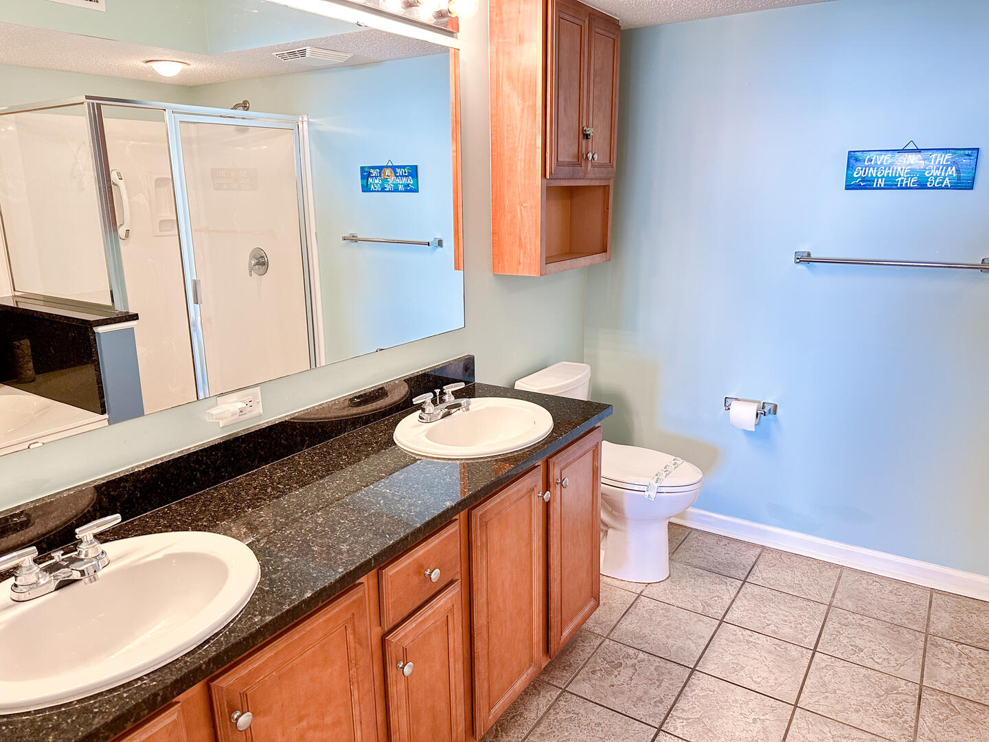 • Bedroom 2: Queen bed with shared access to a full bathroom.