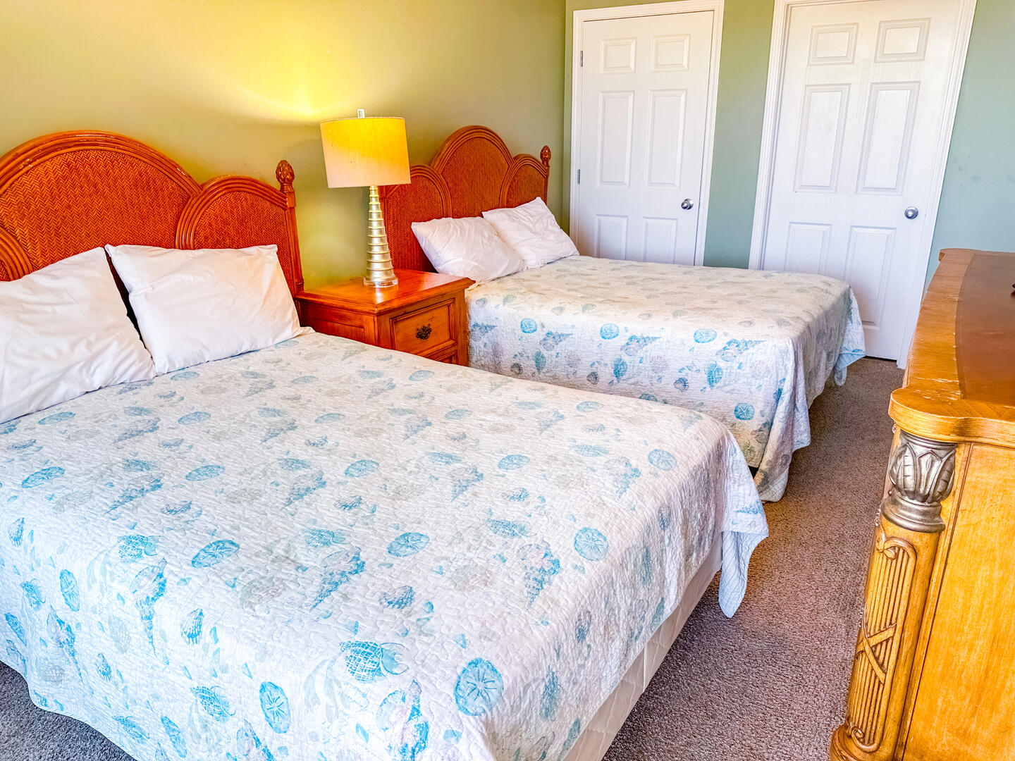 • Bedroom 3: 2 Full-size beds with nearby bath access.