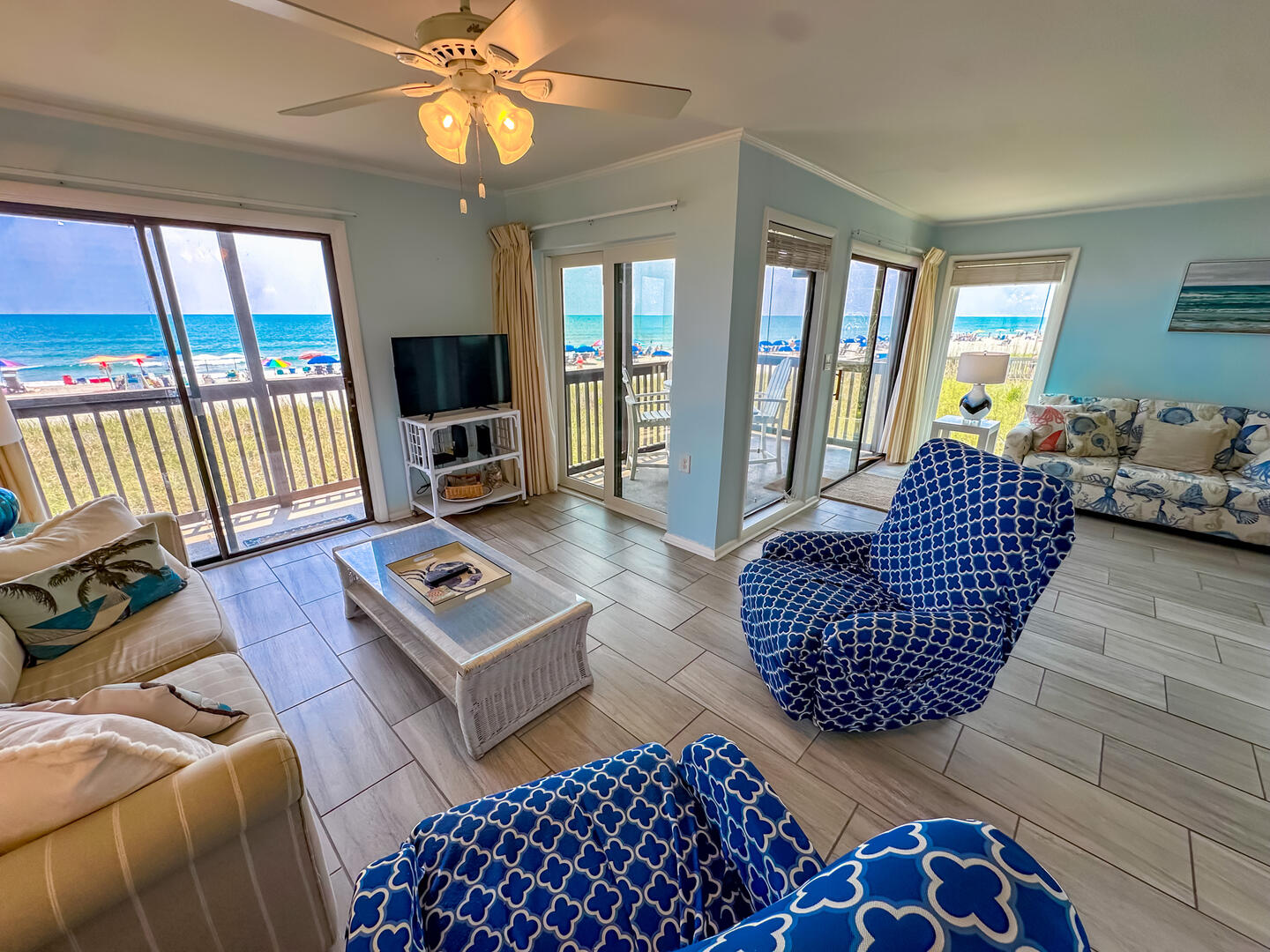 This exceptional condo is unique to Tilghman Beach & Racquet Club and perfect for families or couples looking for a true beachfront experience. From sunrise coffees to sunset strolls, you'll love every moment of your stay in this beautifully updated oceanfront retreat at Tilghman Beach & Racquet Club 101Please Note: Primary renter must be 25 or older & staying on site. No motorcycles, boats, trailers, ATVs, or RVs.