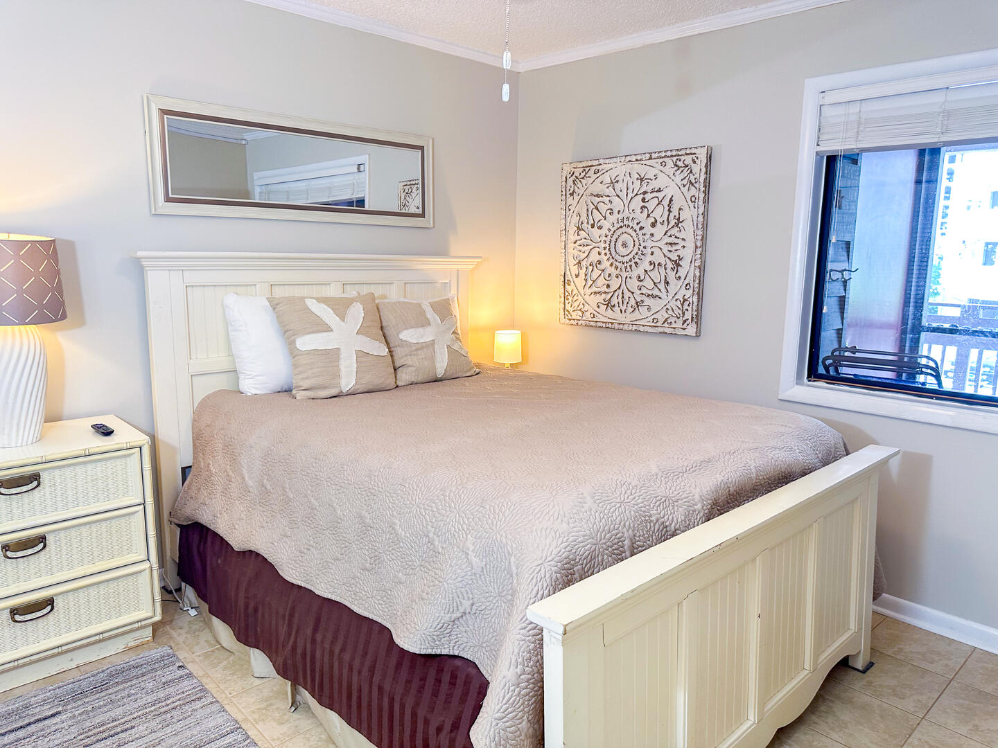 • Second Bedroom: Queen bed + flat-screen TV + full guest bathroom nearby