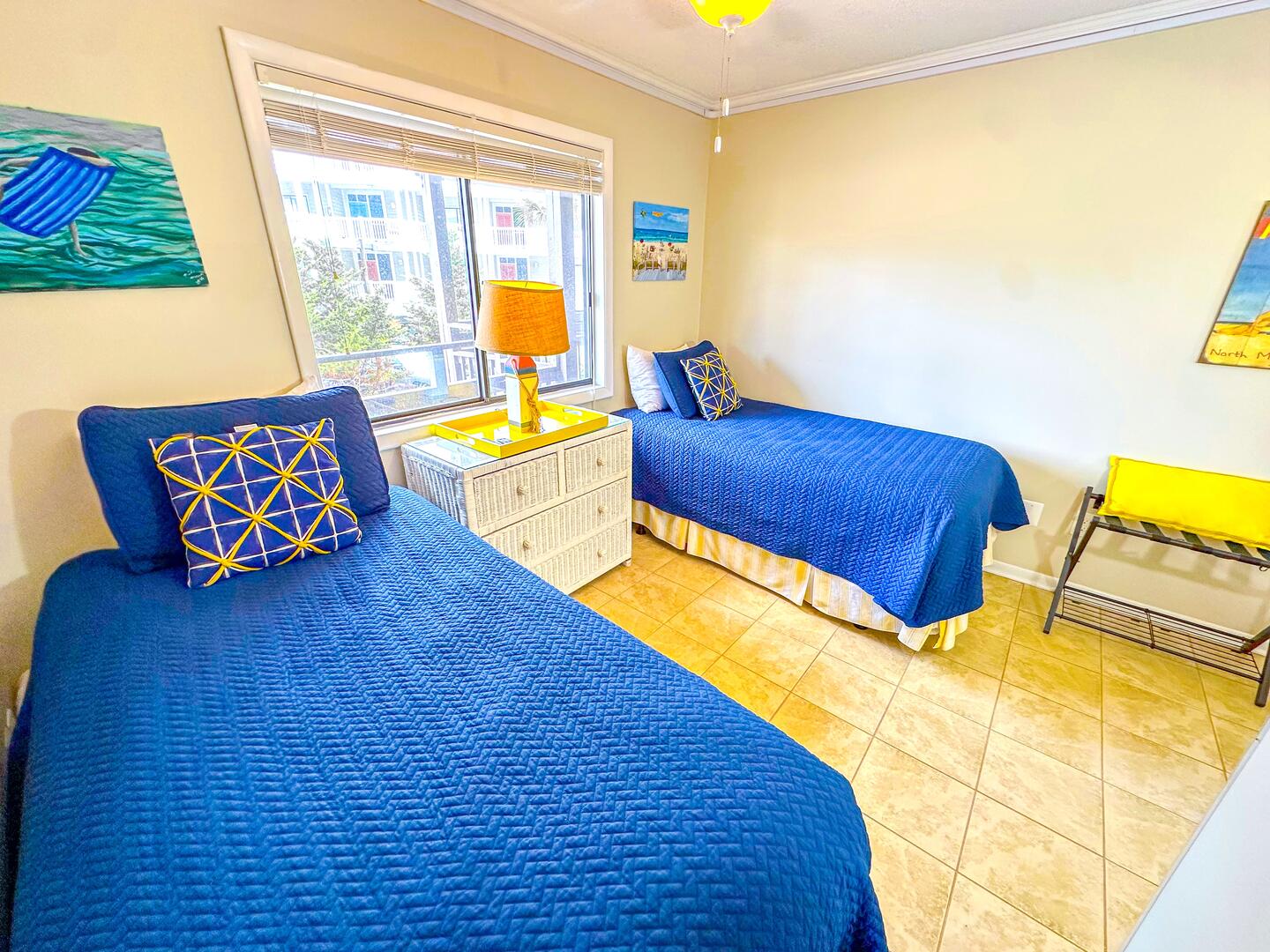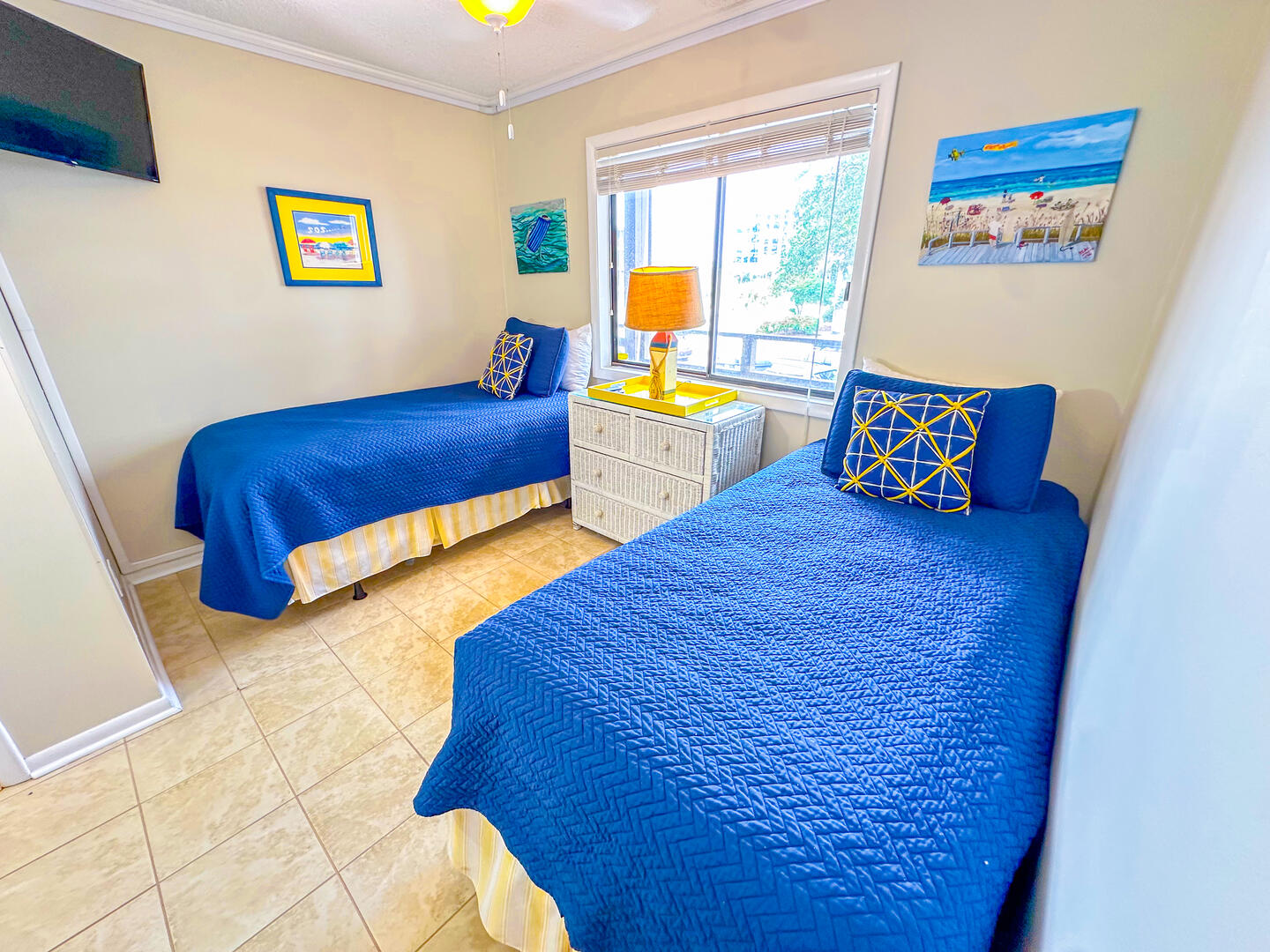 • Third Bedroom: Two twin beds + flat-screen TV + ensuite half bathroom