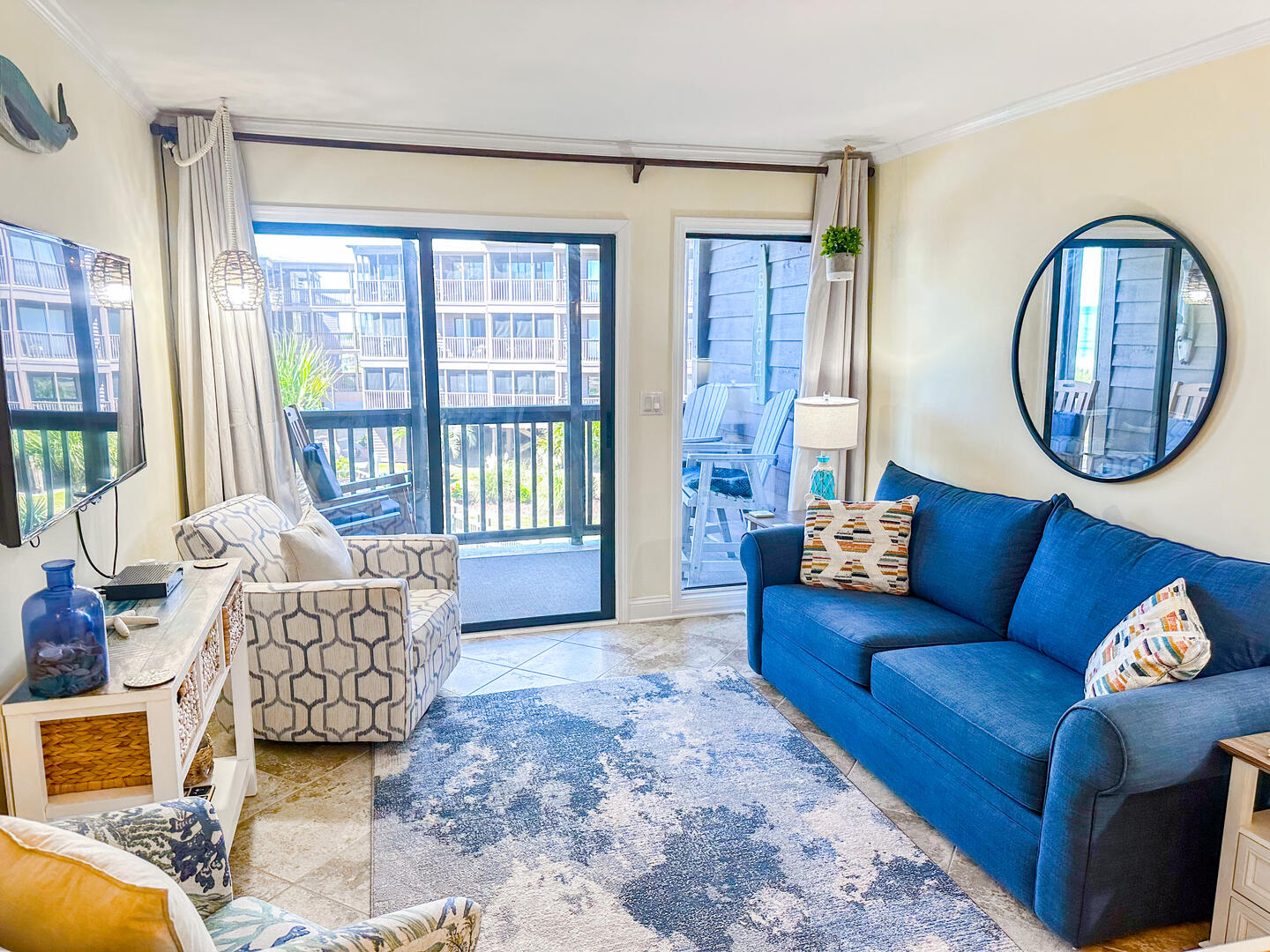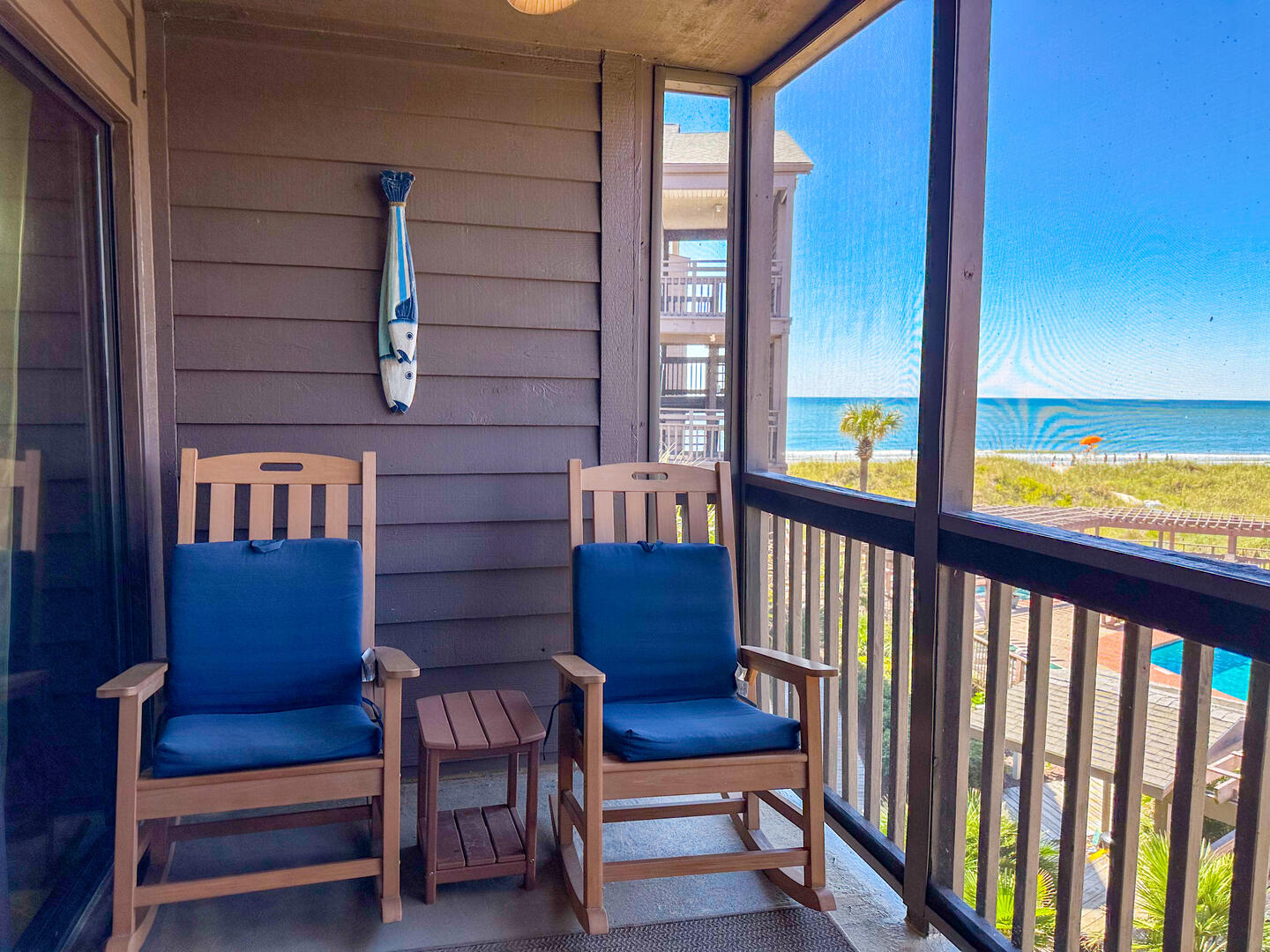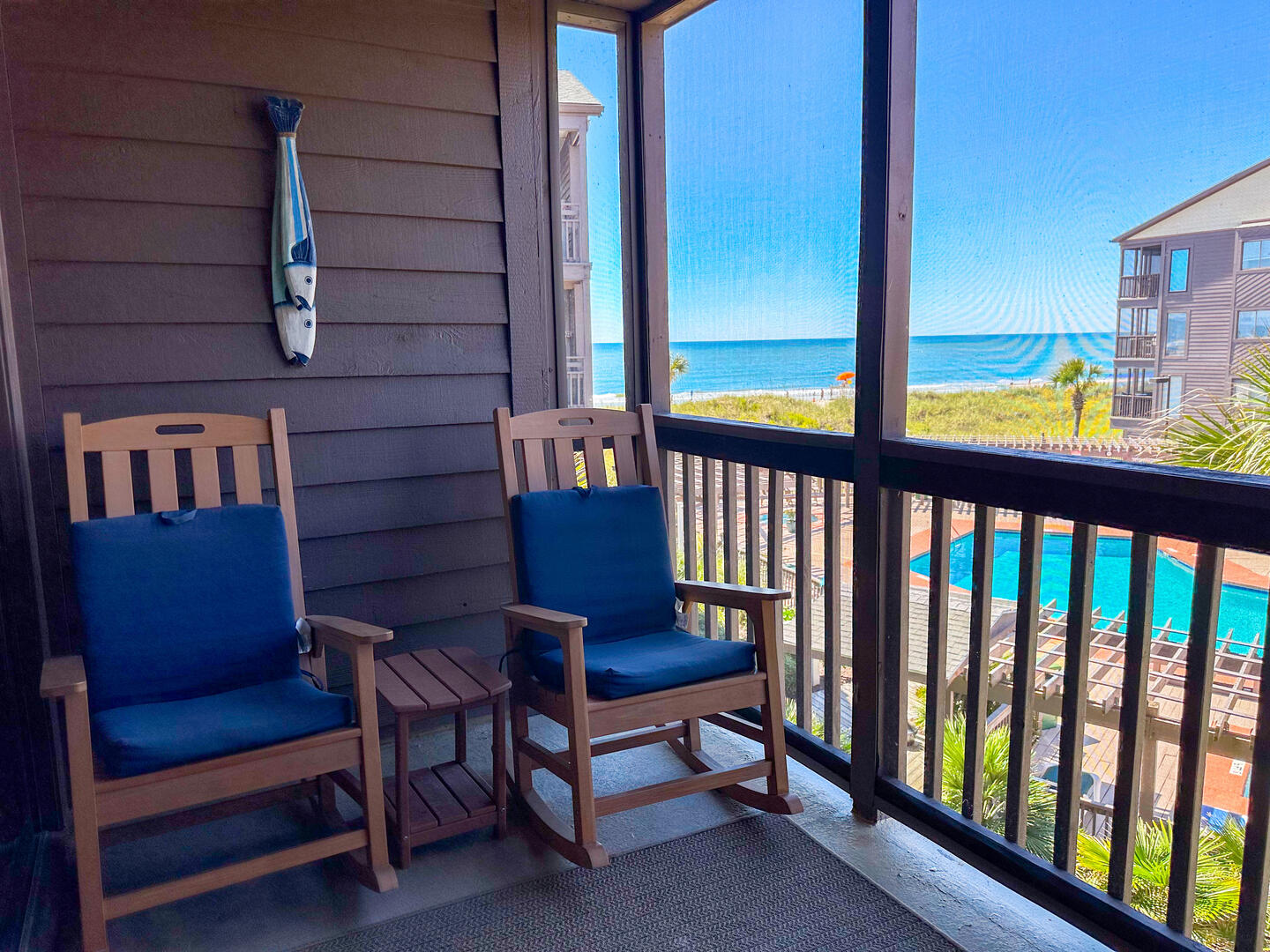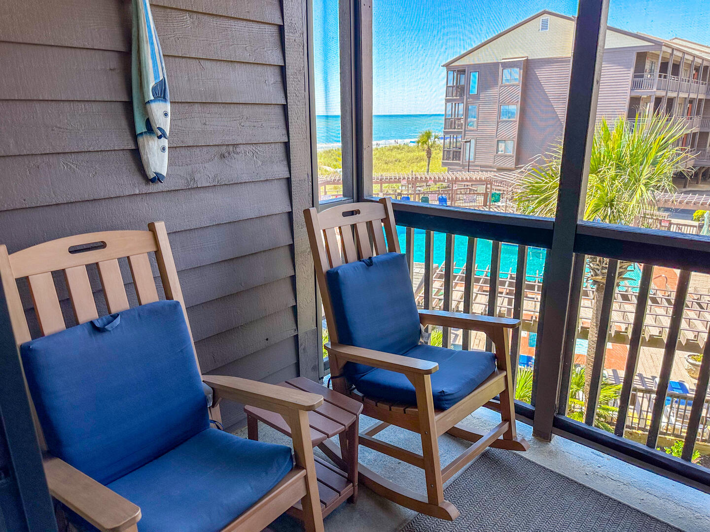 Updated 3BR, 2.5BA oceanview condo at Tilghman Beach & Racquet Club 219. Screened balconies, modern finishes, pools, steps from beach & Main Street attractions.