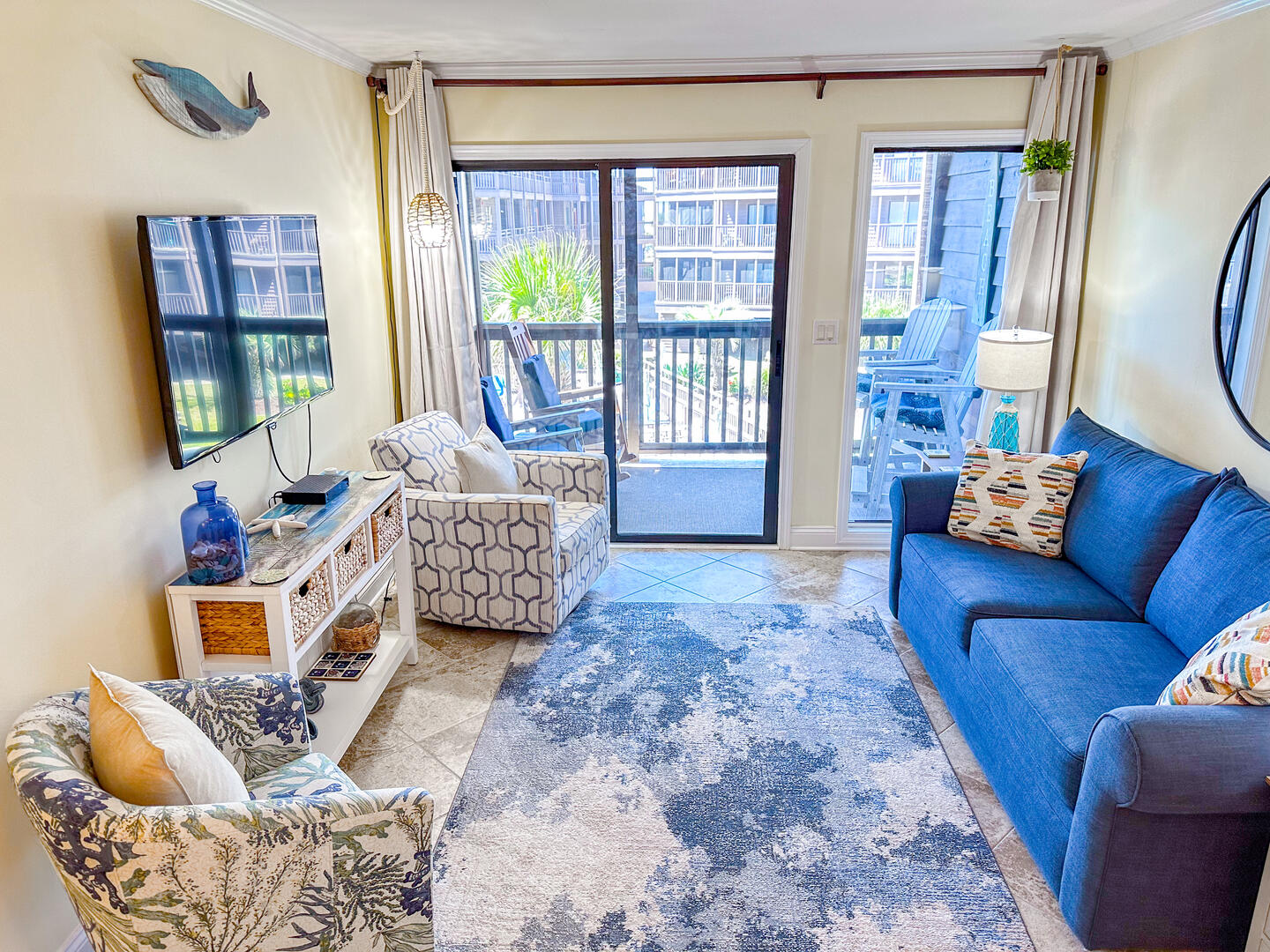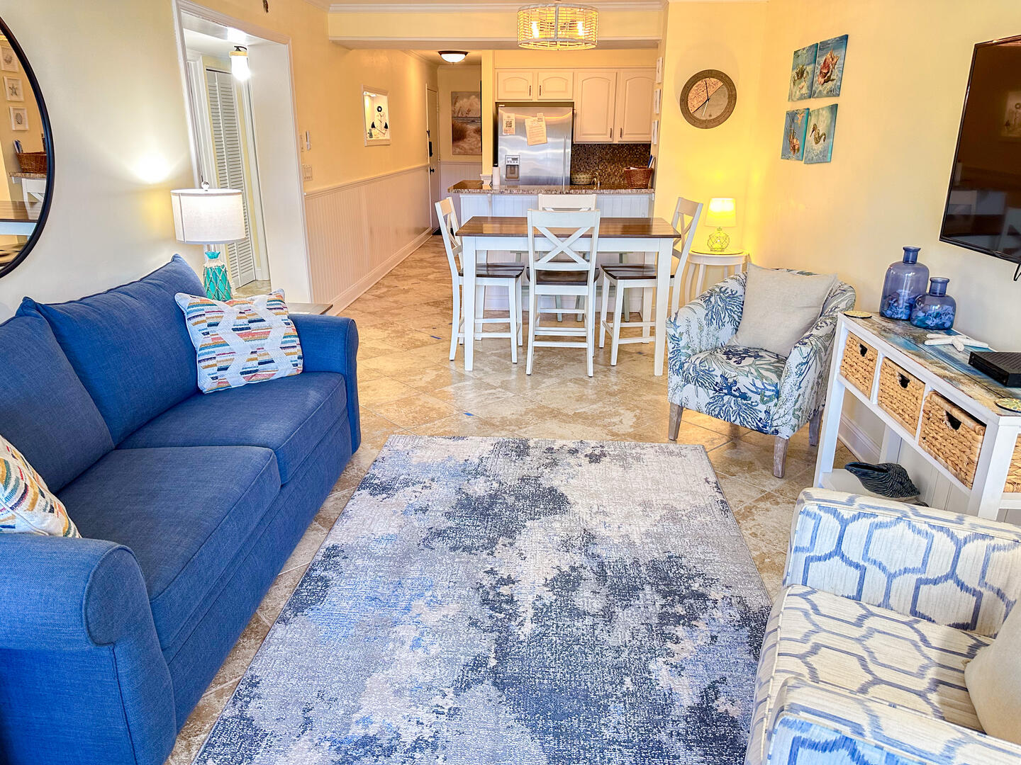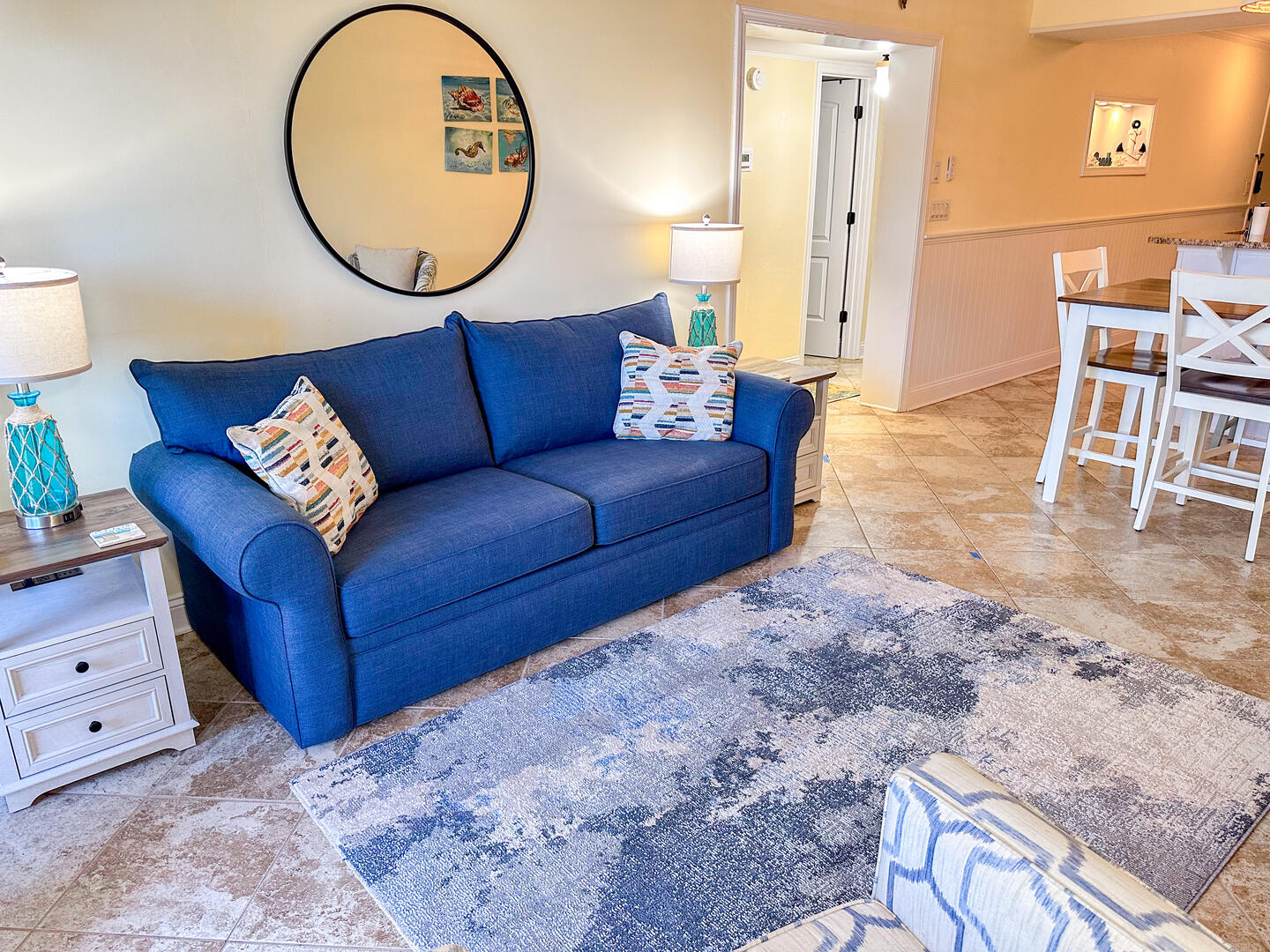 • Living Room: Full sleeper sofa (linens not included) + access to screened-in balcony