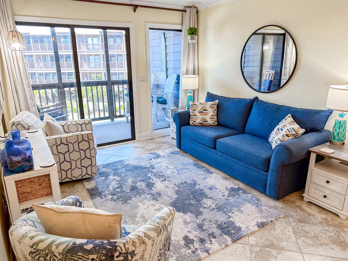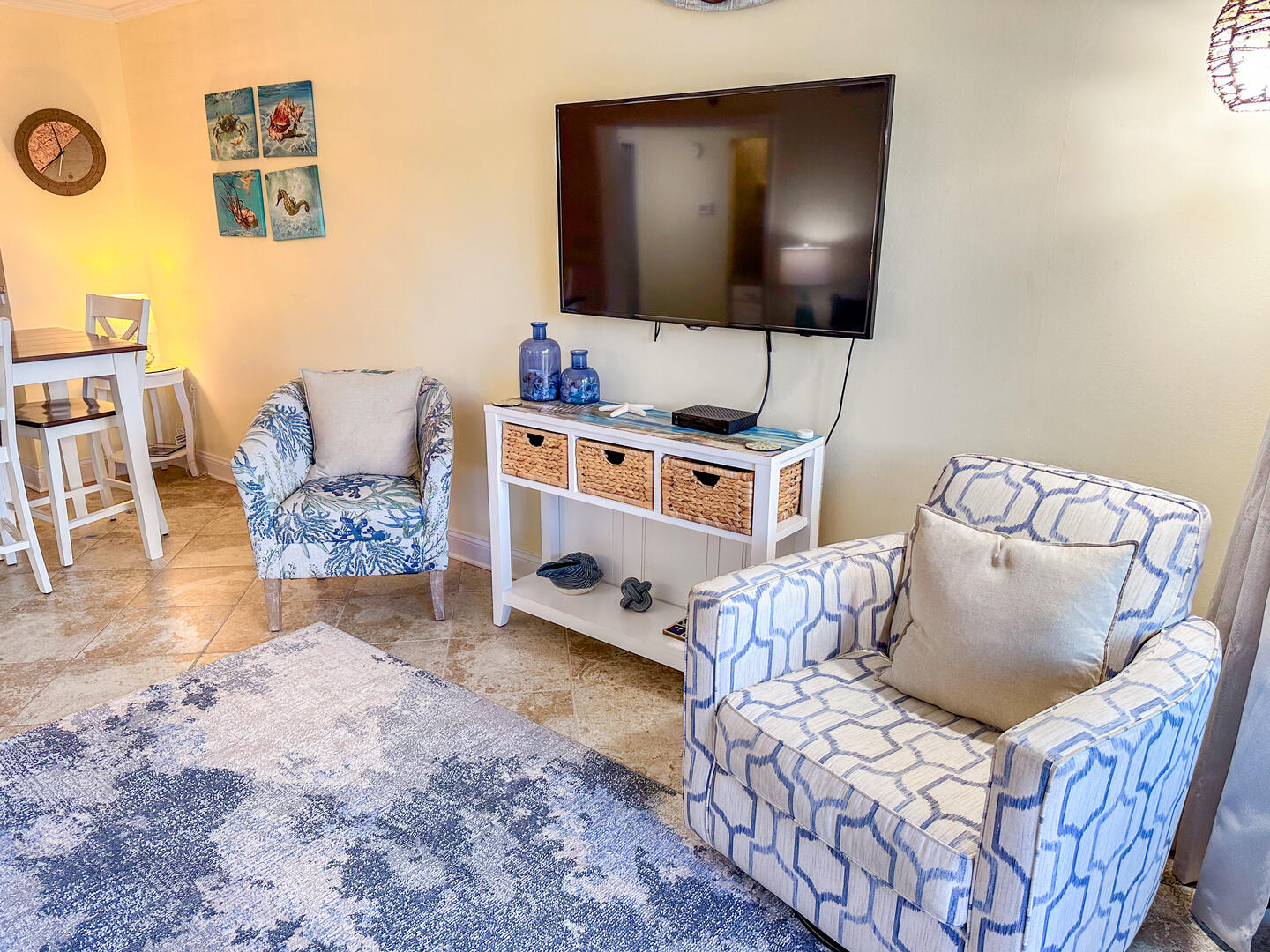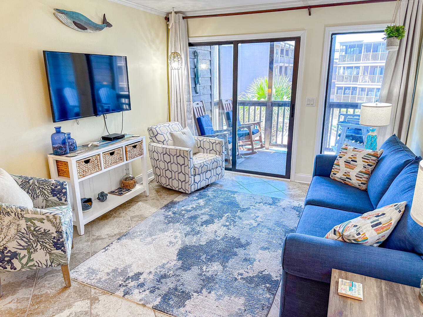 • Living Room: Full sleeper sofa (linens not included) + access to screened-in balcony