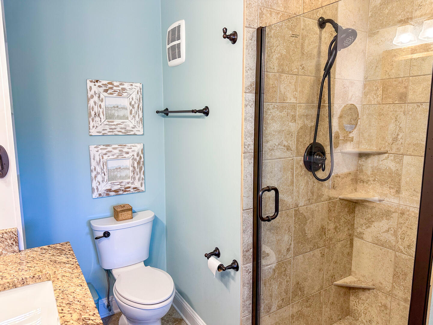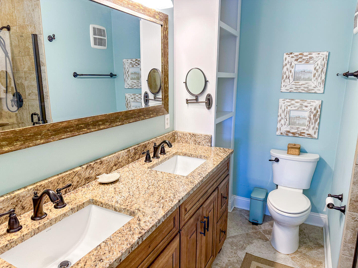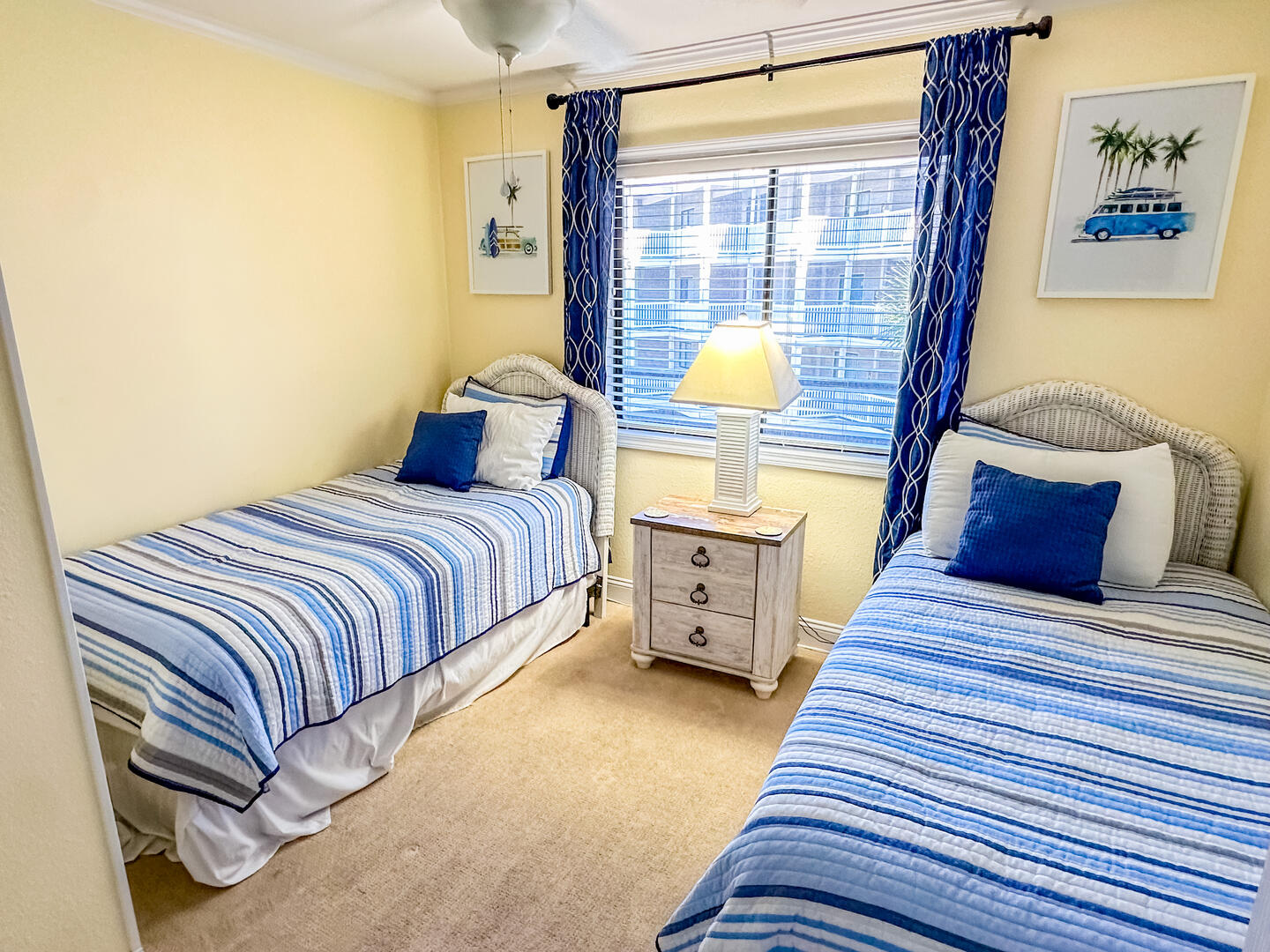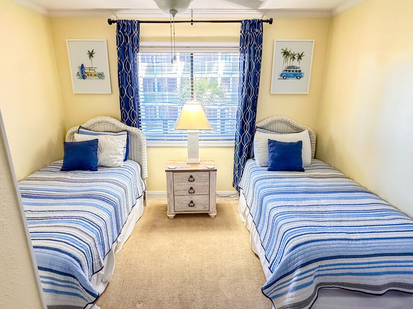 • Bedroom 2: Two Twin beds + flat-screen TV + en-suite half bath