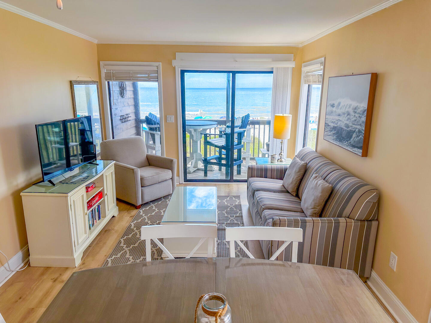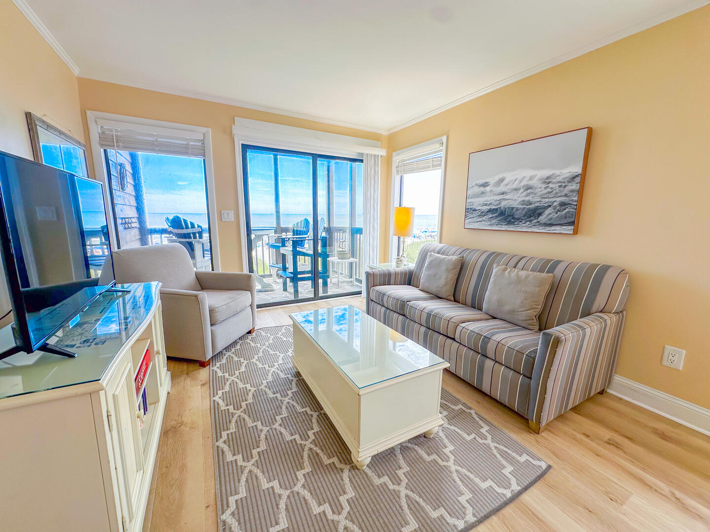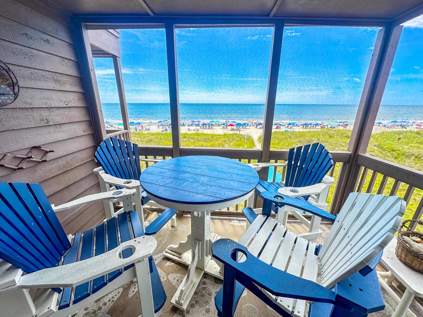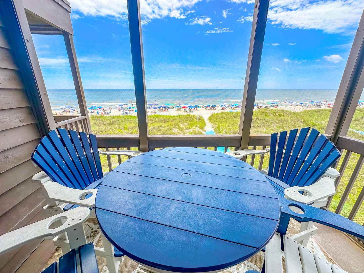 Modern 3BR, 2.5BA oceanfront corner condo at Tilghman Beach & Racquet Club 221. Two screened balconies, updated kitchen, pools, steps from beach & Main Street.