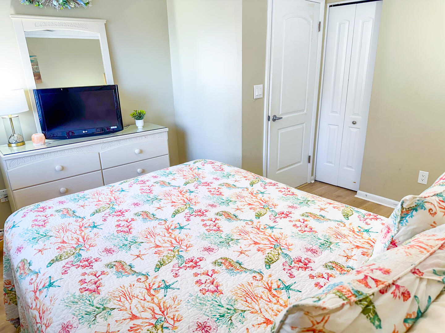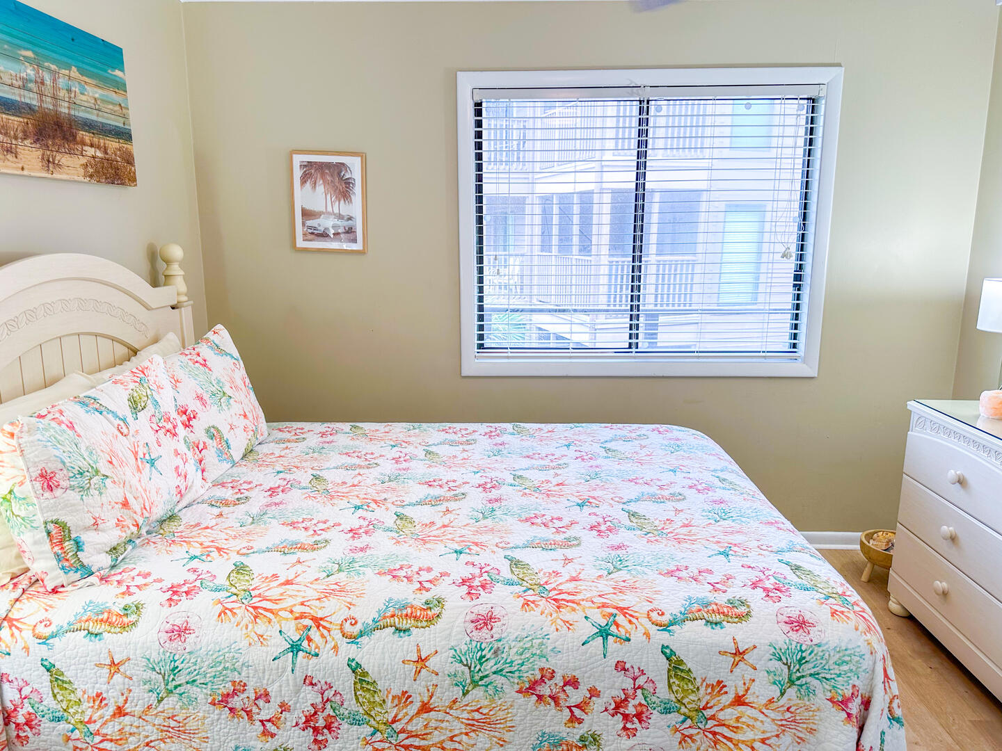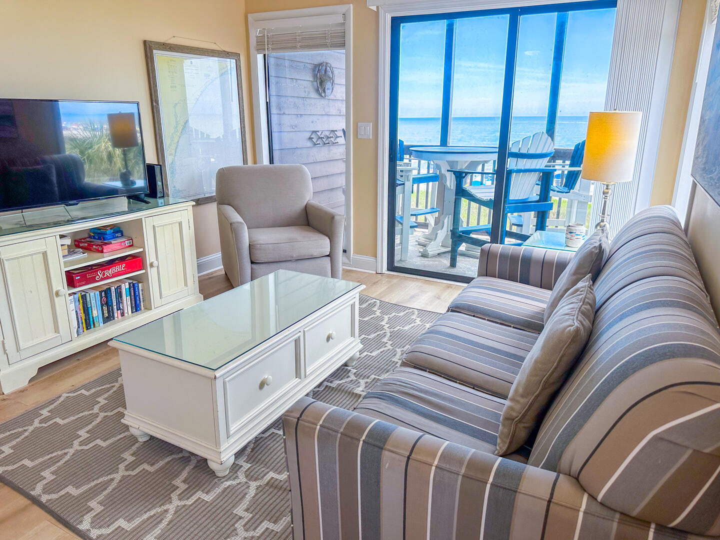 Relax in the living area with a flat-screen TV, Queen sleeper sofa, and a cozy writing nook with ocean views. The fully equipped kitchen includes a dishwasher and microwave, and the screened entry vestibule provides storage along with a full-size washer/dryer for your convenience. Located just a short walk from Main Street, guests can easily enjoy dining, shopping, entertainment, championship golf, outlet shopping, aquariums, live shows, and water sports.Bedrooms & Baths: