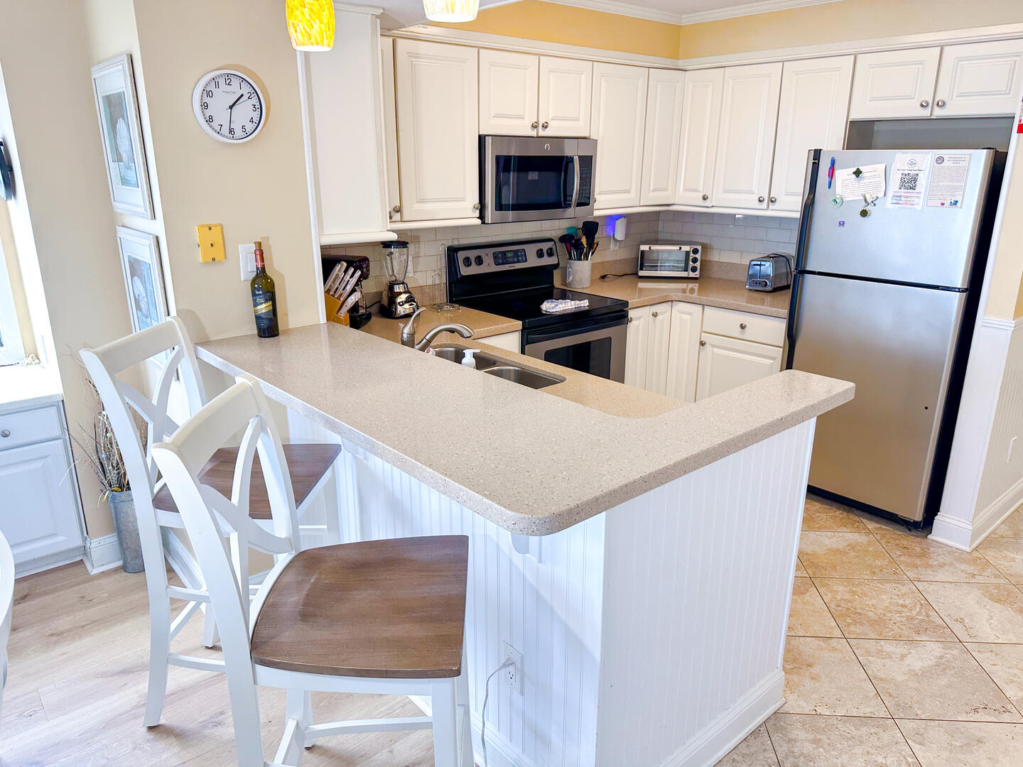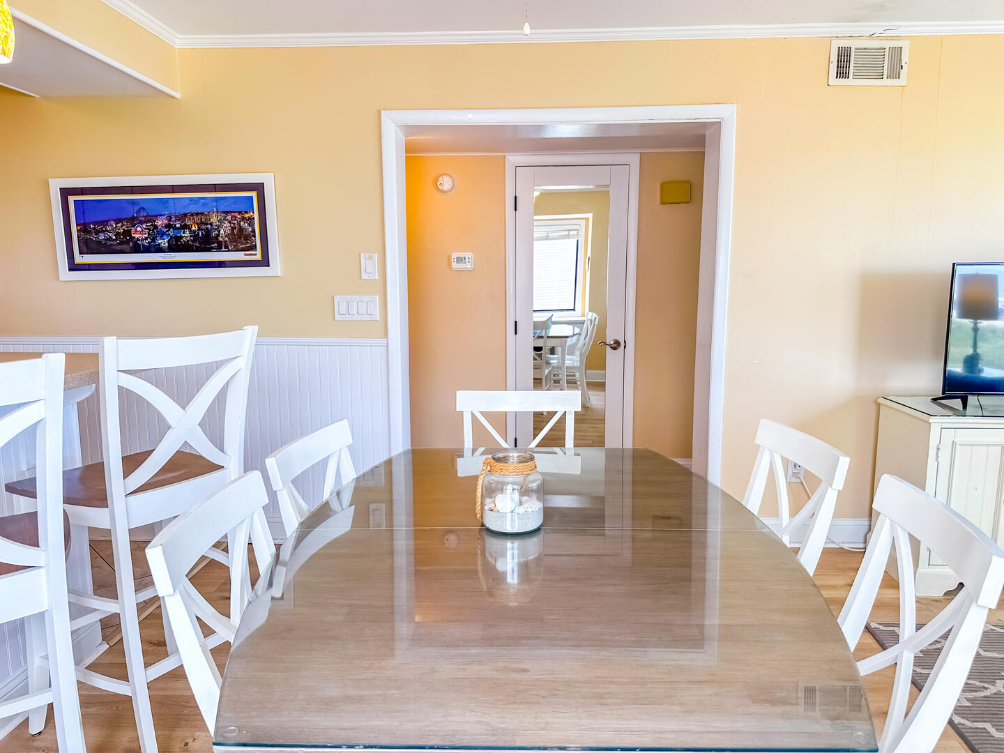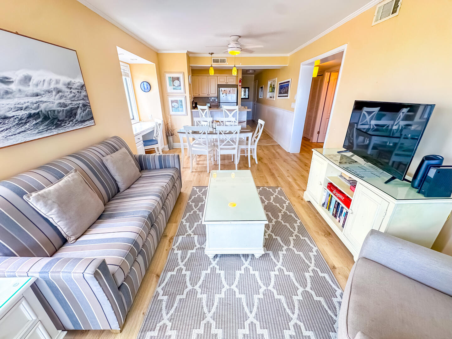 Relax in the living area with a flat-screen TV, Queen sleeper sofa, and a cozy writing nook with ocean views. The fully equipped kitchen includes a dishwasher and microwave, and the screened entry vestibule provides storage along with a full-size washer/dryer for your convenience. Located just a short walk from Main Street, guests can easily enjoy dining, shopping, entertainment, championship golf, outlet shopping, aquariums, live shows, and water sports.Bedrooms & Baths: