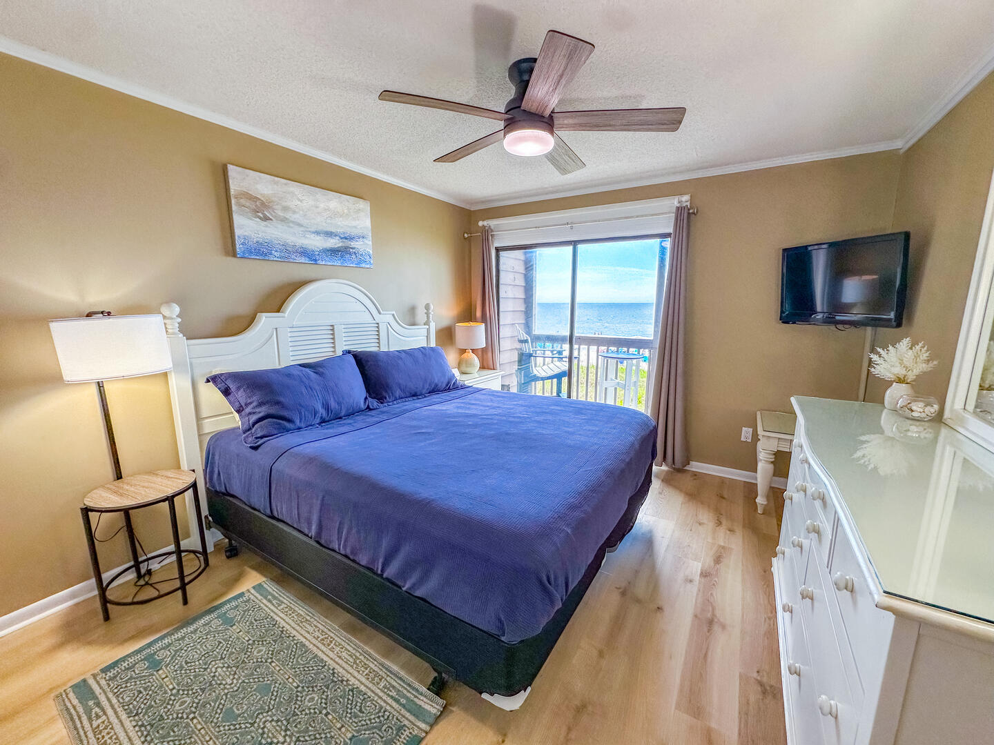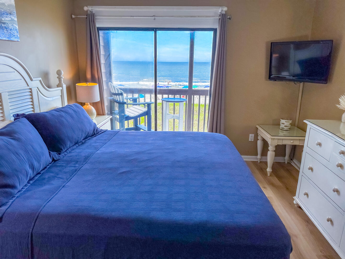 • Bedroom 1: King bed + balcony access + flat-screen TV + private bath
