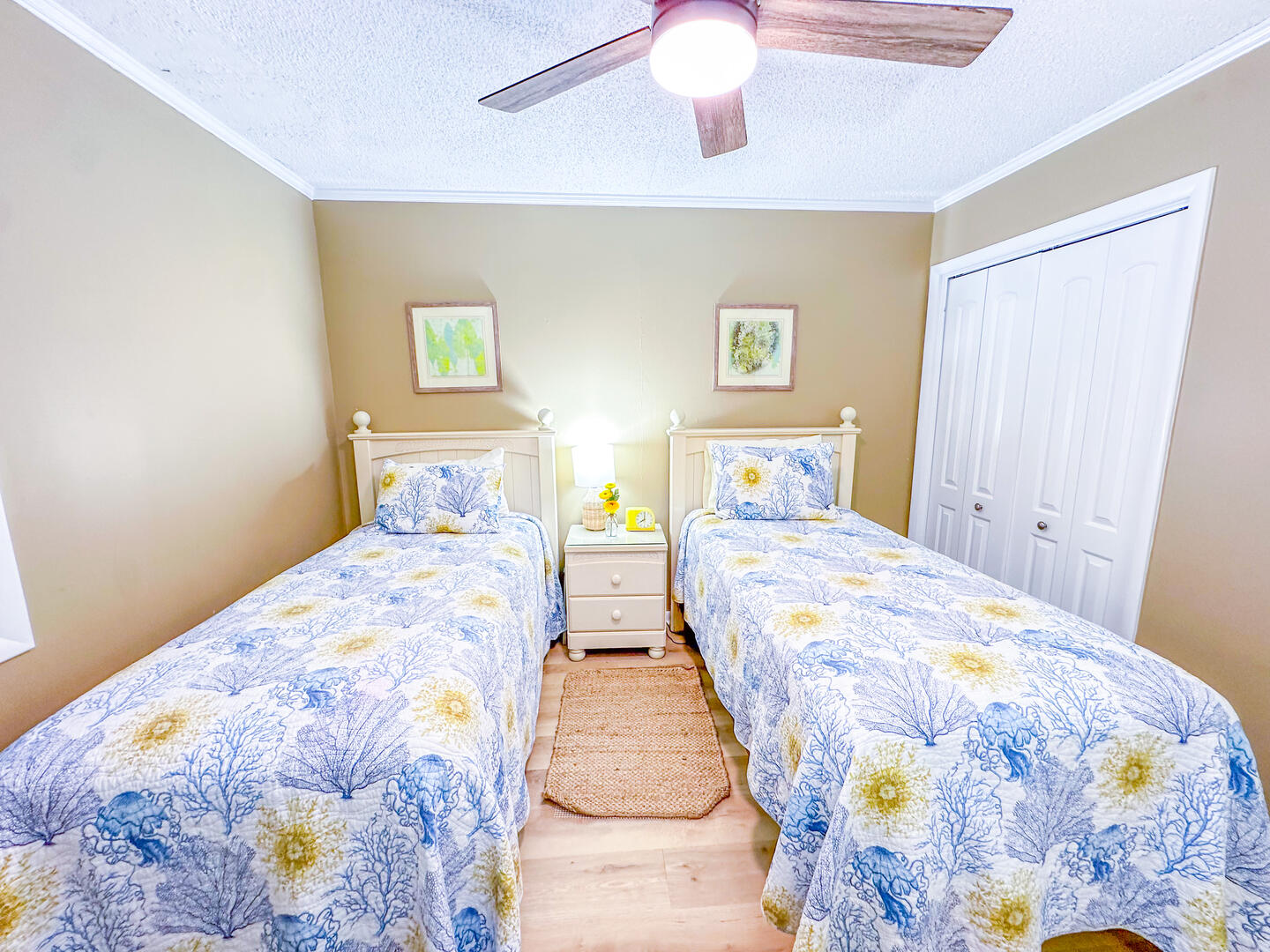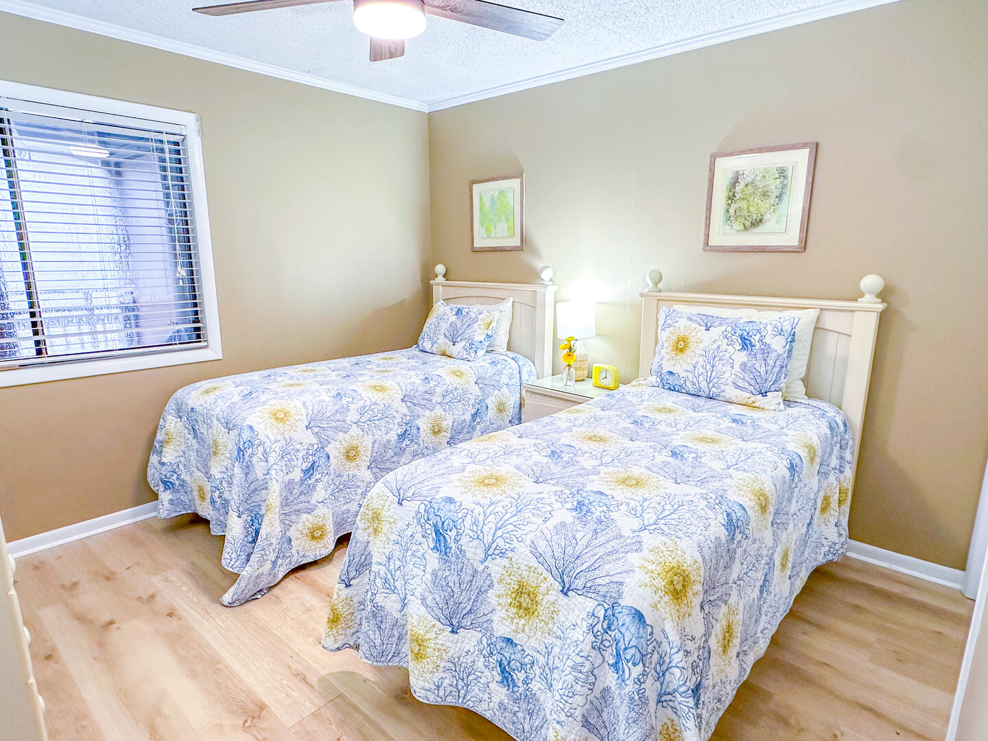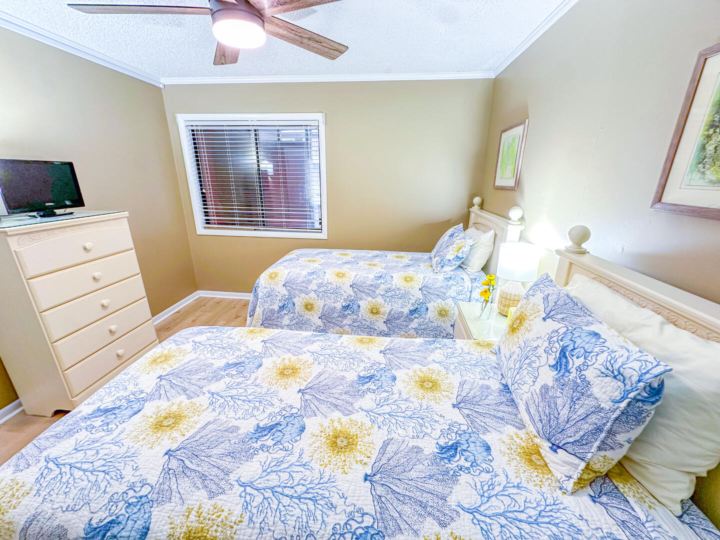 • Bedroom 3: Two Twin beds + ceiling fan + flat-screen TV