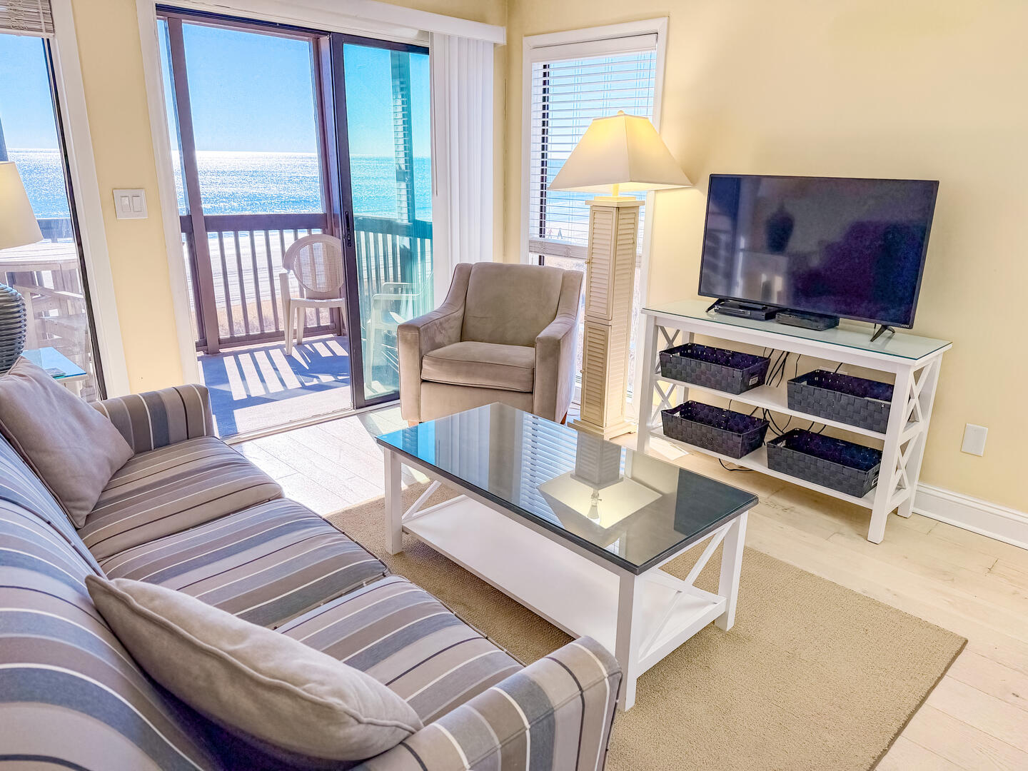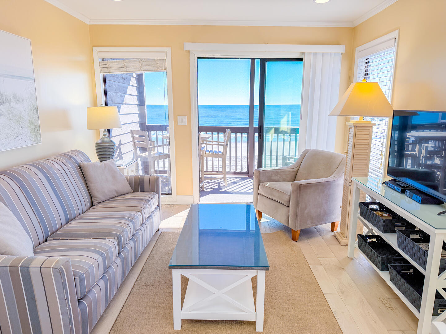 • Living Room: Queen sleeper sofa (linens not included) + private oceanfront balcony with panoramic ocean views