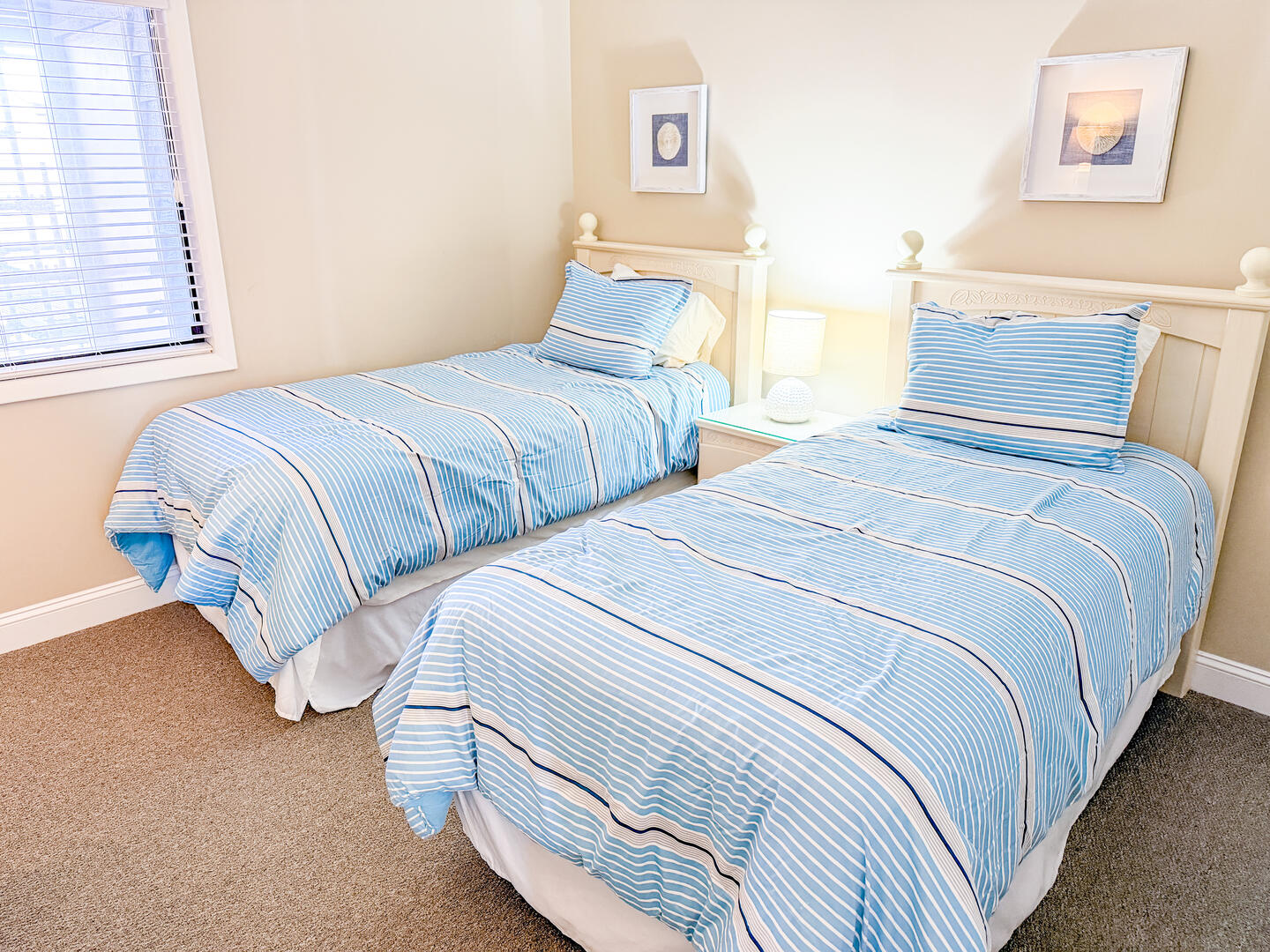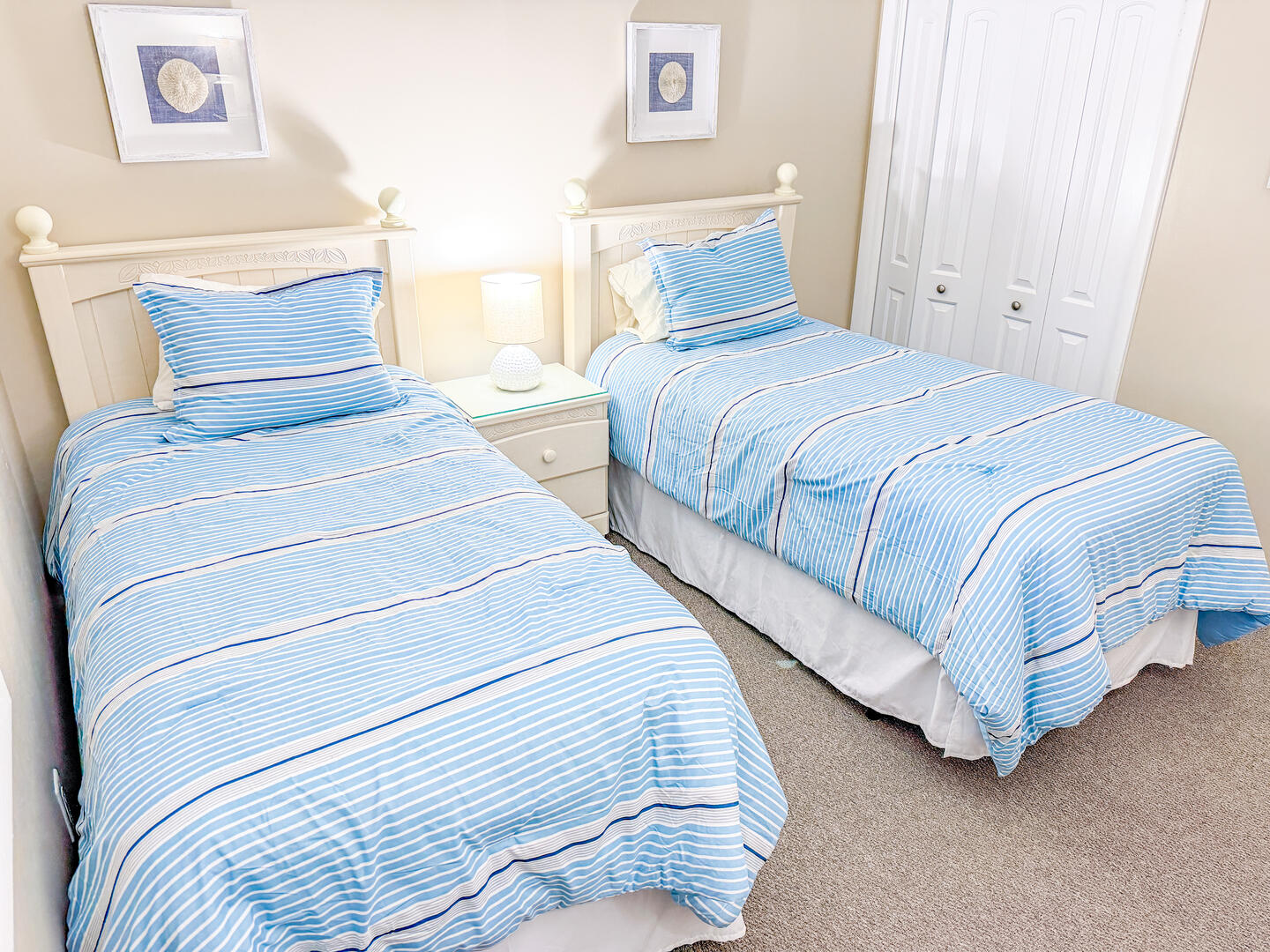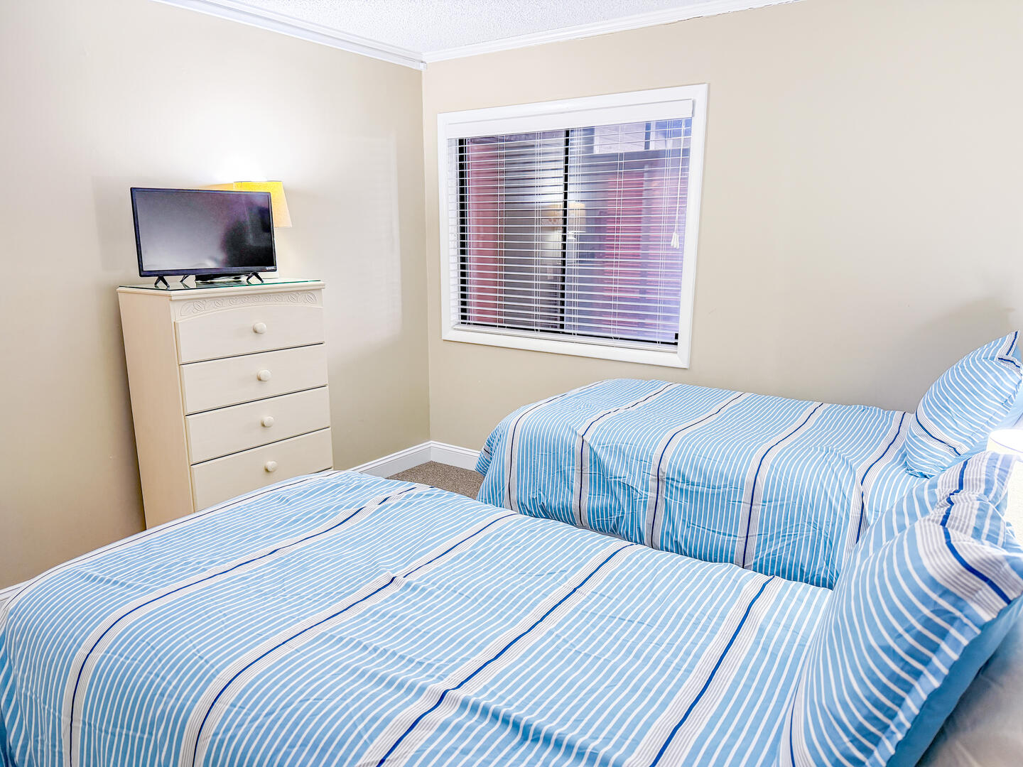 • Bedroom 3: Two twin beds + flat-screen TV + full guest bathroom nearby