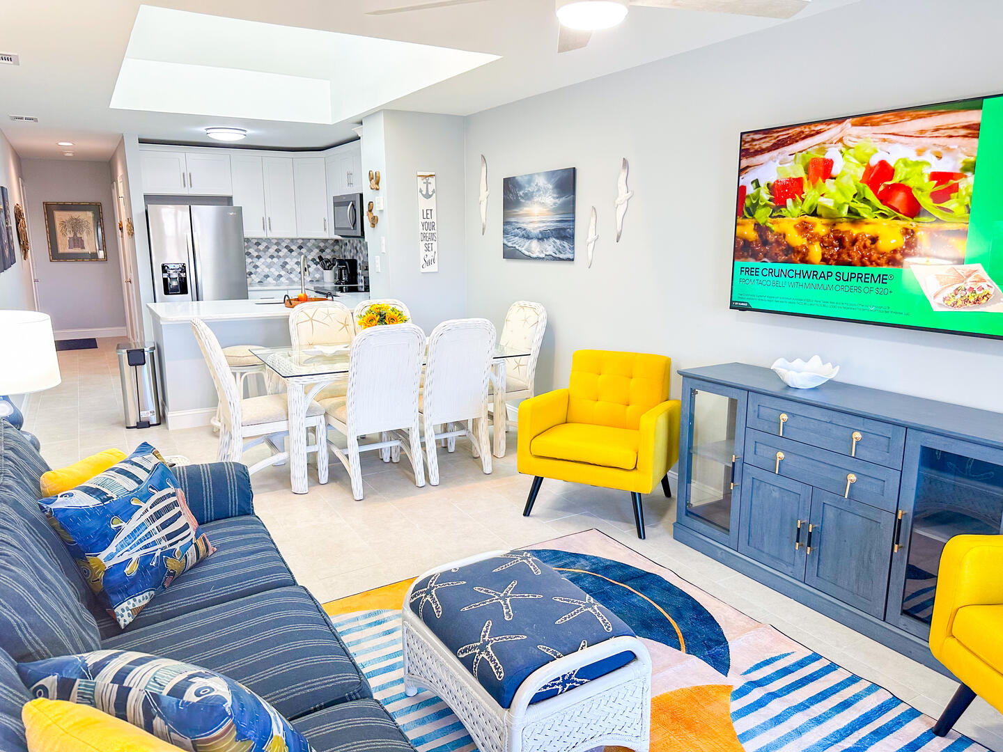 Stay steps from the beach in this updated 3BR condo at Tilghman Beach & Racquet Club, book your stay now!