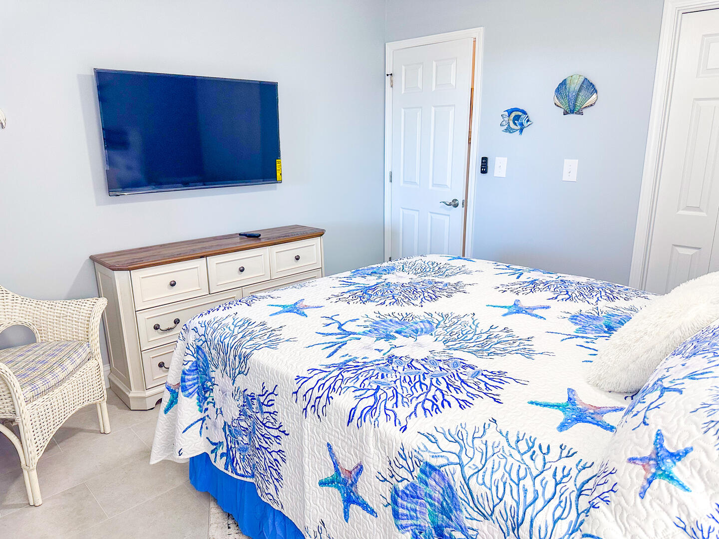 Step into a bright, open living area featuring a flat-screen TV and access to a private balcony, ideal for morning coffee or evening relaxation. The master suite offers a king bed, flat-screen TV, ceiling fan, private balcony access, and a luxurious en suite bathroom.Bedrooms & Baths: