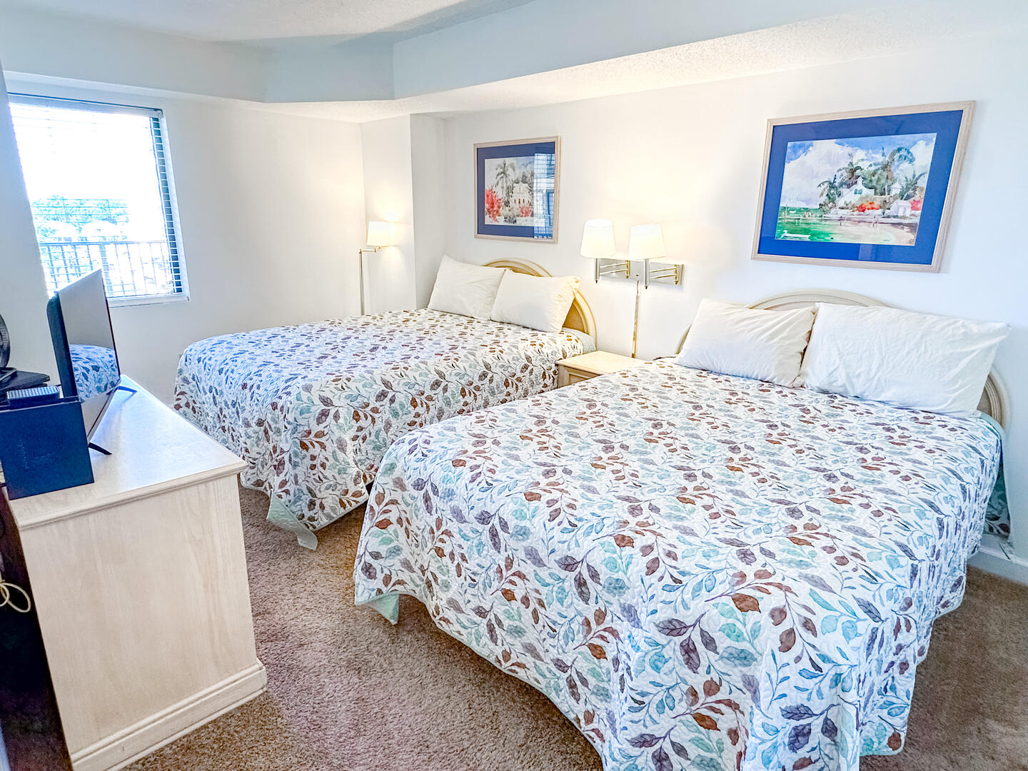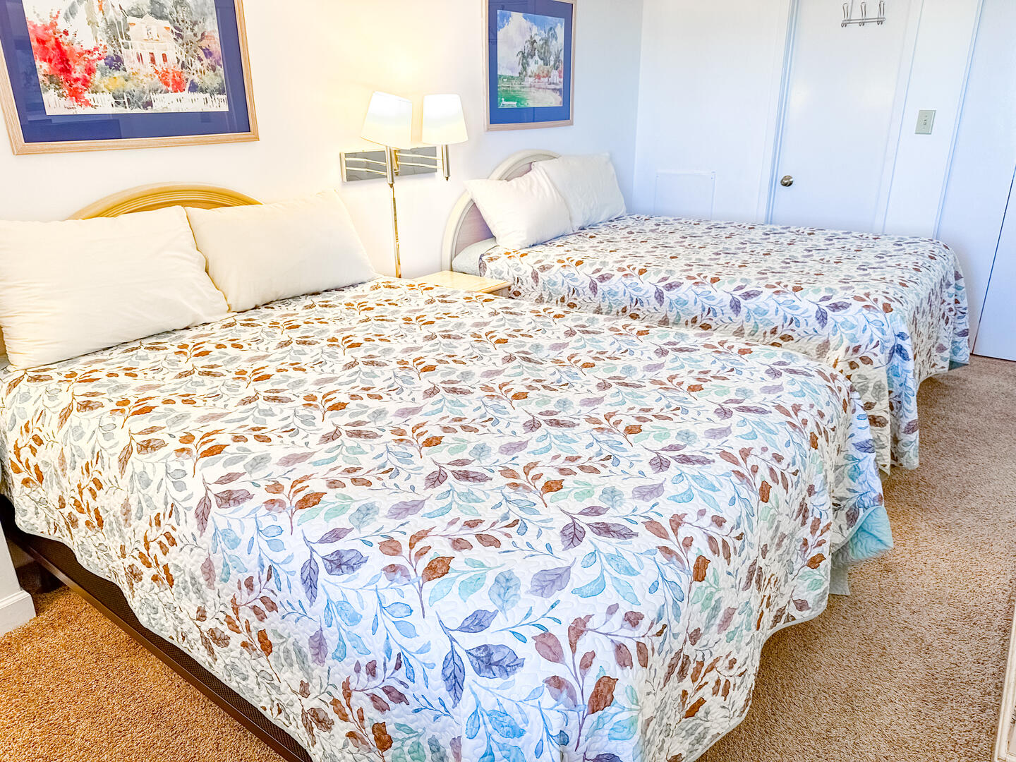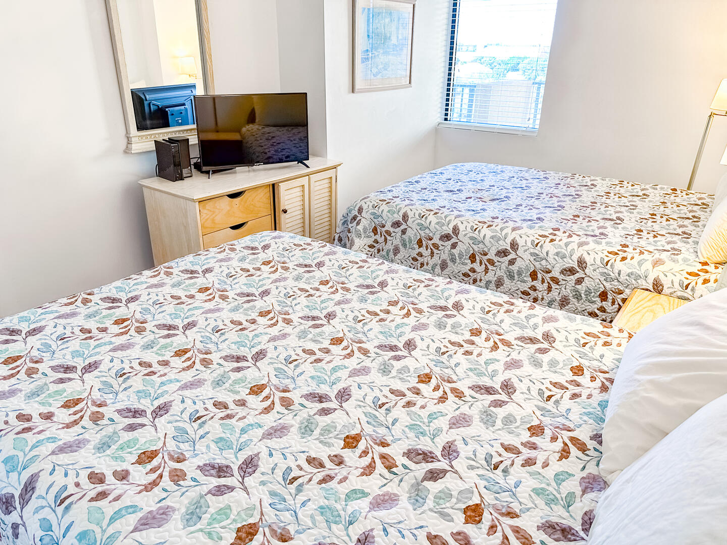 • Bedroom: Two queen beds + flat-screen TV + private master bathroom with garden tub & separate shower