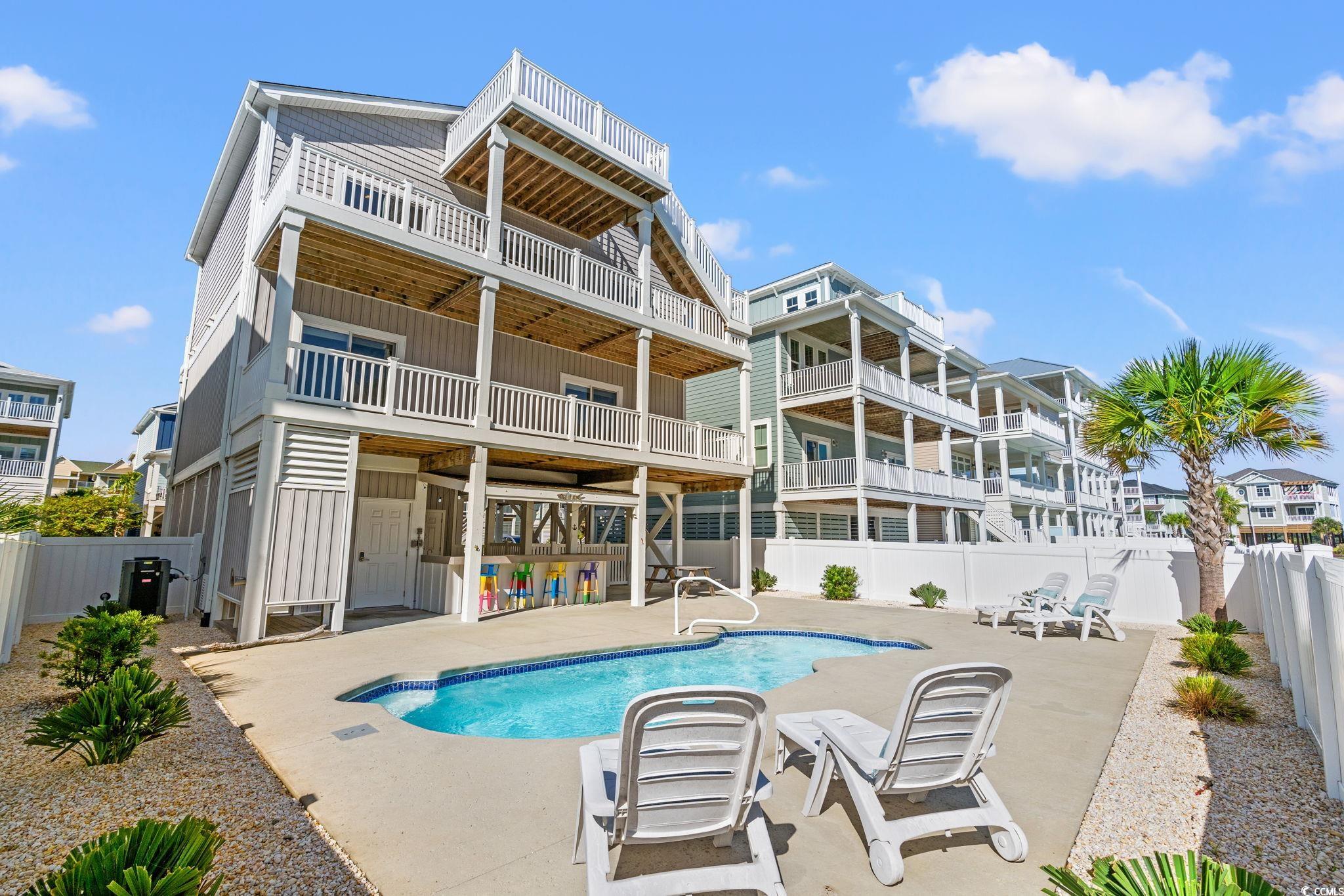 Stunning 4BR/4.5BA Ocean Isle Beach Island Home - Private Ensuites, Heated Saltwater Pool & Steps to the Ocean! Welcome to your dream coastal retreat! This immaculate single-family home on Ocean Isle Beach in the Islander Resort on the West End of OIB offers luxury, comfort, and functionality—all just a short block from the ocean. Each bedroom features a private ensuite bath and its own private balcony, providing peaceful retreats for family and guests. The main living area is perched on the top floor, showcasing vaulted ceilings, an abundance of natural light through large glass sliding doors to seamlessly flow onto the covered deck overlooking the fenced backyard, saltwater pool, and expansive ocean views. Entertain in style with a dedicated outdoor entertaining area, outdoor shower, and a maintenance-free landscaped yard with irrigation for plants around pool. Inside, enjoy waterproof luxury LVP flooring throughout, an interior elevator for convenience, and a chef's kitchen with stainless steel appliances, quartz countertops, and crisp white soft-close cabinetry. Whether you're seeking a primary residence, vacation home, or rental investment, this property blends coastal charm with modern elegance — and it's just a short stroll to the beach. Additional Features: This home is designed for luxury and convenience, featuring a Tesla car charger in the garage, a heated saltwater pool, an interior elevator connecting all levels, a 9.1 TV surround system, and dimmable recessed lighting throughout. And yes, it is being sold furnished! Enjoy ample storage with a large closet for beach accessories, and take in breathtaking views from the Captain's Perch, the perfect spot to watch the stunning Ocean Isle Beach sunrises and sunsets. As part of the Islander Resort, community amenities include pickleball, tennis and basketball. You also have the option to purchases an annual membership to the Isles Beach Club with access to an oceanfront pool. This southern facing island provides endless recreational opportunities with lots to do on the island year round. Don't miss this rare opportunity to own on Ocean Isle - schedule your private showing today!