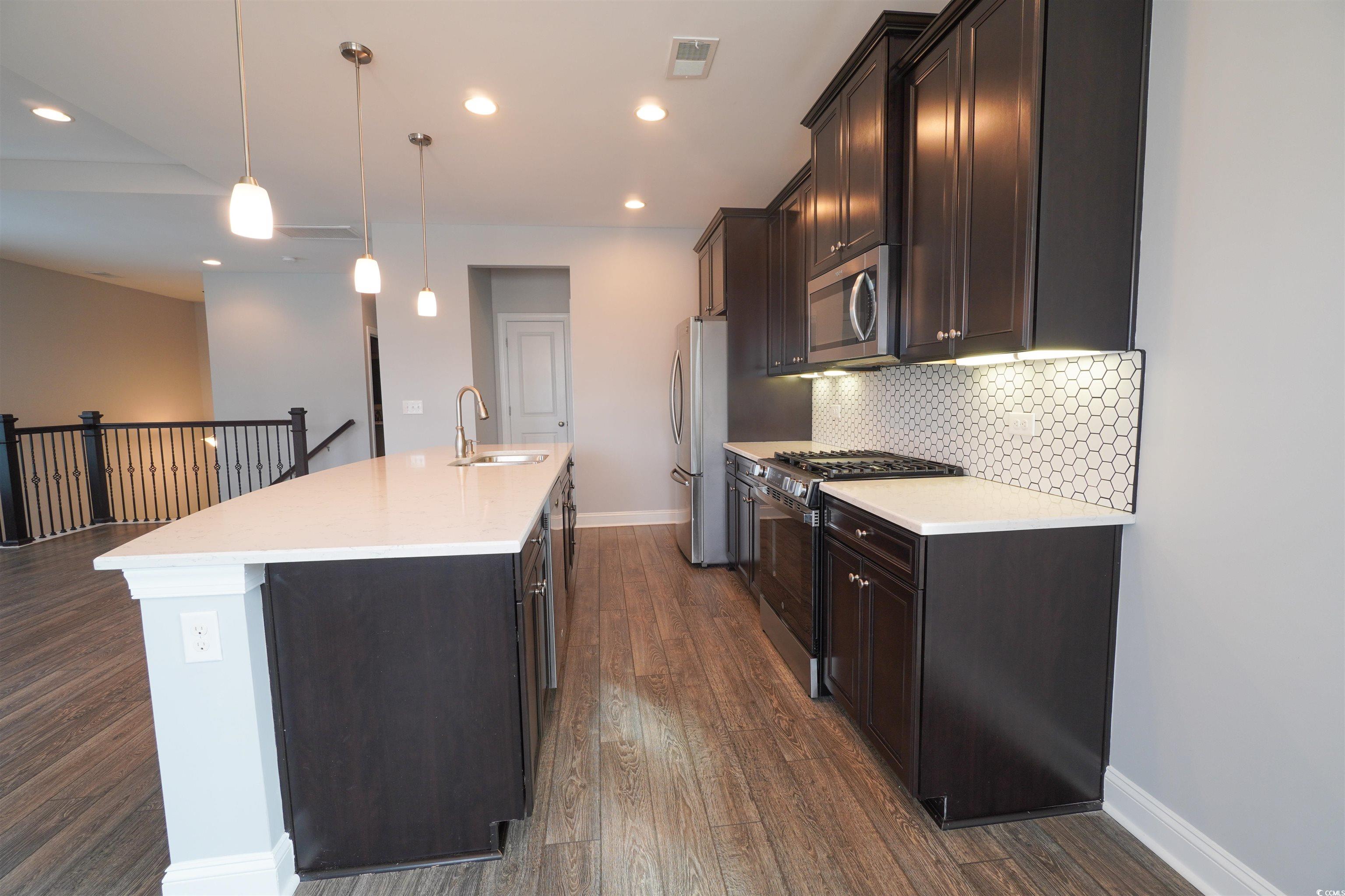 Coastal Charm on the pond in Wilderness Pointe. Welcome to 100 Splendor Circle in Murrells Inlet. This beautiful 3 bedroom, 2.5 bath split level home sits on a peaceful pond and offers flexible living spaces for comfort and style. The ground floor features an added living area, two bedrooms and a full bath, perfect for guests or family. Enjoy the peaceful covered porch complete with a swing overlooking the water. Upstairs, the open concept main living area includes the primary suite, a spacious living room with a fireplace, dining area, and a half bath. Step out onto the screened balcony and take in the tranquil pond views. This home features board and batten accent walls, a two-car garage, and practical design details with plenty of storage/ It blends clean lines with modern convenience, plus, it's location puts you just minutes away from all that Murrells Inlet has to offer, including dining, shopping and outdoor activities. For those who enjoy walking, Prince Creek offers plenty of sidewalks. The gated amenities at The Park at Prince Creek West features 2 pools, pickle ball, tennis, bocce, basketball and a nature trail.