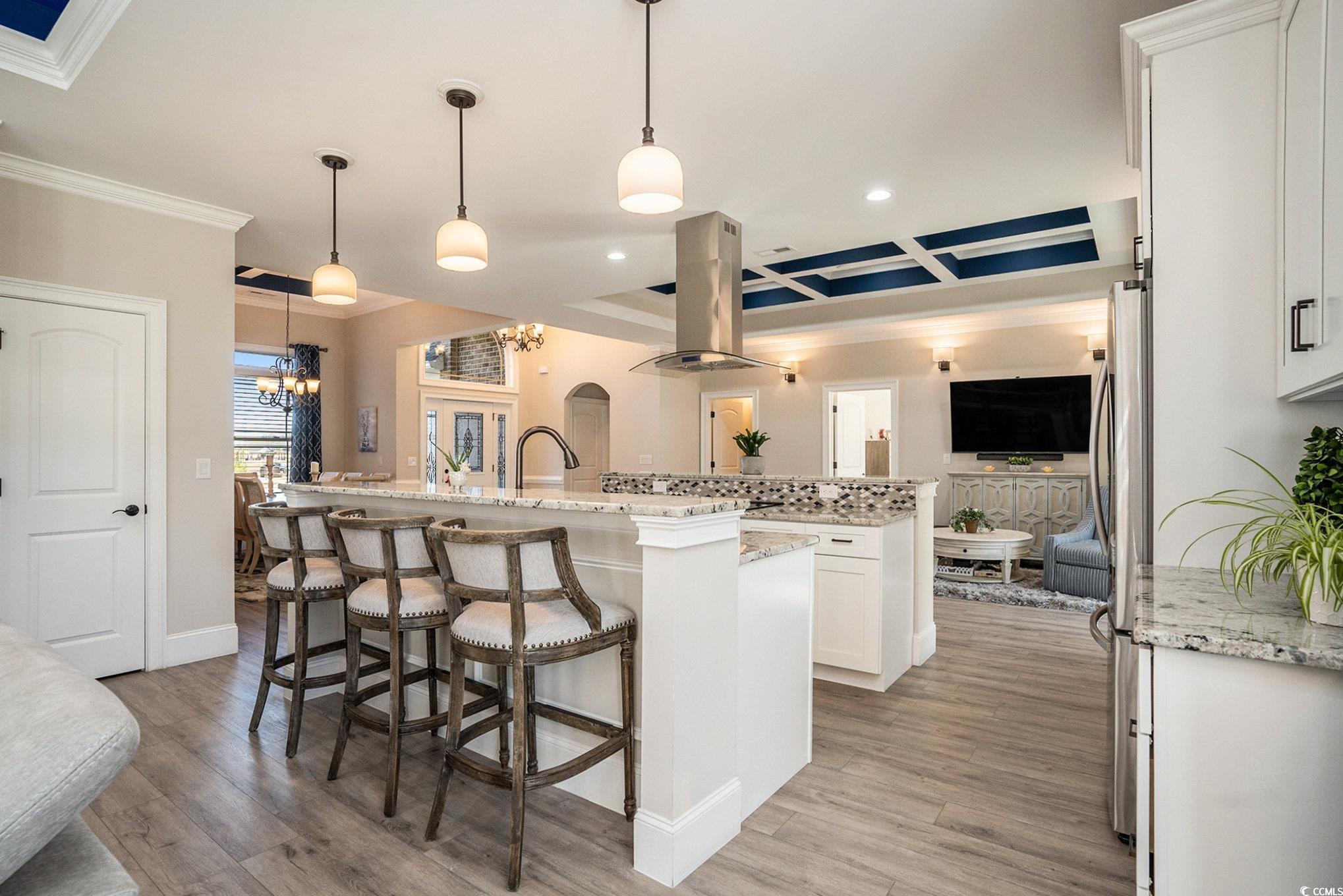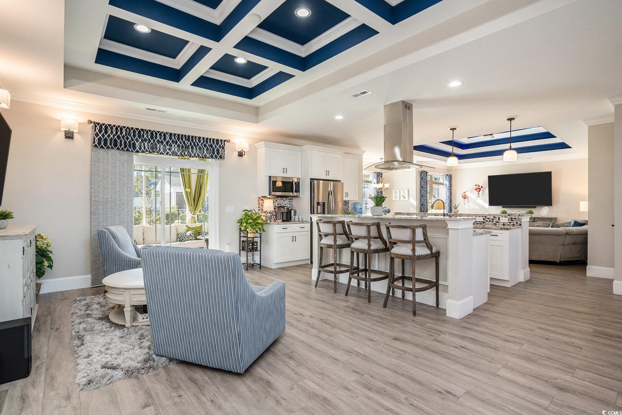 Welcome to this like new, custom built home in the prestigious Wild Wing Plantation, where refined luxury meets effortless coastal living. Perfectly tucked on a quiet cul-de-sac, this all brick residence offers timeless design, quality craftsmanship, and a setting that feels both private and elevated. Step inside and you’re immediately greeted by soaring coffered ceilings and elegant tray detailing that add architectural depth and sophistication throughout the main living spaces. The open floor plan flows beautifully for both everyday comfort and entertaining, featuring luxury vinyl plank flooring, custom lighting, and detailed molding that create a warm yet upscale ambiance. *Price reduced again 3/13/25!!**Priced to SELL!! At the heart of the home, the chef’s kitchen is designed to impress, complete with granite countertops, premium Samsung stainless appliances, breakfast bars on each side, and a sunlit breakfast nook overlooking the serene backyard. The owner’s suite is a true retreat, offering a cozy sitting area, dual walk-in closets, and a spa inspired bath with dual vanities, a whirlpool tub, and a beautifully tiled walk-in shower. Three additional spacious bedrooms, a formal dining room, a generous laundry room, and a side load insulated two-car garage complete the interior. Outdoor living is just as inviting, with a screened porch perfect for morning coffee or evening gatherings. Residents of Wild Wing Plantation enjoy resort style amenities including multiple pools, tennis and basketball courts, a playground, a community day dock for boating enthusiasts, and access to two award winning golf courses with practice facilities, pro shop, and on-site dining. This is more than a home — it’s a lifestyle defined by space, elegance, and the best of coastal Carolina living.