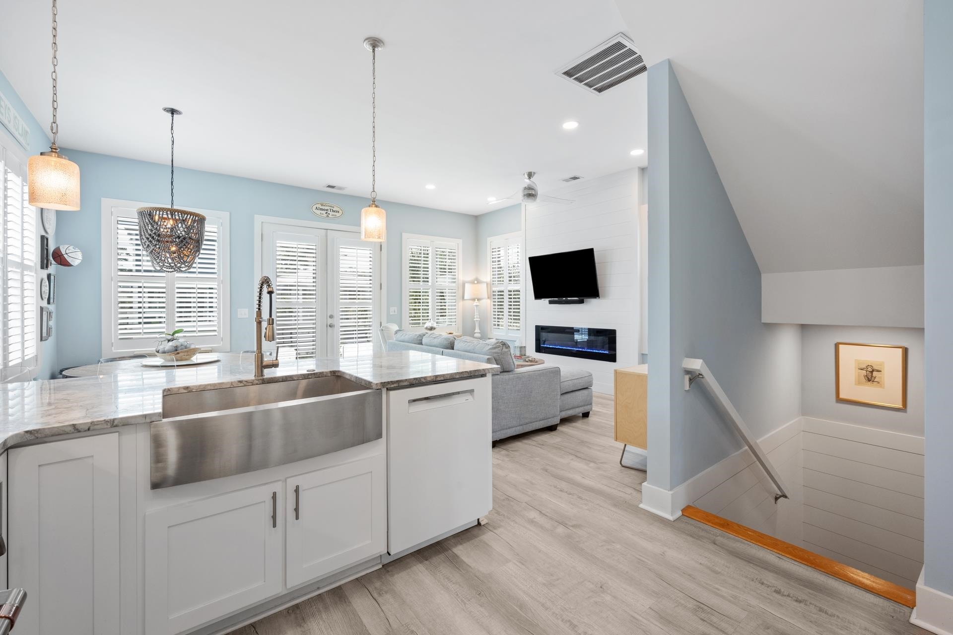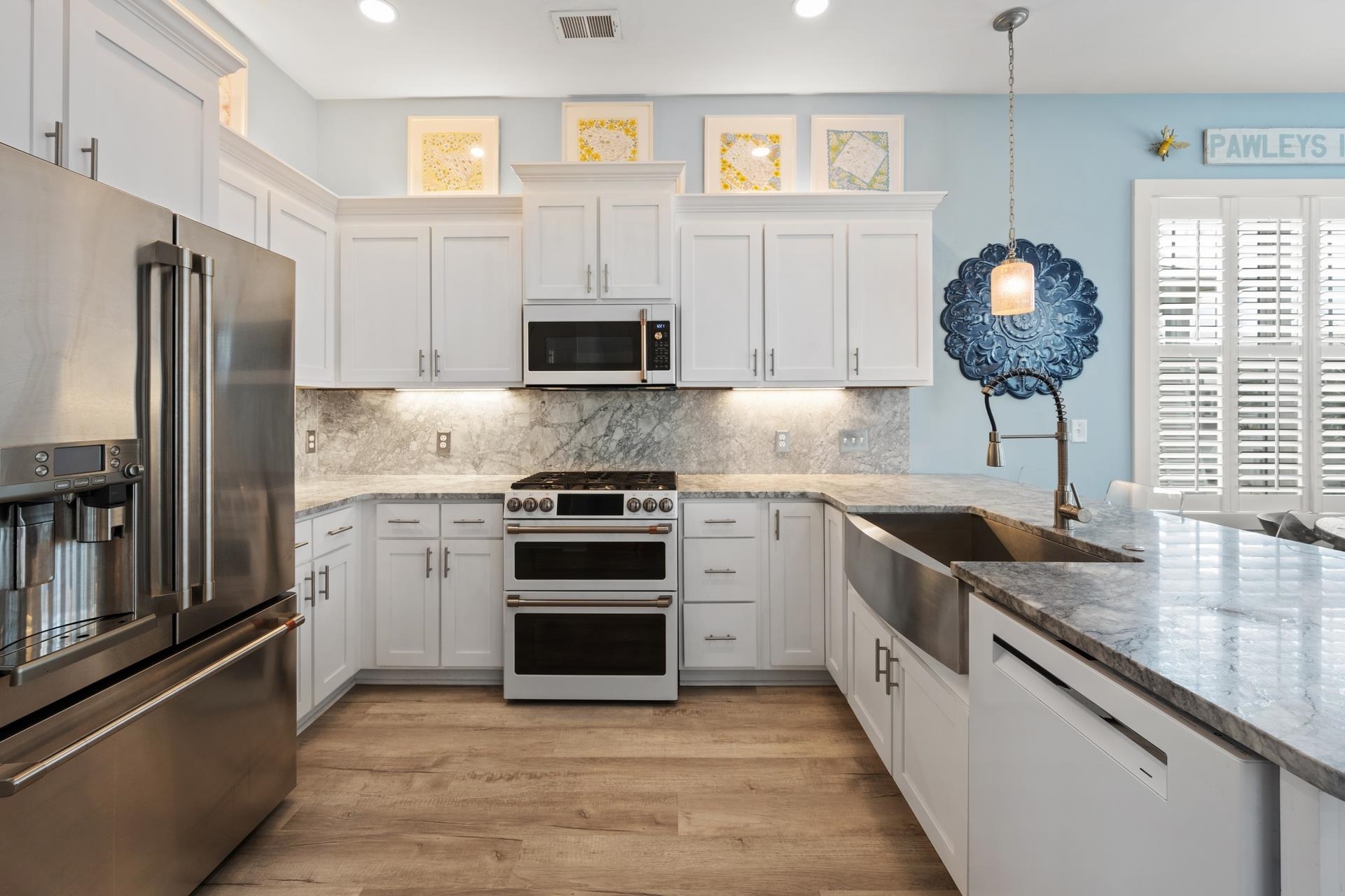 Welcome to 103 Clamdigger Loop, a truly rare opportunity in the charming Clam Bake Cove community of Pawleys Island. This is the first time a three-story floor plan has ever been offered for sale in the neighborhood, making this home as unique as it is thoughtfully designed. This 3-bedroom, 3-bathroom home blends modern coastal style with functional living across three spacious levels. The main living level features an open-concept layout designed for both everyday living and entertaining. The living room is anchored by a stylish shiplap feature wall with a built-in electric fireplace, creating a warm and inviting focal point. The kitchen is beautifully upgraded with marble countertops and backsplash, a pantry for added storage, and a high-end appliance package including a gas range with double convection ovens (with air fry capability), Bosch dishwasher, built-in microwave, and a GE Café refrigerator with built-in Keurig. A spacious countertop with bar seating provides the perfect spot for casual dining or gathering with guests. The adjacent dining area is highlighted by a gorgeous coastal-inspired light fixture, adding warmth and character to the space while tying together the home’s relaxed coastal aesthetic. Plantation shutters and durable vinyl plank flooring run throughout, adding both charm and ease of maintenance. Also on the main level is a flexible bedroom currently used as a home office and media room, complete with a walk-in closet and access to a full hall bathroom featuring a tiled shower. Step outside to enjoy the front porch - perfect for relaxing and soaking in the Lowcountry breeze. Upstairs, the top floor retreat includes the spacious primary suite with a custom-tiled shower, double sink vanity, and a large walk-in closet with custom organization. The bedroom also features its own electric fireplace for added comfort and ambiance. A guest bedroom with a private ensuite bathroom and walk-in closet completes this level. The ground level offers exceptional versatility with a two-car garage, laundry room, and ample storage with two large closets. From here, access the screened-in porch and covered patio, creating an ideal indoor-outdoor living experience. Just off the porch, you’ll find a heated and cooled bonus space currently used as a bar area, complete with a sink, wine fridge, and full refrigerator, perfect for entertaining or easily adaptable to suit your needs. The exterior showcases a striking contemporary coastal design with Hardie plank siding, a metal roof, cable rail detailing, frosted glass garage doors, and a paver driveway and walkway. An outdoor shower adds the perfect finishing touch for beachside living. Clam Bake Cove is an intimate community of just 33 homes, ideally located with sidewalks leading to everyday conveniences like grocery stores, coffee shops, and local favorites. And best of all - you’re just a quick golf cart ride to the beach.
