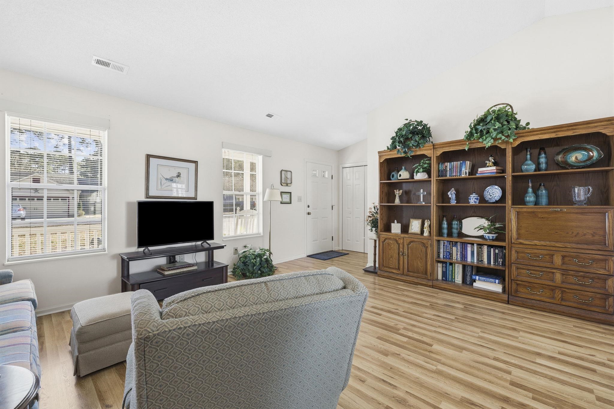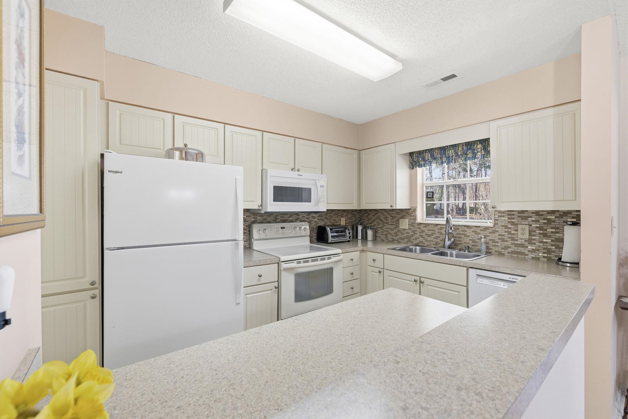 A welcoming, low maintenance home perfect for relaxing and socializing in the highly sought after 55+ neighborhood of Woodlake Village in Murrells Inlet. As you enter, you'll notice the beautiful, easy maintenance flooring throughout that offers a seamless flow. An all-seasons sunroom off the dining room is a perfect place to relax with your morning coffee or evening cocktail while enjoying seasonal views all year-round! The master bedroom includes a well-appointed bathroom with an adjoining vanity for extra storage. The second bedroom is ideal for guests, a den or hobby room. The possibilities are endless! A large breakfast bar allows for added storage and prep space, and all kitchen appliances are being sold with the home. Amenities include a pickleball court, clubhouse, community pool, library, shuffleboard and endless social activities for all to enjoy! Ideally located just minutes to the beach, shopping, the Marsh Walk, Garden City Pier, dining and so much more!