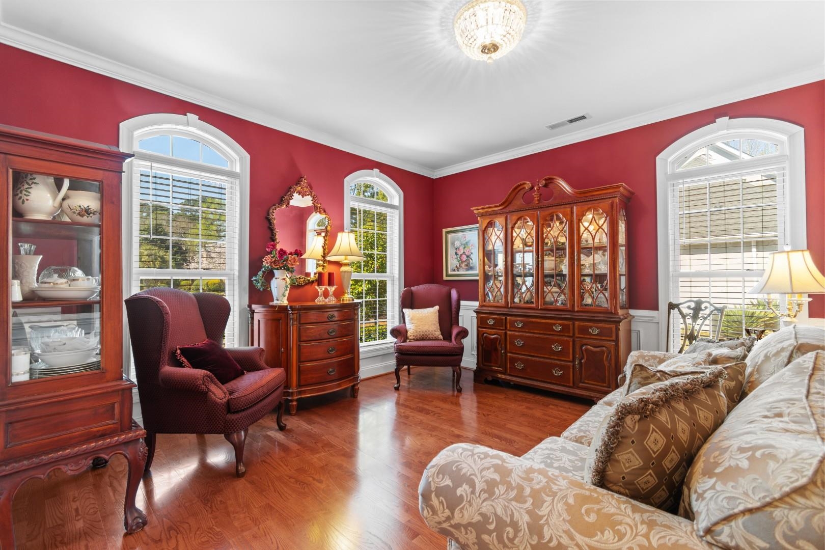 Tucked inside the gated community of Prestwick, this meticulously maintained 5-bedroom, 4.5-bath home offers the kind of space, setting, and lifestyle that's hard to find all in one place. Set on a large golf course lot with tranquil pond views, it's the kind of home where mornings feel peaceful and are best spent watching the sun rise over the fairway. Step inside and you're welcomed by soaring vaulted ceilings and a great room that feels both open and inviting. The fireplace creates a natural gathering space, and the layout flows effortlessly out to the patio---perfect for entertaining or simply enjoying the view. A formal dining room adds just the right touch for hosting holidays or intimate dinners. Upstairs, the primary suite feels like a true retreat. Featuring a tray ceiling, a private sitting area, and two spacious walk-in closets, it's designed for comfort and relaxation. The en-suite bath offers dual sinks, a garden tub, and a separate walk-in shower---your own space to unwind at the end of the day. Out back, the screened-in porch and extended patio make it easy to enjoy outdoor living year-round, all while overlooking the beautifully maintained course and water. Every detail of this home reflects meticulous care and pride of ownership. Living in Prestwick means more than just a beautiful home---it's a lifestyle. The community offers top-tier amenities, including an Olympic-size pool, a tennis stadium, pickleball courts, a clubhouse, and of course, the renowned Prestwick golf course designed by Pete Dye. This is more than a place to live---it's where everyday life feels elevated.