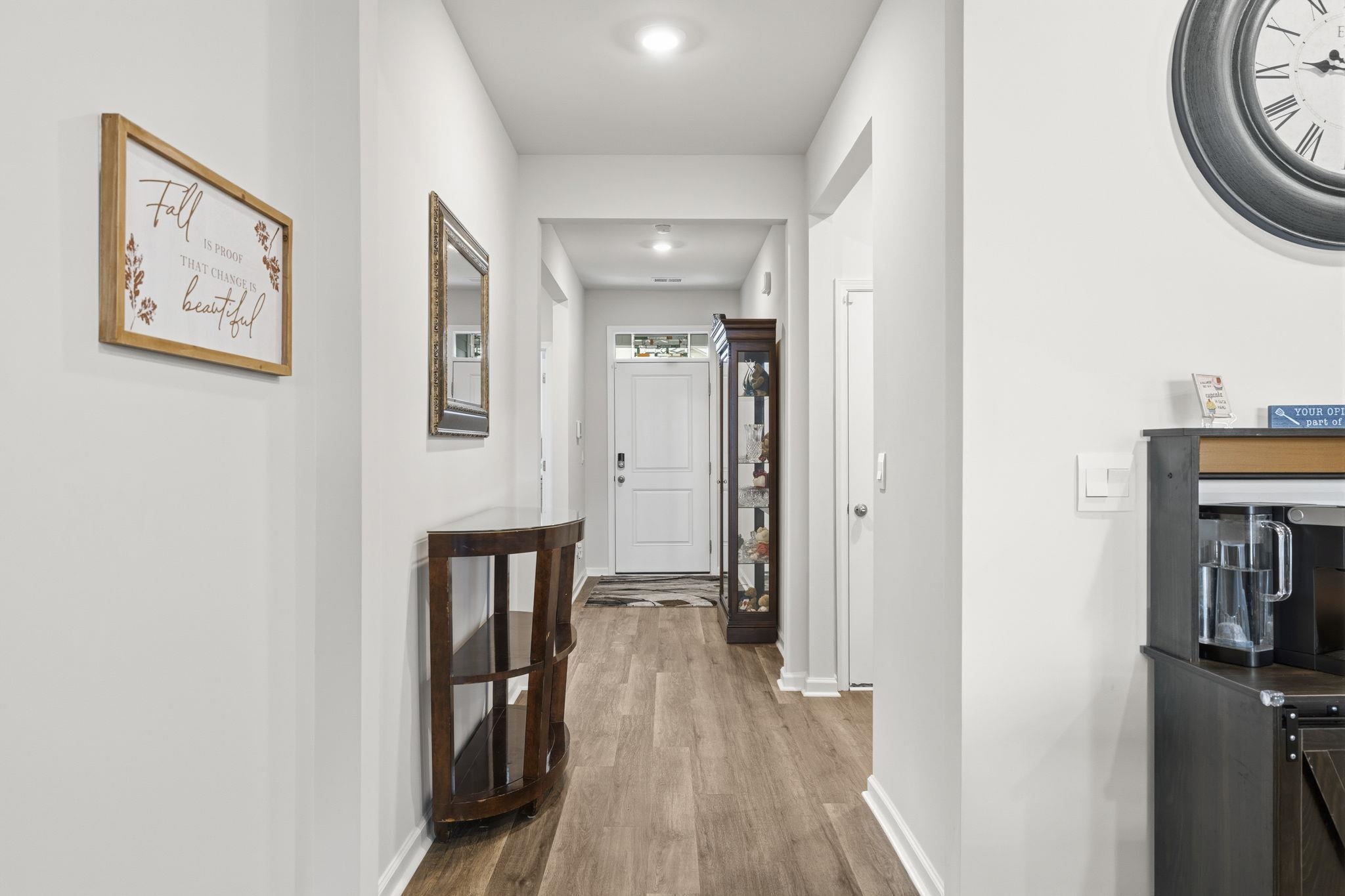 Welcome to 1096 Flintshire Drive, a beautifully maintained better-than-new single-level home in the desirable Village Oaks community of Carolina Forest. Built in 2024, this thoughtfully designed 3-bedroom, 2-bath home offers 1,618 square feet of modern living space with an open-concept layout ideal for both everyday living and entertaining. The spacious kitchen is the centerpiece of the home and features granite countertops, stainless steel appliances, a large center island with seating, a single-basin sink, and a freshly painted island, all overlooking the bright and inviting living and dining areas. The open layout creates a seamless flow throughout the main living space, making it perfect for entertaining or everyday comfort. The private primary suite provides a relaxing retreat and includes a generous walk-in closet and en-suite bath, enhanced with room-darkening shades for added comfort and privacy. Additional bedrooms feature ceiling fans, and thoughtful storage upgrades have been added throughout the home including custom shelving in the pantry, coat closet, and linen closets to maximize organization. This home has been significantly enhanced beyond builder standards with numerous upgrades, including a fully fenced backyard, screened-in porch with custom shades, and a custom-built 8-foot arched patio extension, creating an inviting outdoor space perfect for relaxing or entertaining. The exterior has also been improved with gutters, irrigation system, and professionally designed landscaping featuring river rock, edging, and upgraded plantings that enhance the home’s curb appeal. Inside the garage, you'll find epoxy-coated flooring and painted walls for a clean finished look, while additional comfort and efficiency upgrades include a water softener system, whole-home air filtration system, and installed security system. An additional advantage of this property is the easement located to the right side of the home, which provides extra spacing from the neighboring property and enhances the sense of openness and privacy along that side of the lot. Located in the sought-after Village Oaks community, residents enjoy access to a community pool and clubhouse, while being just minutes from Carolina Forest schools, shopping, dining, golf courses, and a short drive to the beaches of Myrtle Beach. Skip the wait and uncertainty of new construction and move right into this beautifully upgraded, move-in ready home that offers the benefits of new construction plus all the thoughtful improvements already completed.