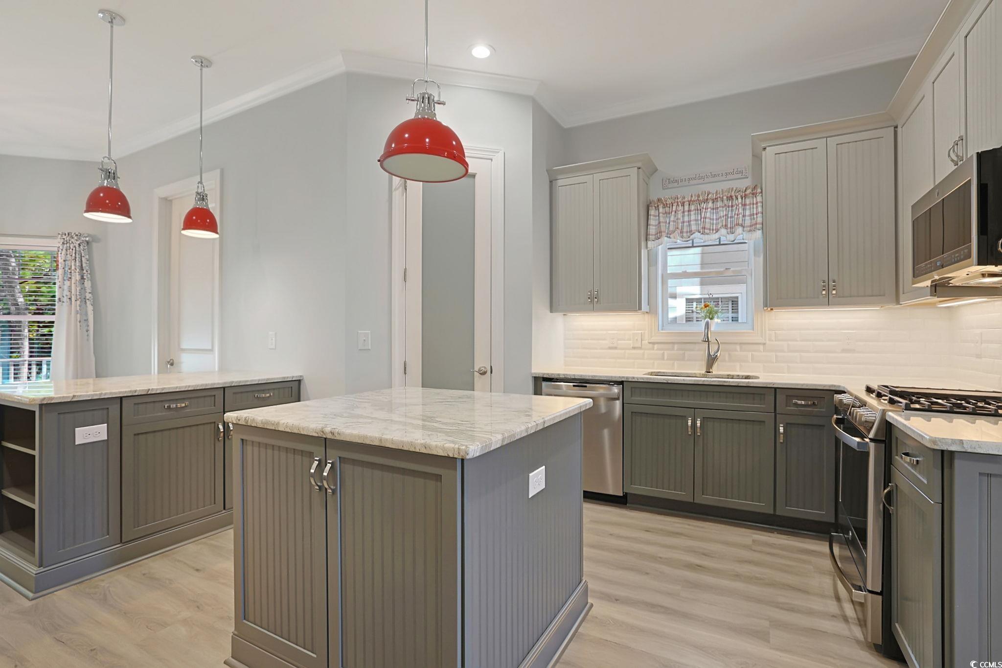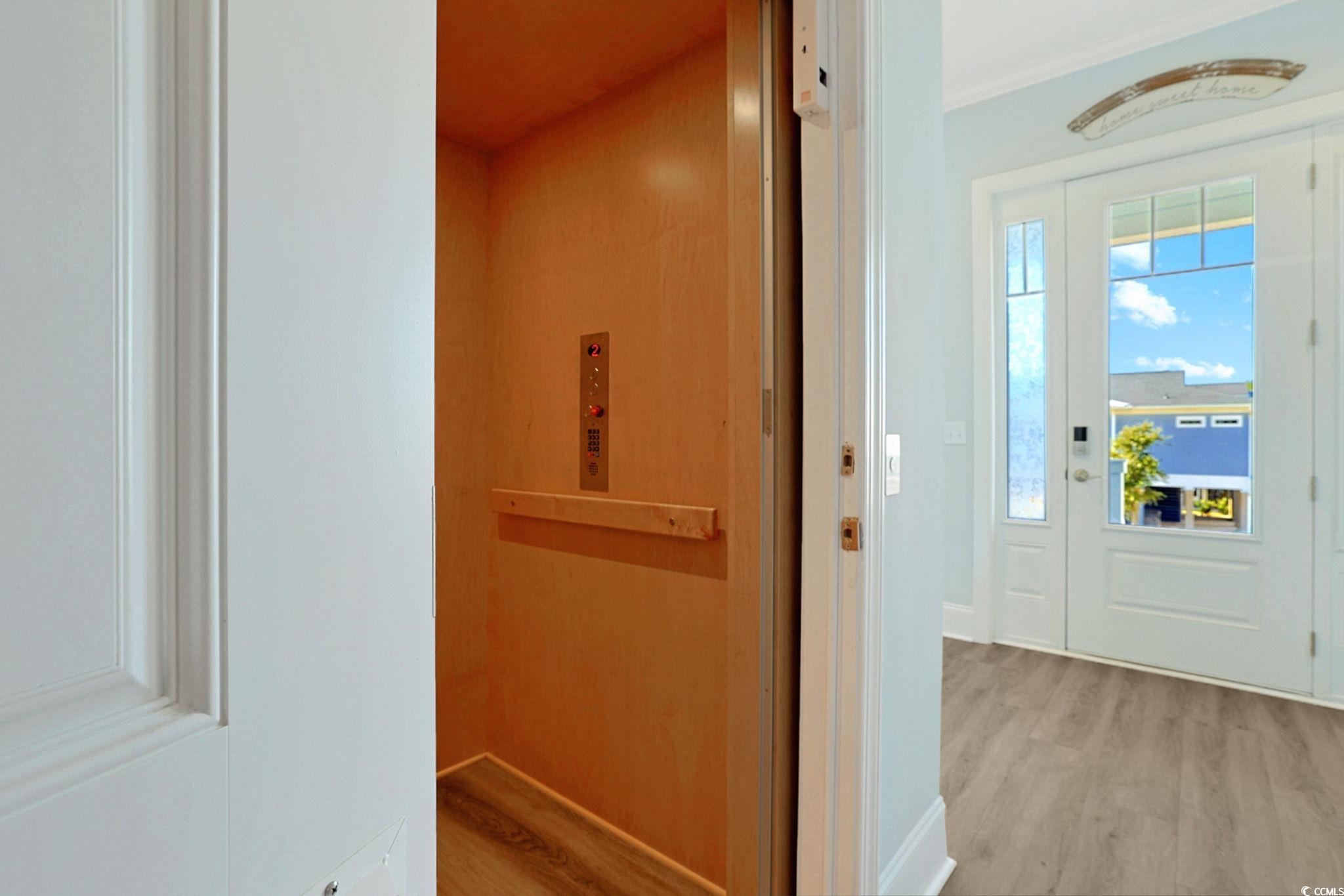 Take the elevator up to this incredible 3 bedrooms, 2.5 baths raised beach home located in the gated Cottages on the Marsh community. This home begins with a memorable screened-in front porch along with nicely appointed finishes such as wood look LVP, tile, & carpet flooring, smooth flat ceilings, crown moulding, a main floor guest powder room, a formal dining room with French door access, a spacious living room with gas fireplace that showcases a sliding glass door that opens up to the captivating screened-in back porch. The family friendly kitchen is equipped with a stainless steel appliance package with a gas range, recessed & pendant lighting, cabinets topped with crown moulding, granite counter tops, built-in wine rack, kitchen island with a delightful breakfast bar, a practical kitchen pantry, and a sunlit breakfast nook. The primary bedroom offers a stylish shiplap wall, ceiling fan, a sliding glass door that opens up to the relaxing porch, private access to the primary bath hosting a dual sink vanity with a makeup desk, a water closet, and a deluxe step-in shower. On the top floor you will find two additional bedrooms, a full guest bath, and access to a scenic top floor balcony. This piece of paradise is completed with a laundry room, extra closet spaces, along with enclosed under house parking. Please note that the HOA handles cutting the grass! This home affords you easy access to the beach and golfing along with all of the other activities and happenings in North Myrtle Beach & Myrtle Beach including fun eateries, award winning off-Broadway shows, public fishing piers, and intriguing shopping adventures along the Grand Strand. Conveniently located to your everyday needs, including grocery stores, banks, post offices, medical centers, doctors’ offices, and pharmacies. Check out our state of the art 3-D Virtual Tour.