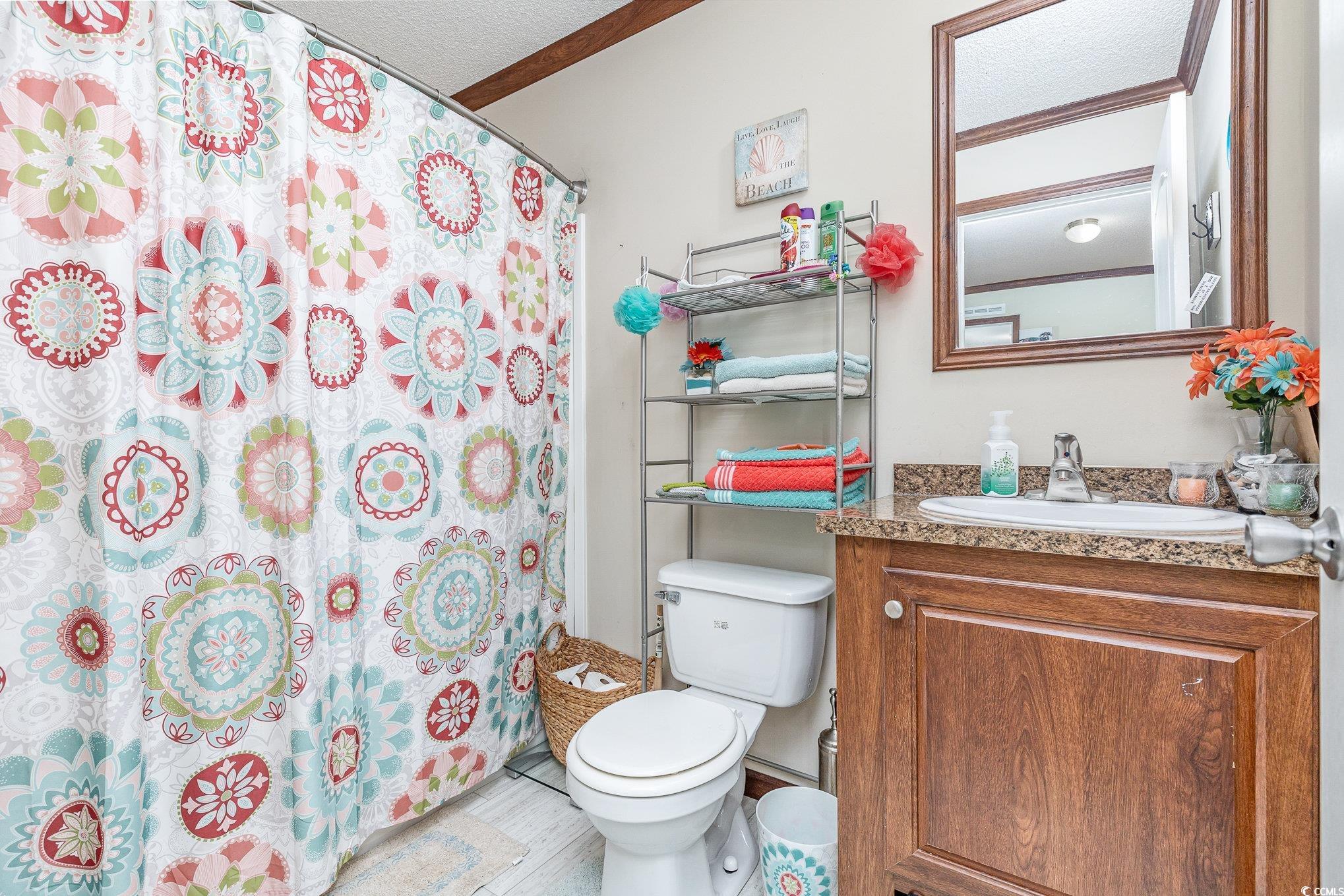 Nestled in the tranquil and gated community of Owens Mobile Park in Myrtle Beach, this charming 3-bedroom, 2-bathroom single-wide manufactured home offers an inviting coastal-inspired living experience. As you step inside, the living room greets you with warm, neutral tones, plush carpeting, and a ceiling fan, creating a cozy space to unwind. The open floor plan seamlessly connects the living area to a well-appointed kitchen and dining area featuring dark wood cabinetry, modern appliances, and ample counter space for meal prep. Each bedroom provides a comfortable retreat, with the master suite boasting an ensuite bathroom for added privacy. The additional bedrooms are perfect for family members or guests and share access to the second full bathroom, both adorned with tasteful fixtures and finishes. There is a designated laundry space for convenience. The outdoor space includes a covered porch, perfect for enjoying morning coffee,or unwinding at the end of the day. A large storage shed on the property provides additional space for tools and outdoor equipment. Home is being sold partially furnished! Located just minutes from the vibrant heart of Myrtle Beach, this home offers easy access to shopping, dining, entertainment, and, of course, the beach. Don’t miss out on the opportunity to own this lovely slice of Myrtle Beach paradise!