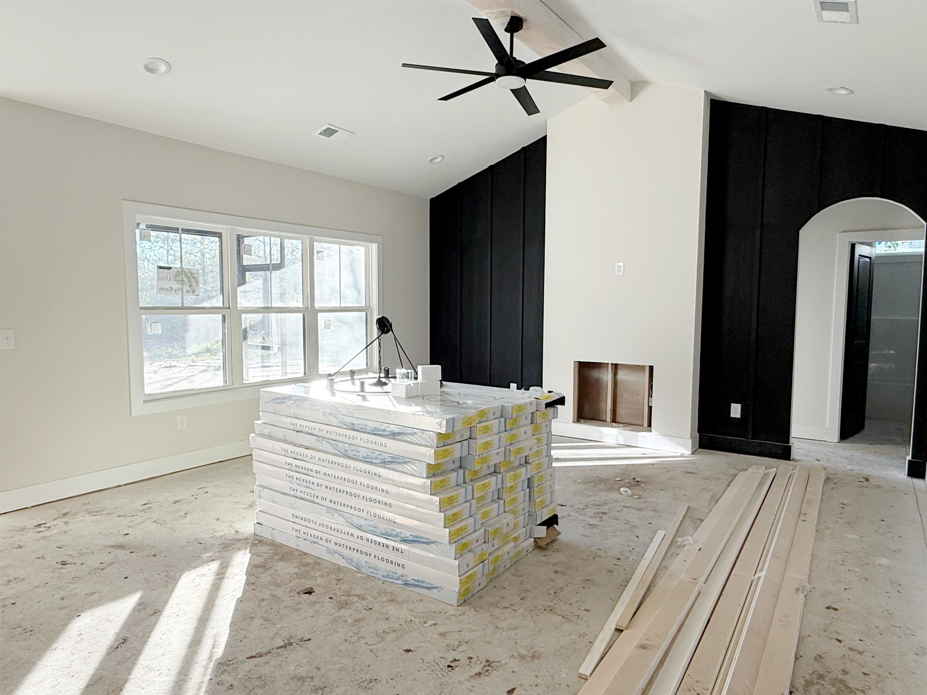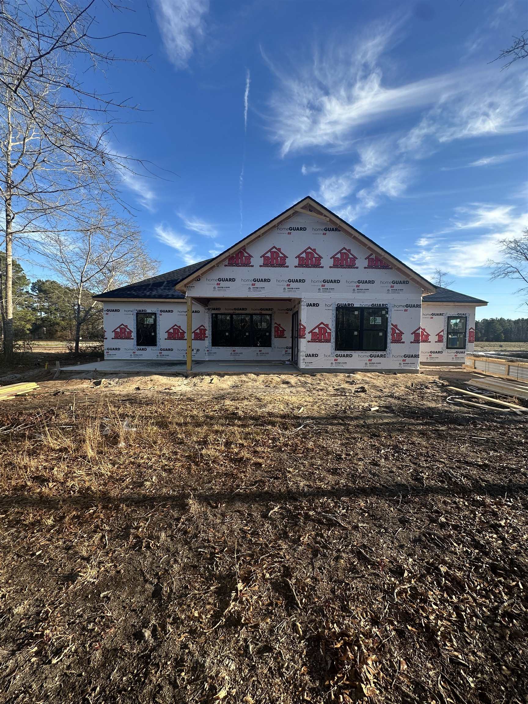 The Makayla model features 1,924 heated square feet (2,654 total) with a functional layout and modern finishes throughout. The foyer entry leads to a dedicated home office with a black sliding barn door, ideal for remote work or flex space. The main living area is open and bright with vaulted ceilings, a natural pine beam, and an electric fireplace with a floor-to-ceiling board and batten surround. The kitchen is finished with Blaze Black shaker cabinets, granite countertops, a farmhouse sink, and black stainless appliances, offering both style and everyday usability. The primary suite includes a tray ceiling with a pine beam and a private bath featuring a custom tile shower with charcoal accents, double vanities, and black fixtures. LVP flooring runs throughout, and the interior is finished in Origami White with black doors and a black-and-gold lighting package for a clean, cohesive look. Exterior features include Abyss Black LP Smart Siding, black metal garage door, and a screened-in back porch, providing a comfortable outdoor space to enjoy. A strong option for buyers seeking new construction with upgraded finishes, a practical layout, and room to spread out without HOA restrictions. Enjoy this 1 acre with NO HOA, offering space, privacy, and a convenient location with easy access to Downtown Conway, beach, hospitals, golf, shopping and more! **Home is currently under construction. Photos updated as home progresses**