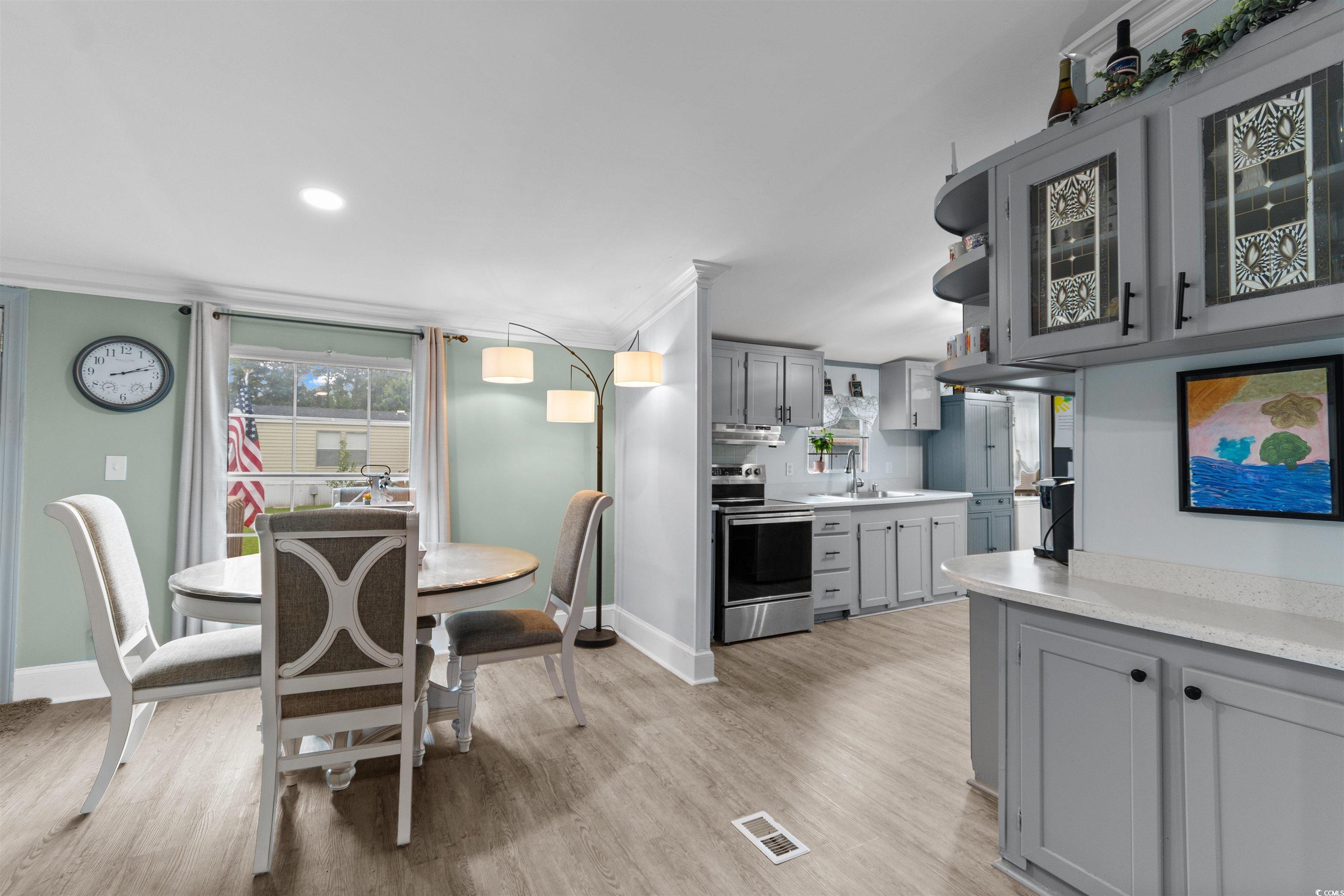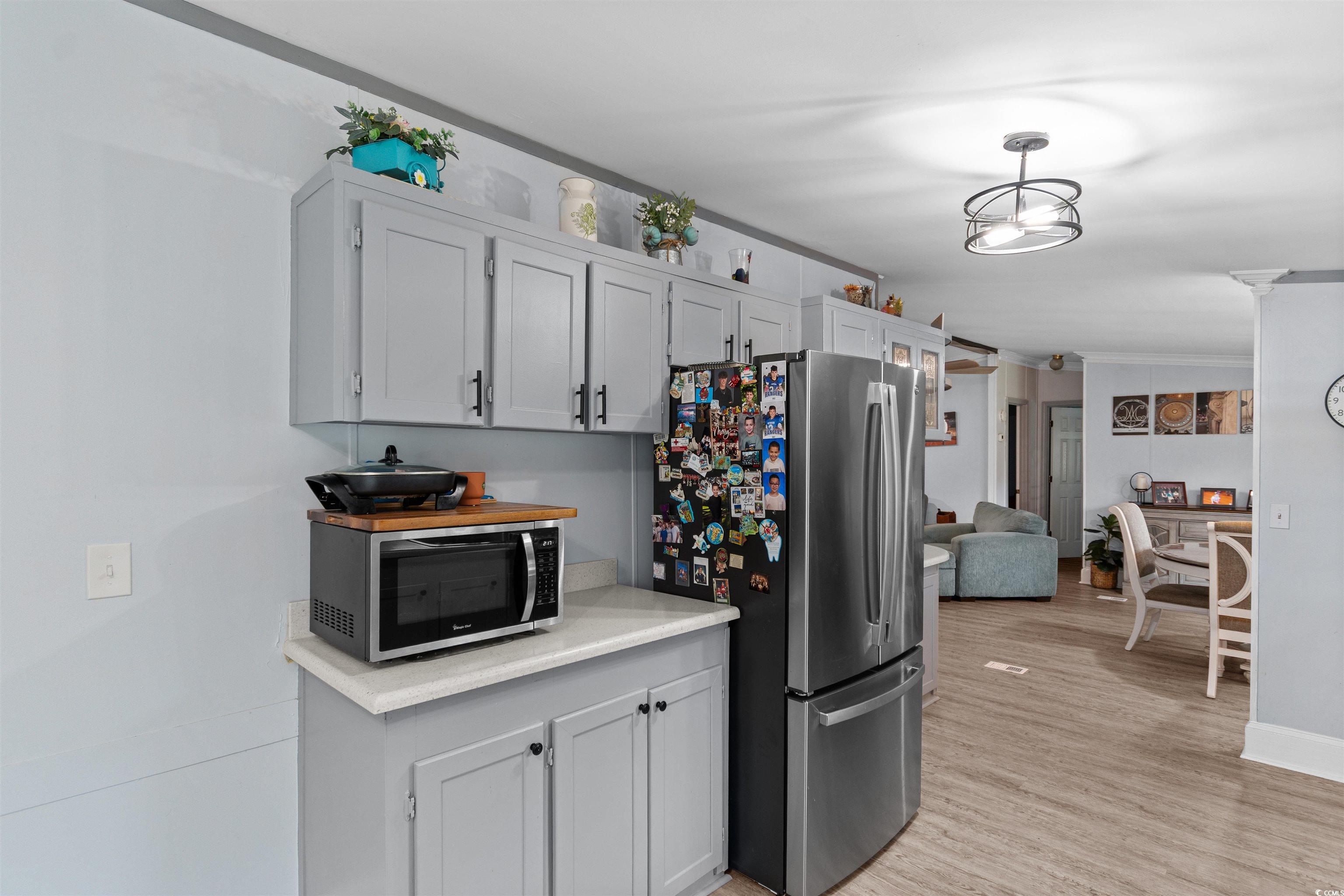 Welcome to this charming 3-bedroom, 2-bath manufactured home located on leased land in the beautiful Murrells Inlet! Step inside to discover a bright and open interior, with an abundance of natural light flooding the space, creating a welcoming atmosphere throughout. The spacious living area is perfect for relaxing or entertaining guests, offering plenty of room to unwind. The updated kitchen is a standout feature, equipped with modern stainless steel appliances, sleek countertops, and ample cabinet space for all your culinary needs. Whether you're preparing meals for family or hosting a get-together, this kitchen is both stylish and functional. The home offers three generous bedrooms, each providing plenty of space for rest and relaxation. The two bathrooms are well-designed, with modern finishes that add to the home's overall appeal. Enjoy outdoor living on the deck, an ideal spot to sit and relax, whether you're enjoying your morning coffee or watching the sunset in the evening. The deck provides the perfect place to unwind and take in the tranquil surroundings. Located in Ginny Hill, a wonderful 55+ community in the heart of Murrells Inlet, this home is just minutes away from all the best local attractions, including fantastic dining, shopping, and the beautiful coastline. With its perfect blend of comfort, convenience, and style, this home is a must-see. Don't miss out—schedule your showing today and see for yourself why this could be the perfect place to call home! New HVAC 10/31/2026