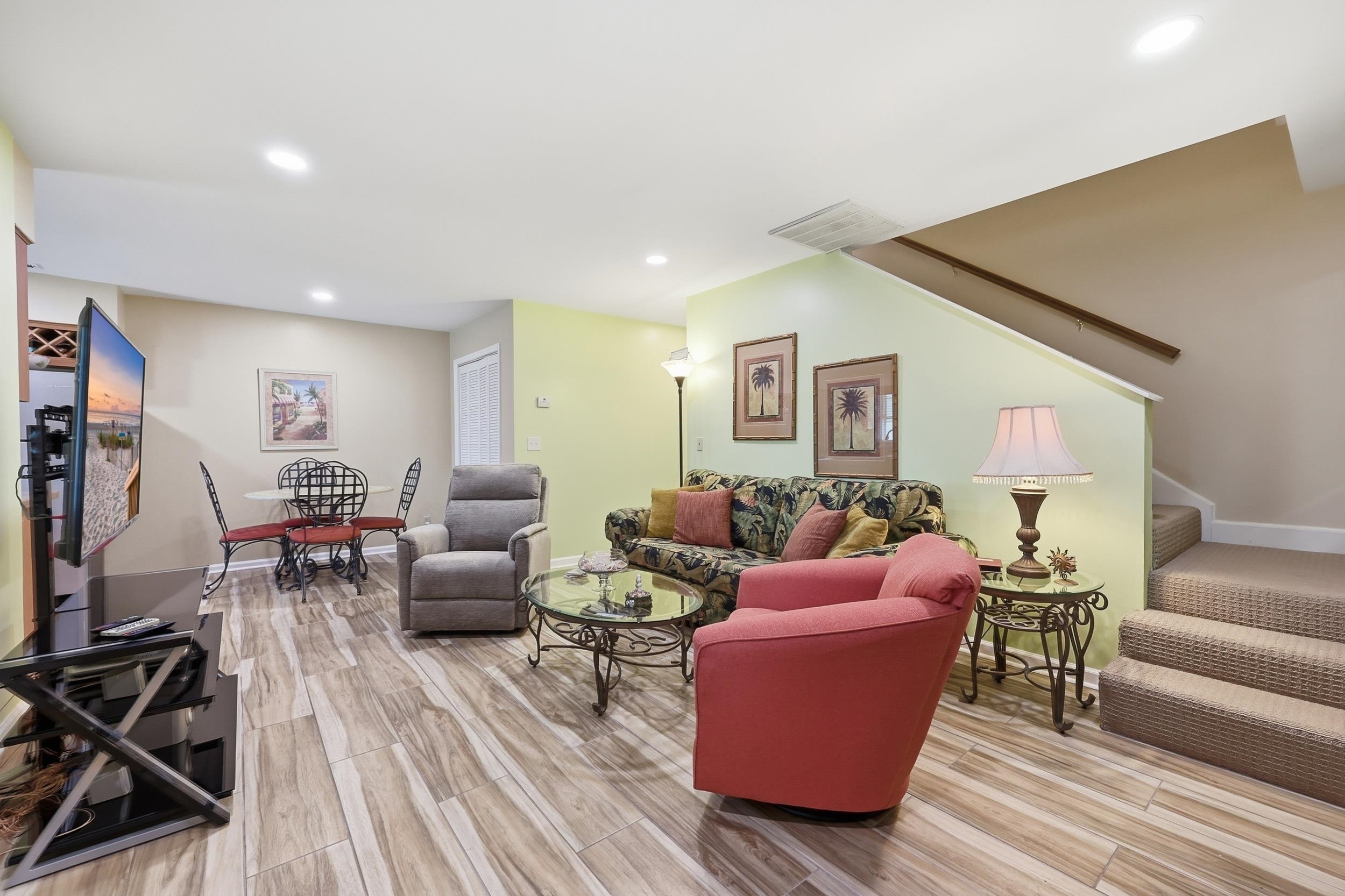 Rare opportunity to own a beautifully maintained end-unit townhouse in the heart of Ocean Drive—just ½ block from Main Street and all the restaurants, entertainment, and beach lifestyle that make North Myrtle Beach so special. And best of all… NO HOA. This 3BR/2BA home offers a flexible and comfortable layout with the primary bedroom on the main level, along with a private den featuring French doors that open to the rear patio—perfect for relaxing or entertaining. The main living area features luxury plank tile flooring, smooth ceilings, recessed lighting, and a cozy fireplace, all flowing together in an open living/dining/kitchen combination. The kitchen includes a deep double sink, and a mix of stainless steel and black appliances. All bedrooms feature walk-in closets, providing plenty of storage throughout. Enjoy the glass-enclosed front porch, rear patio, and a detached storage shed large enough to accommodate a golf cart—ideal for getting around Ocean Drive like a local. Upstairs, you’ll find two additional bedrooms and a full bathroom, offering great space for guests or family. This home is being sold fully furnished, making it an excellent option for a second home, beach getaway, or investment property. Major updates include a new roof (2023), new air handler (2025), water heater (2019), exterior paint (2021), and new gutters. Fresh interior paint and well-maintained T1-11 wood siding add to the home’s charm and durability. Properties like this—east of 17, this close to Main Street, and with NO HOA—rarely come available. Don’t miss your chance to own a piece of Ocean Drive.