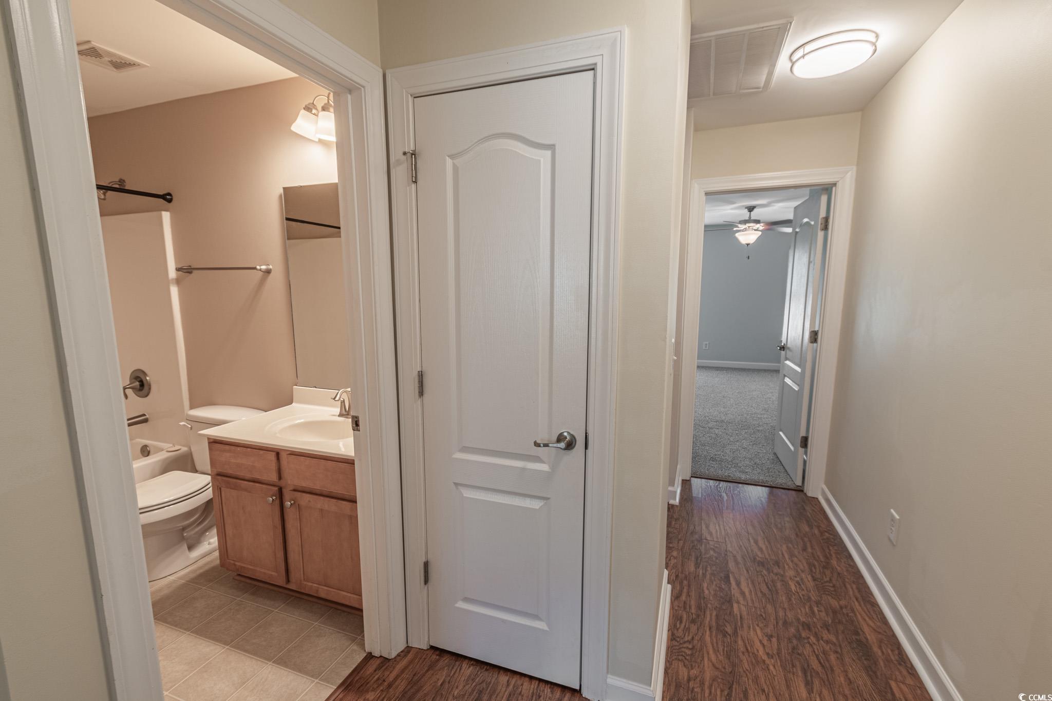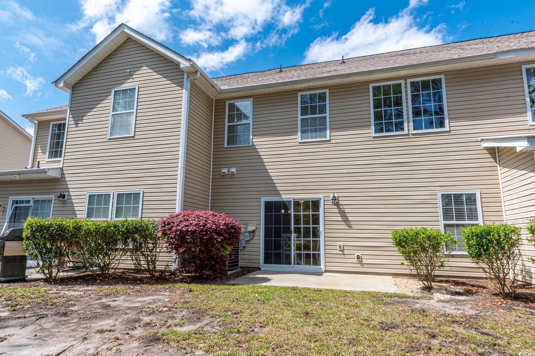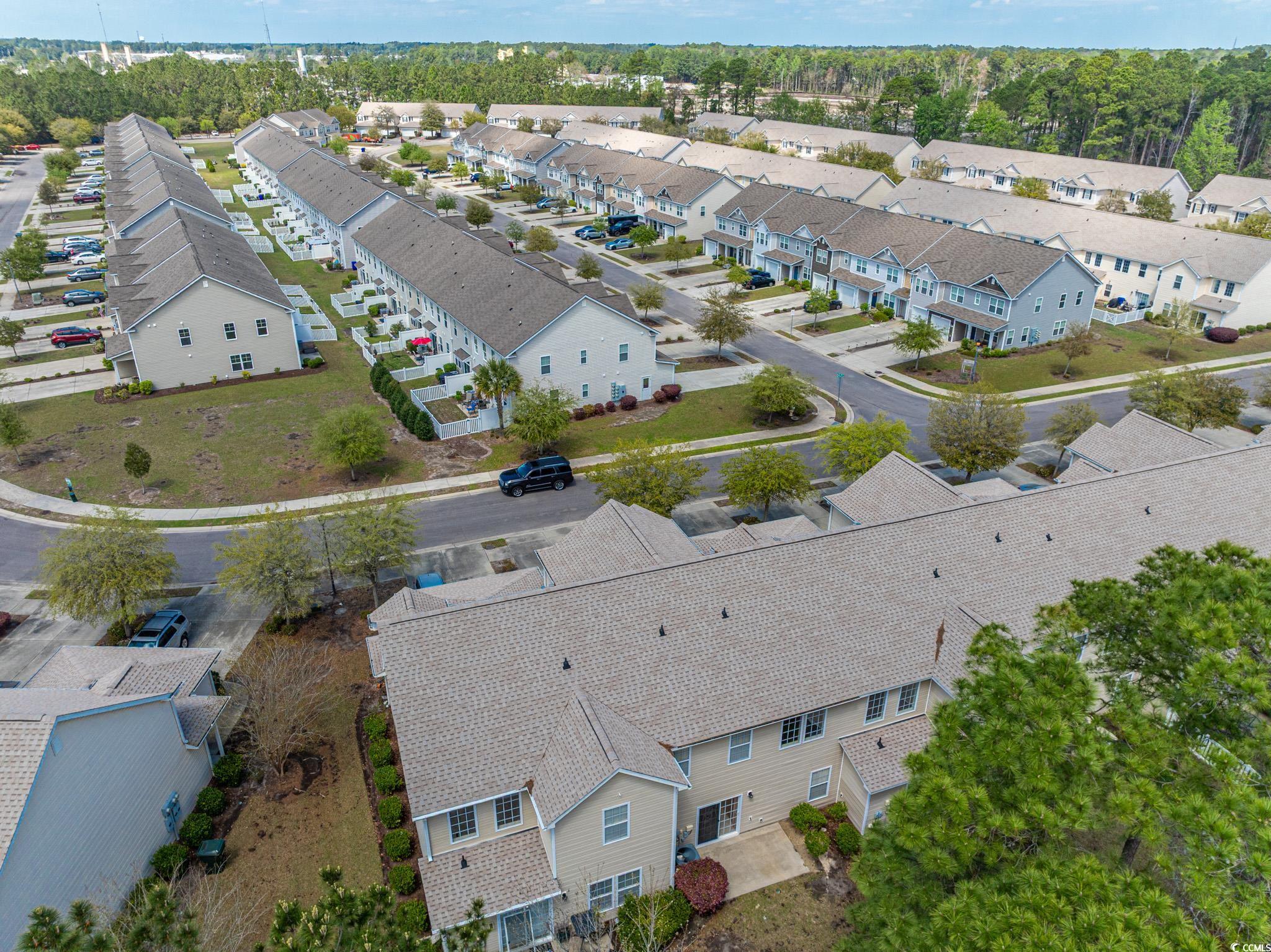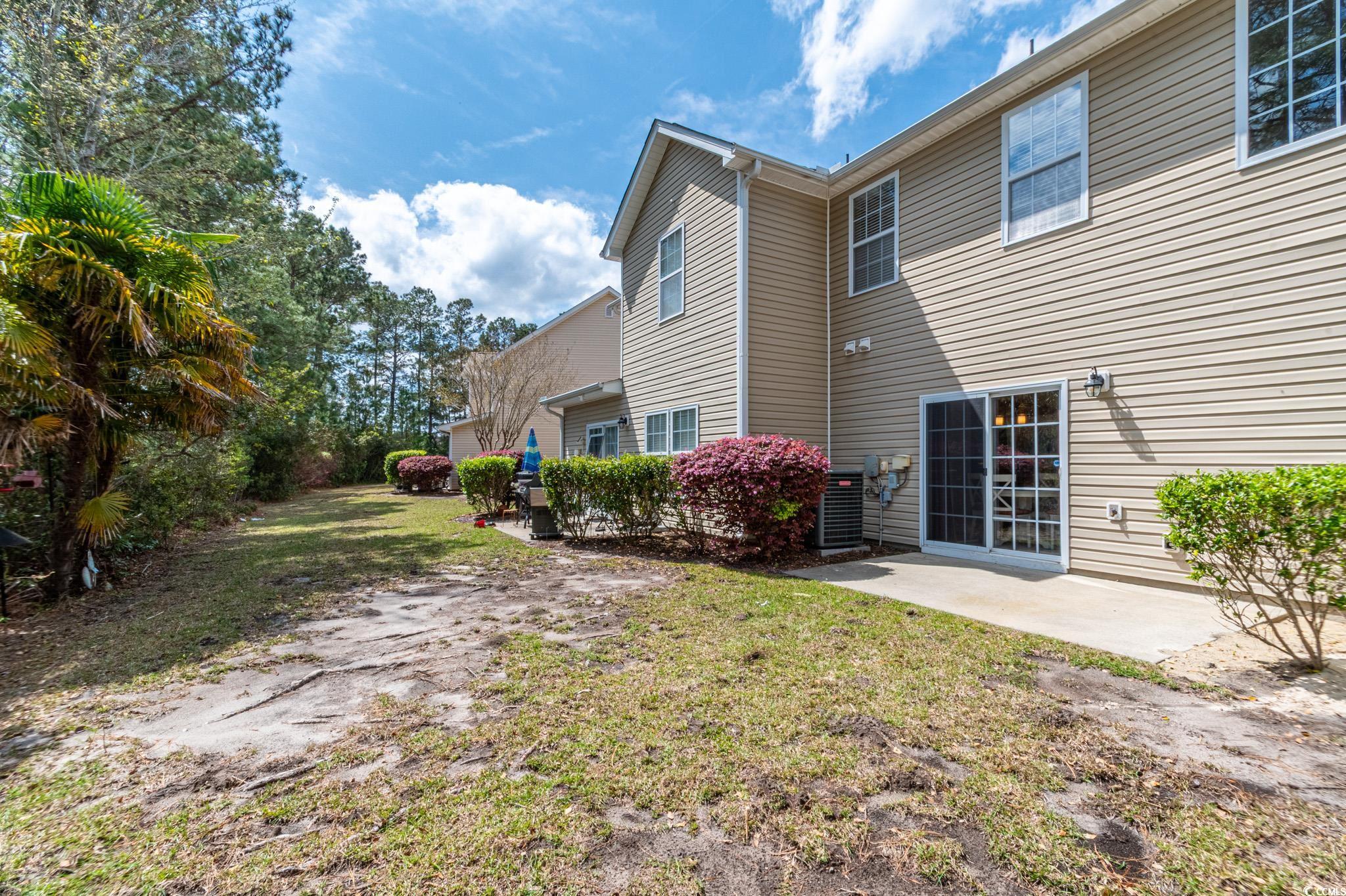 Spacious three-bedroom, two-and-a-half-bath townhouse with a two-car garage located in the desirable Fairways at Wild Wing community. The living room features vaulted ceilings and a ceiling fan, with LVP and laminate flooring throughout the main areas and cozy carpet in the bedrooms. The kitchen offers black appliances, a breakfast nook, work island, and pantry. A convenient laundry room and half bath are also located on the first floor. Upstairs, you’ll find all three bedrooms, including the primary suite with a ceiling fan, walk-in closet, and private bath featuring dual sinks, a tub/shower combination, and a linen closet. The two additional bedrooms each include ceiling fans and share a full hallway bath. Relax on the backyard patio while enjoying peaceful views of the tree line. Fairways at Wild Wing offers a community pool and is conveniently located near shopping, dining, entertainment, and just a short drive to the beach or downtown Conway. Square footage is approximate; buyers should verify.